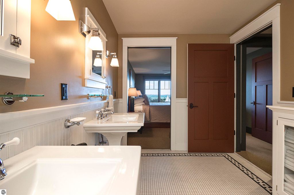Tamarack Lodge! Blue Spruce room 104 is a 1,521 sq ft, 2br, 2ba ground floor unit. One of the bedrooms is a "lockout" with its own private entrance. Absolutely outstanding water views and the best sugar sand beach imaginable from this waterfront condo in Traverse City on Lake Michigan's East Grand Traverse Bay. This is a fixed week unit (week 39, September 29 - October 6). $73 per month association dues cover pretty much everything except for room cleaning and property taxes. See Associated Documents for more detail regarding what's included in the $73. All furnishings and linens included, even the fully stocked kitchen (appliances, pots, pans, silverware, etc).