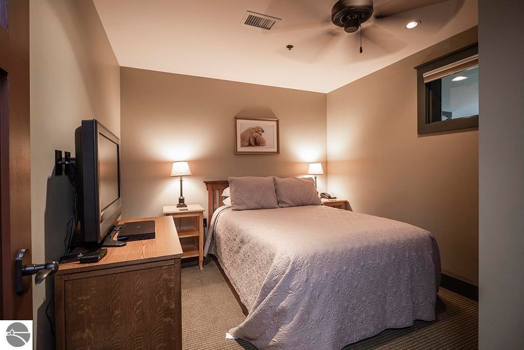 Tamarack Lodge sells their condos fractionally, similar to timeshares. This is Cedar suite 502 and is a 1,060 sq ft, 2br 2ba 5th floor penthouse unit that directly faces the water and has magnificent views of Lake Michigan's East Grand Traverse Bay. It has a private patio facing the water and the beach is as sandy as you can hope for, perfect for sunbathing and swimming. Comes turn key, fully furnished (beds, couches, tables, chairs, TVs, linens, etc), gas fireplace, well appointed kitchen complete with appliances, silverware, pots & pans, etc, and it has its own washer/dryer. The purchase price is a one time fee which guarantees week 28 every year (exact dates change slightly each year) for as long as you own the unit, pay the monthly HOA fee ($51), annual property taxes ($574) and cleaning fee ($210 at the end of the week). The HOA fee covers gas, electric, cable TV, WIFI, water, sewer, trash removal, snow removal, building insurance, content & liability insurance, outside and inside maintenance. Basically, after you pay the one time purchase price (plus approximately $750 in closing costs) your out of pocket expenses going forward are then only the monthly HOA, annual property taxes and the cleaning fee. This could be your "Up North" vacation destination for the years to come! Please see the associated documents for details.