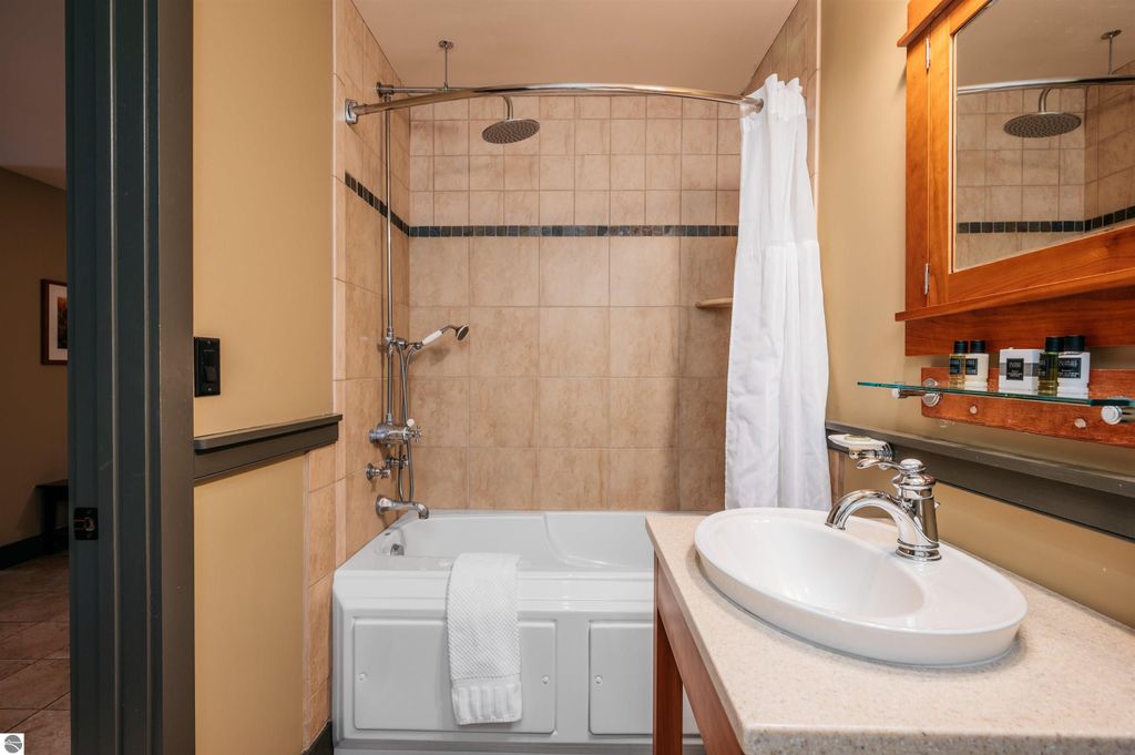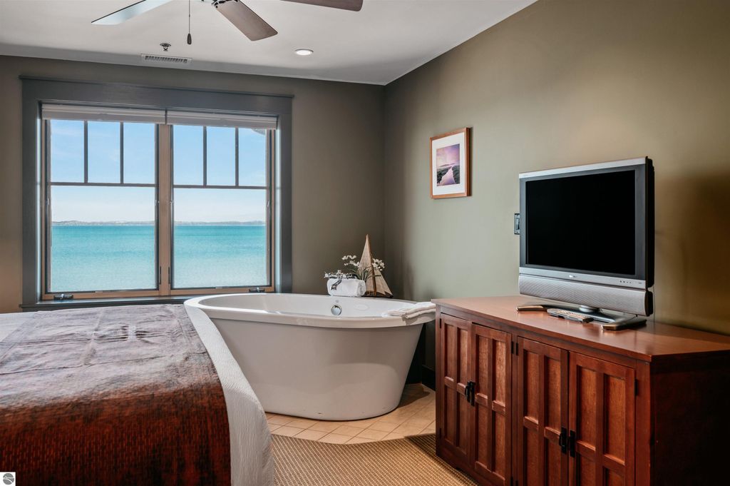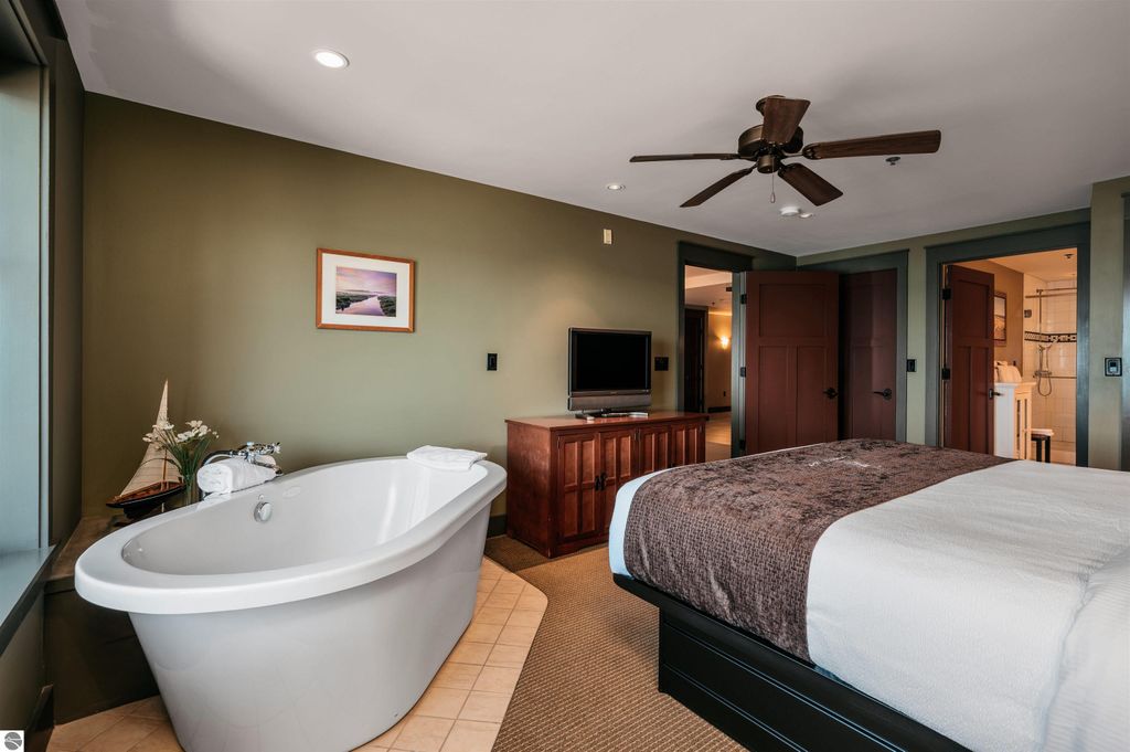 Tamarack Lodge! Fractional ownership. White Birch room 203 is a 1,420 sq ft, 2br 2ba second floor unit. Absolutely outstanding water views and the best sugar sand beach imaginable from this waterfront condo in Traverse City on Lake Michigan's East Grand Traverse Bay. This is a fixed week unit (week 42). $67 per month association dues cover pretty much everything except for room cleaning and property taxes. All furnishings and linens included, even the fully stocked kitchen (appliances, pots, pans, silverware, etc). The purchase price is a one time fee guaranteeing you week 42 year after year as long as you pay the monthly HOA, annual property taxes and cleaning fee. Get your piece of the North today!