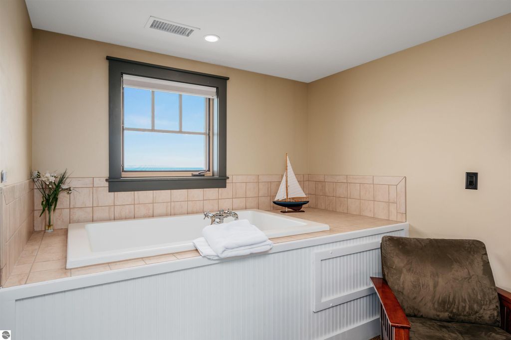 "Tamarack Lodge sells their condos fractionally. This is Junior Penthouse Suite 502 (Cedar) and is a 1,060 sq ft, 2br 2ba 5th floor penthouse unit that directly faces the water and has magnificent views of Lake Michigan's East Grand Traverse Bay. It has a private patio facing the water and the beach is as sandy as you can hope for, perfect for sunbathing and swimming. Comes turn key, fully furnished (beds, couches, tables, chairs, TVs, linens, etc), gas fireplace, well appointed kitchen complete with appliances, silverware, pots & pans, etc, and it has its own washer/dryer. The purchase price is a one time fee which guarantees week 42 every year (exact dates change slightly each year) for as long as you own the unit, pay the monthly HOA fee ($51), annual property taxes ($340) and cleaning fee ($210 at the end of the week). The HOA fee covers gas, electric, cable TV, WIFI, water, sewer, trash removal, snow removal, building insurance, content & liability insurance, outside and inside maintenance. Basically, after you pay the one time purchase price (plus approximately $700 in closing costs) your out of pocket expenses going forward are then only the monthly HOA, annual property taxes and the cleaning fee. This could be your "Up North" vacation destination for the years to come!"