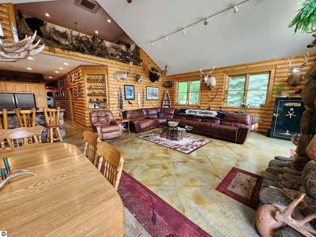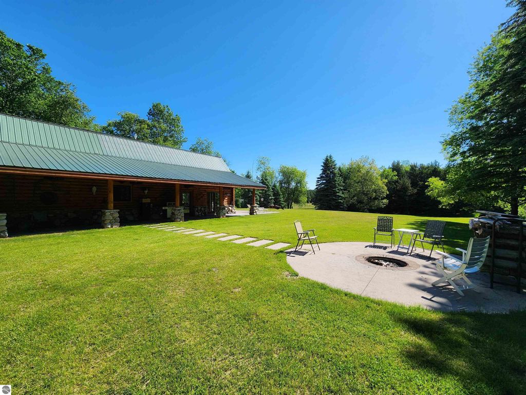 PRIVATE, BEAUTIFUL LOG HOME ON 15 ACRES, with several outbuildings! Two-story, log with custom natural stone accents and stamped concrete floors with in-floor heat! Modern kitchen with high quality stainless appliances, quartz counter top and hickory cabinets. Huge master main floor bedroom with large ceramic shower, walk-in closets, and laundry. Second story boasts its own bedroom, bathroom, kitchen and living room, with room for additional bedrooms. Home has full length covered porch, with custom lighting there is also a covered gazebo for a hot tub or cookouts! Includes a detached outbuilding with two horse stalls, water, electric, additional 30x72 pole barn, insulated, heated, covered lean to on both sides, in-floor radiant heat via wood burning boiler system with propane backup system in place. An additional 27x30 pole barn for additional storage!!! There is a beautiful deep pond on the property - Stocked with many varieties of fish, aerator, and ready for a lovely waterfall. Enjoy your view from the elevated deer blind in the apple orchard or watch them from your living room. A must see in the heart of Beautiful Northern Michigan just a few miles from Torch Lake and the other amazing Chain of Lakes.