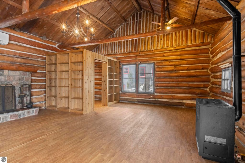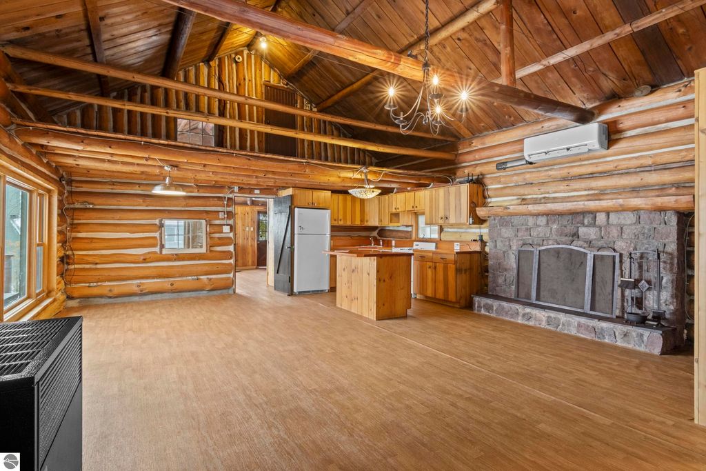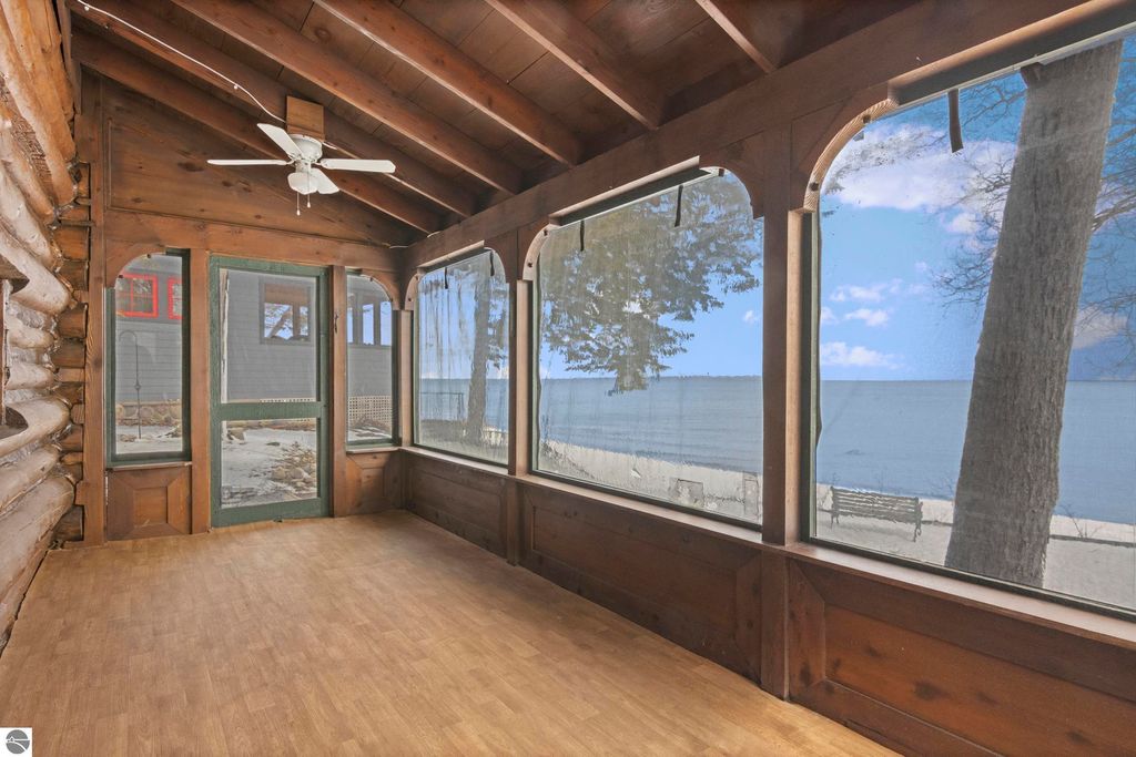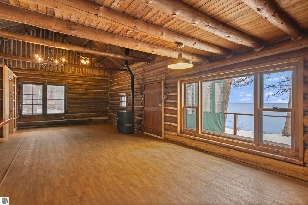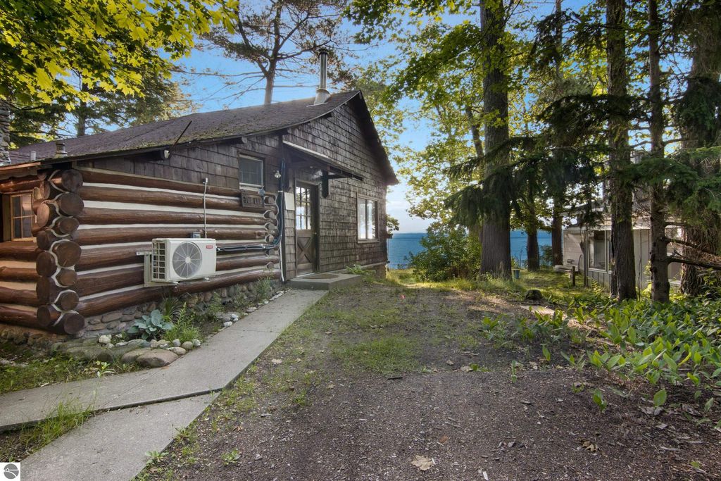 Welcome to The Log - a rare and historic waterfront retreat nestled just north of Northport on the beautiful Leelanau Peninsula. Once part of the renowned Camp Caho, a girls' summer camp dating back to the early 1900s, this one-of-a-kind property offers a unique blend of heritage, natural beauty, and potential. Set on land originally owned by the Haserot family, the home sits along a pristine stretch of shoreline with expansive water views and direct access to Northern Michigan's stunning coast. The main structure is full of character and charm, while a spacious detached garage with an apartment addition offers flexible options for guest accommodations or a creative studio. This property is being sold as is and does require work, presenting an incredible opportunity for restoration and customization. With a rich history and unmatched location, The Log invites you to bring your vision and breathe new life into a truly special piece of Leelanau Peninsula history.