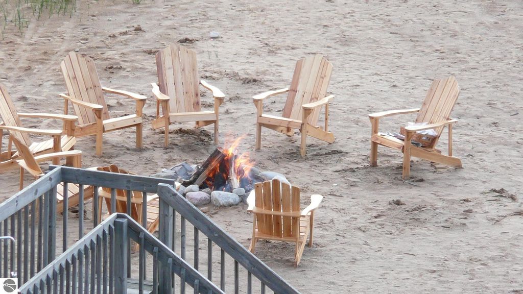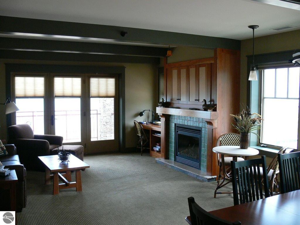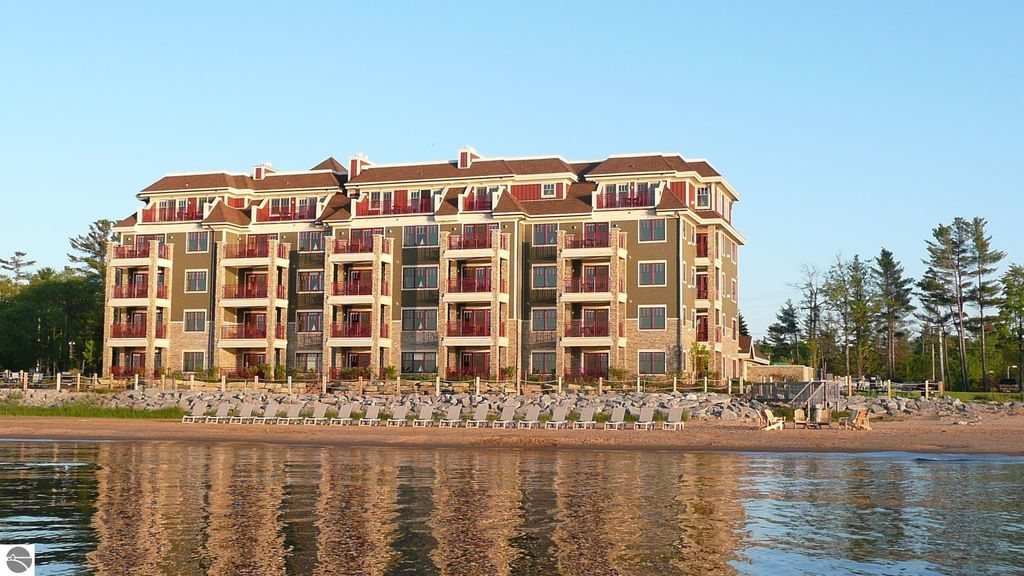 Tamarack Lodge! Pine Cone room 102, an end unit on the NW corner of the ground floor of a 5 story building that has an elevator. Absolutely outstanding water views and the best sugar sand beach imaginable from this 1/8th fractional ownership waterfront condo in Traverse City on Lake Michigan's East Grand Traverse Bay. $177 per month association dues cover pretty much everything except for room cleaning and property taxes. Financing available (this is not a timeshare) through TBACU. All furnishings and linens included, even the fully stocked kitchen (appliances, pots, pans, silverware, etc).