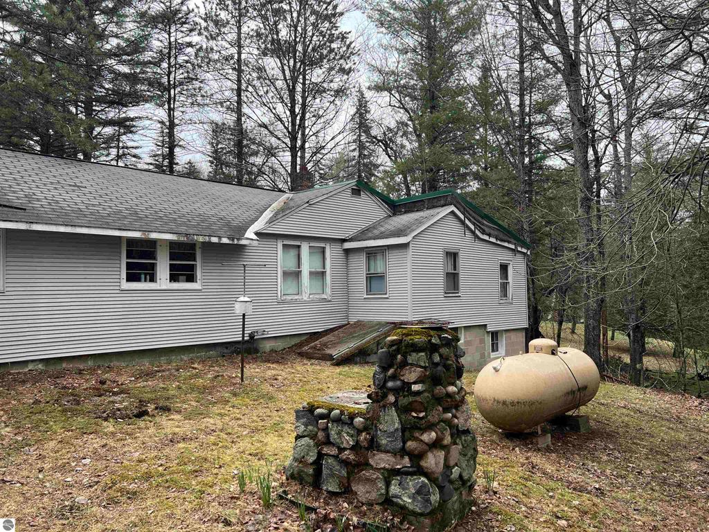 A classic cottage on a classic setting on the pristine waters of the Manistee River in the blue ribbon section of the river. No slope to the waters edge, just step in. Easy wading with sweepers hold the largest trout in the upper reaches. It is exceptional scenery, fishing and upland bird hunting. Thousands of Acres of acres of State land and all sorts of trails, wood roads, and two tracks. Hundreds of miles of trails. Outdoors enthusiast and nature lovers alike will flourish here. Full block basement, 1200 sqft, large bedrooms, fireplace, attached garage overlooking the Manistee River. You will be amongst some giants here. Giant trees! Spacious lot with plenty of room for an outbuilding if you have a few too many off road vehicles. This is a great place up north in the wilds and about 15 minutes from I-75. You wont want to miss out on this wonderful property.