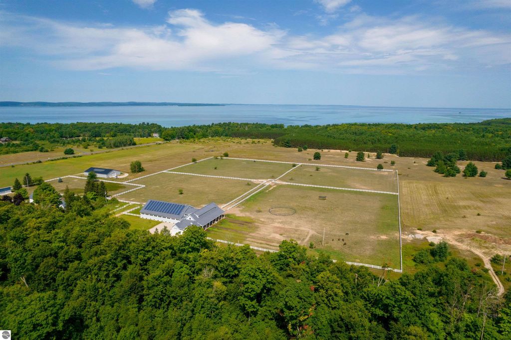 Here is your chance to own a fully working farm on the coveted Old Mission Peninsula in Traverse City, Michigan! Sprawling over 80 acres, this property has 100' of private water frontage on West Grand Traverse Bay, an operating equestrian facility, a turn of the century farm house, and multiple outbuildings. Complete with 6 purebred Great Pyrenees guard dogs. The land has 2000+ Christmas trees, 300+ lavender Vera plants, and 15 acres already in rotational crop. The equestrian barn, built in 2016, features 9 stalls, garage doors for work vehicles, saddle room, employee break room and laundry, grooming areas, and an expansive 60x100 heated dirt arena for working the horses. Walking upstairs, you will find a large office space with picture windows overlooking the stalls and a viewing balcony for the training arena. There are multiple outbuildings on the property including a newly built (2020) pole barn currently used for hay and tractor storage. Equipment, tack, and feed included with property - perfect for an experienced/aspiring farmer or equestrian enthusiast. Surrounded by beautiful Traverse City countryside with only a short walk to your own private sandy beach on the bay, this is an opportunity you do not want to miss!