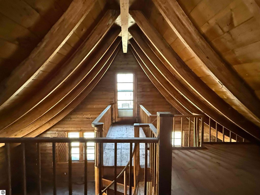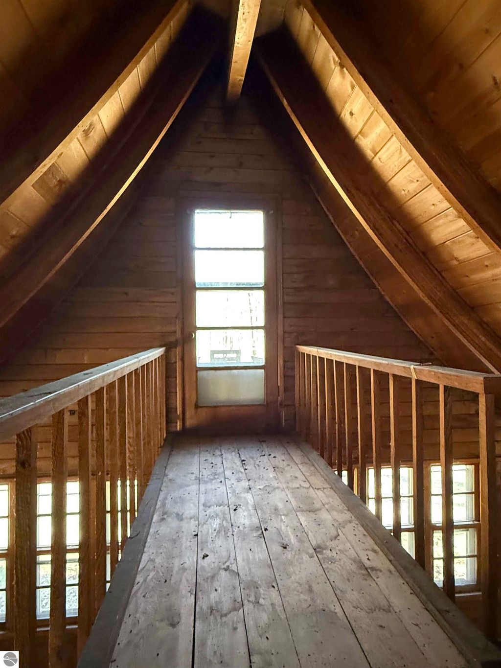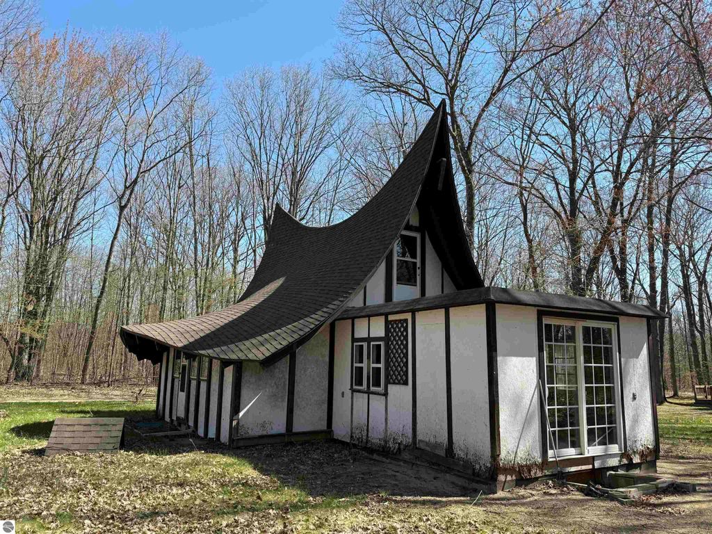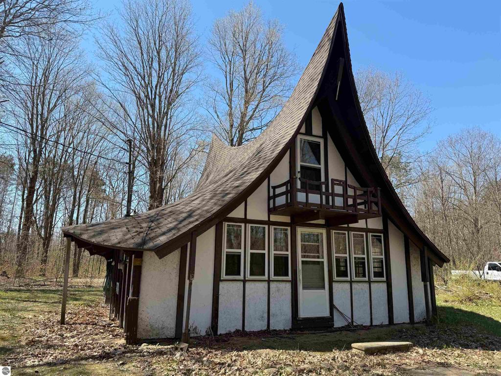 Fairytale Inspired Architecture! The attributes of this structure will set you apart from any "cookie-cutout" cottage. Taken down to the studs, this unique house is a blank slate awaiting your creativity to transform it into a personalized haven. Tap into your whimsical side to design and create an experience on the interior OR opt for chic touches and finishes for a cozy masterpiece. Either way, enjoy shared access to Starvation Lake, perfect for boating, fishing, and water activities. Utilities, including natural gas and Spectrum are already in place. Idiyllic location near skiing, snowmobiling, golf, ORV trail (side-by-side adventures await) and charming nearby towns. This property puts you in reach of year round adventure. Don't miss out"”see it today!