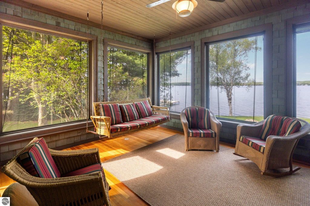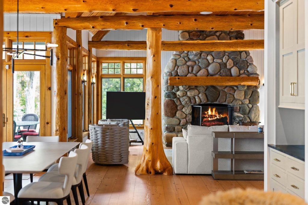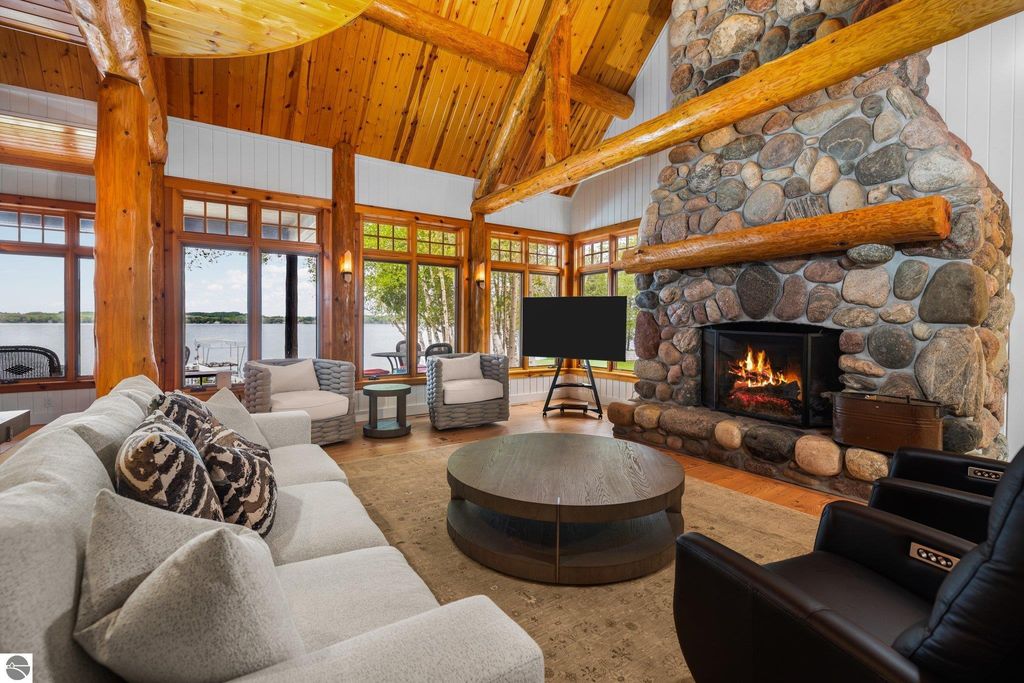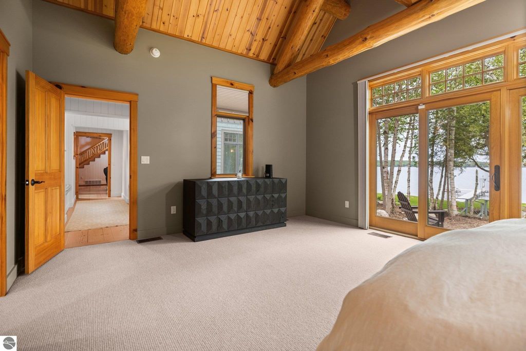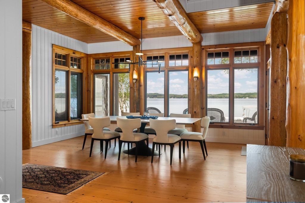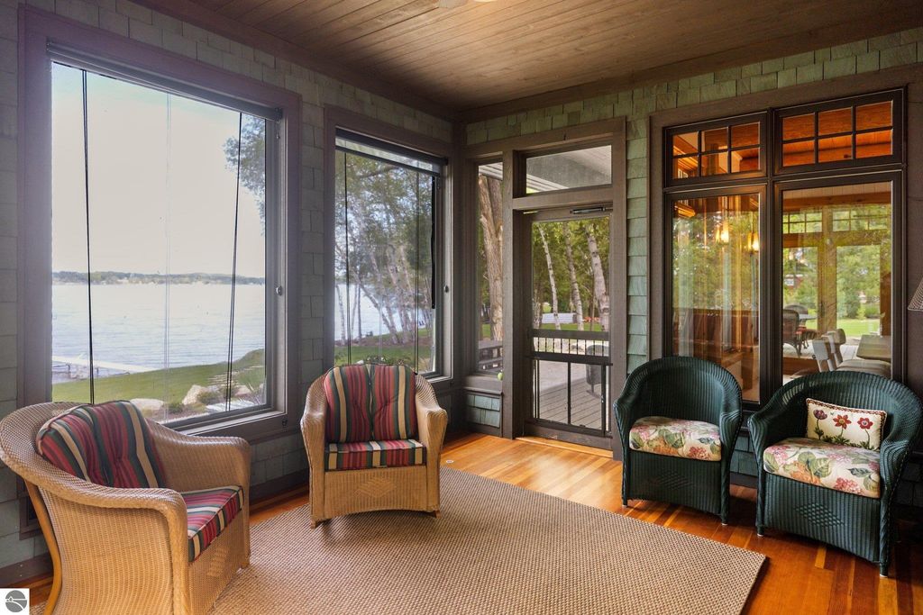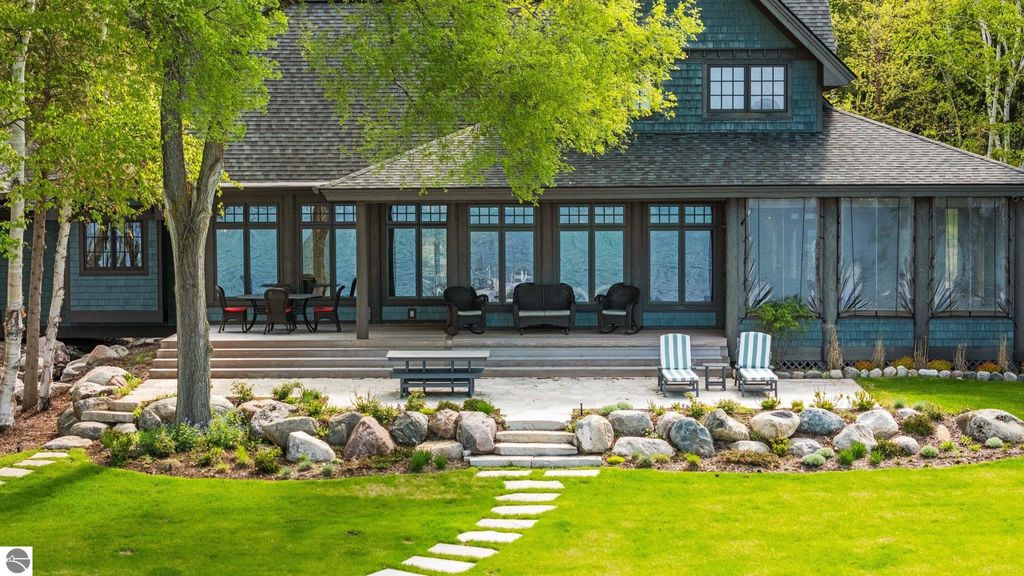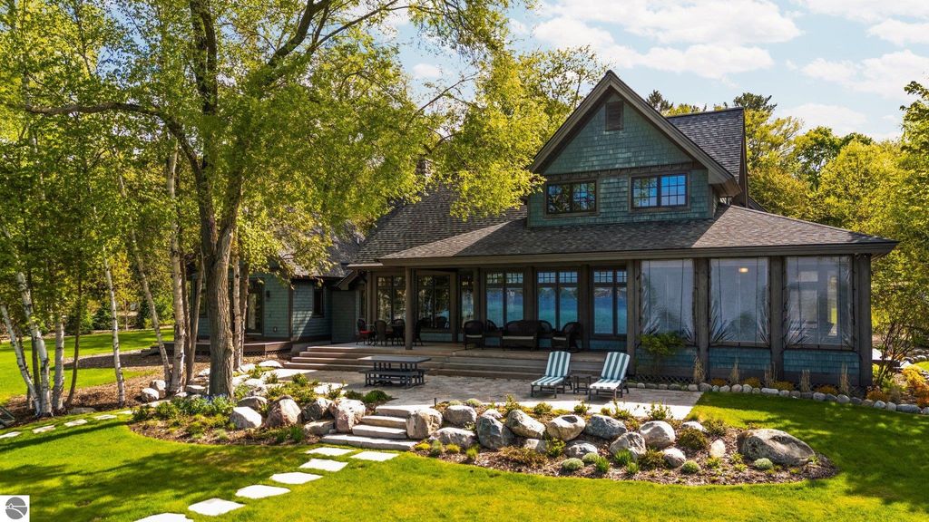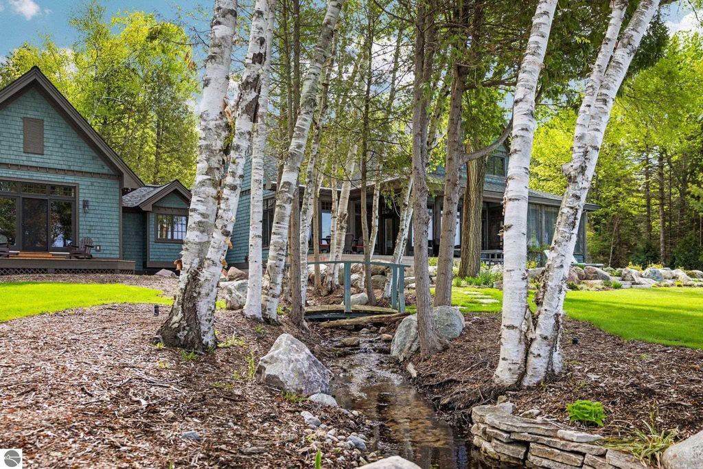 Welcome to the Gold Coast of Torch Lake! This stunning, newly renovated and updated home sits on 3.58 acres and 232 feet of Torch Lake. Enjoy sitting at the water's edge from the new Brazilian decking and slate stone patio, just feet from the turquoise waters of the world's 3rd most beautiful lake. Meticulously designed and appointed, this 4 bedroom, 3 bath, 3800+ square foot home has open and airy living space designed to maximize the stunning views. The focal point of the living room is the impressive fieldstone fireplace, beautiful log posts (many milled from the property) custom railings, wood floors and an open floor plan that gives this home a timeless feel. The newly remodeled kitchen features a Wolf Subzero Oven and Steam Oven, Cove Dishwasher, new countertops and so much more. Enjoy your morning coffee or the spectacular sunsets from the 3-season room, just steps from the water. Want to take a break from your sun-drenched days? Take a short walk to your 2 onsite trout ponds, or close your eyes and listen to the gurgle of the natural spring running through the property and underneath the home. This estate is magnificent, totally unique and exudes privacy, peace and tranquility. This beautifully appointed home comes furnished with new RH luxury home furnishings. Also included is a new 25' Tritoon Electric Boat lift and 2 electric Sea Doo lifts. Enjoy the summer on sparkling Torch Lake and start making family memories now!