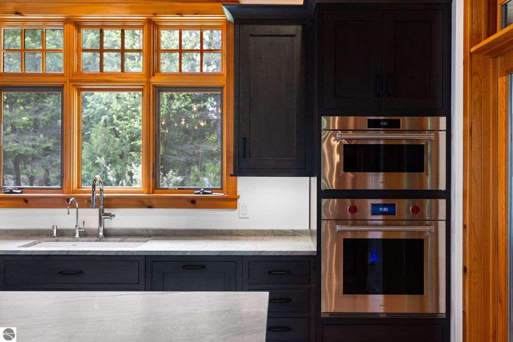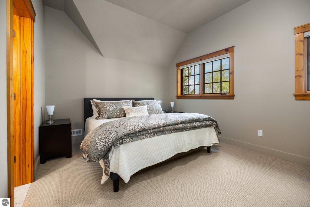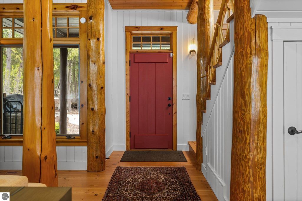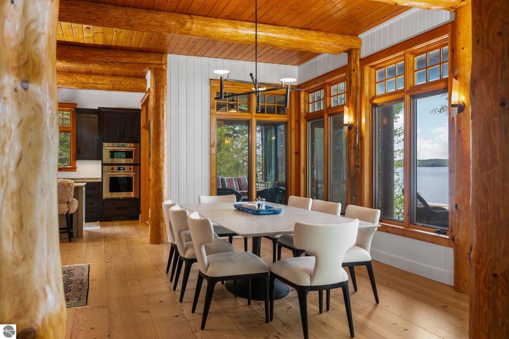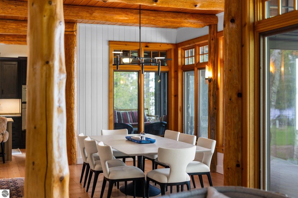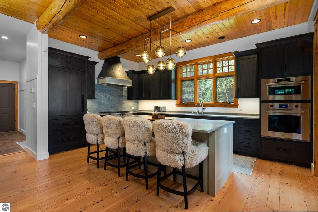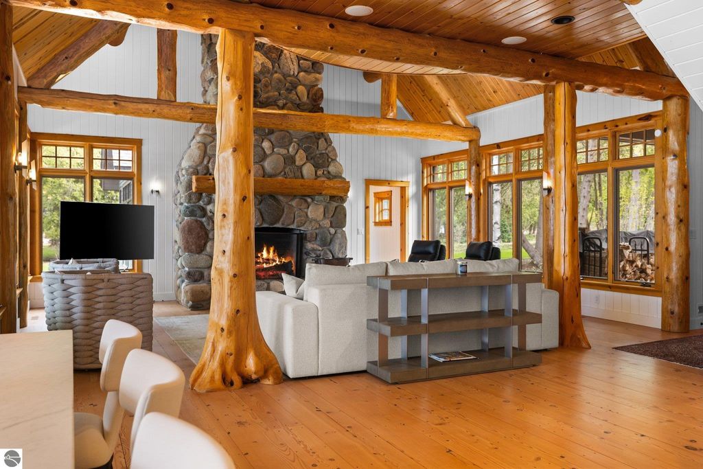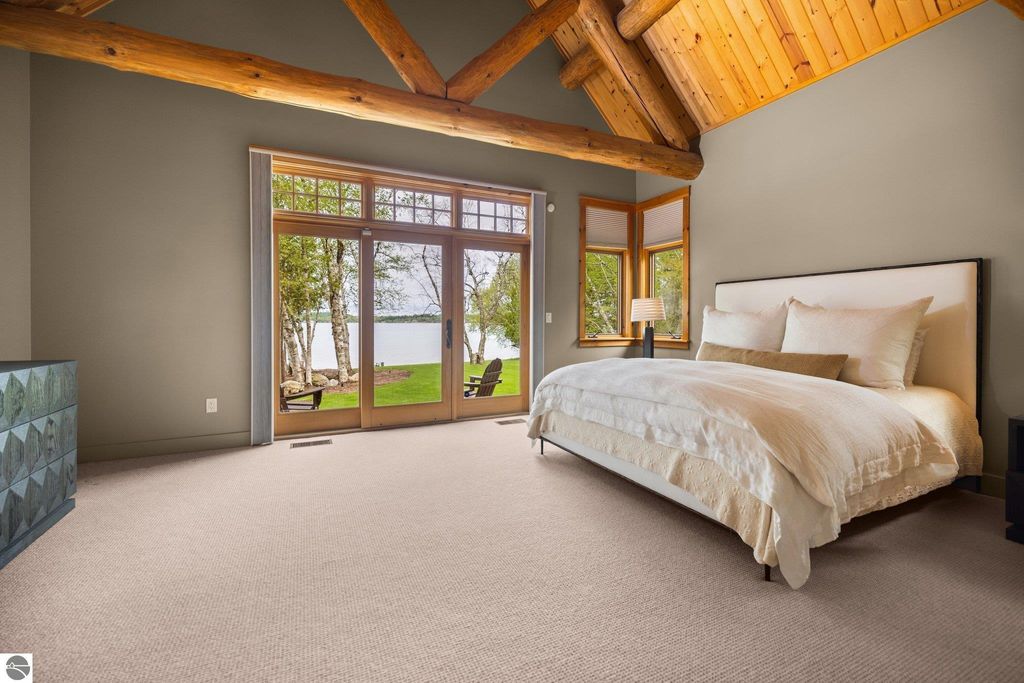 Welcome to the Gold Coast of Torch Lake! This stunning, newly renovated and updated home sits on 3.58 acres and 232 feet of Torch Lake. Enjoy sitting at the water's edge from the new Brazilian decking and slate stone patio, just feet from the turquoise waters of the world's 3rd most beautiful lake. Meticulously designed and appointed, this 4 bedroom, 3 bath, 3800+ square foot home has open and airy living space designed to maximize the stunning views. The focal point of the living room is the impressive fieldstone fireplace, beautiful log posts (many milled from the property) custom railings, wood floors and an open floor plan that gives this home a timeless feel. The newly remodeled kitchen features a Wolf Subzero Oven and Steam Oven, Cove Dishwasher, new countertops and so much more. Enjoy your morning coffee or the spectacular sunsets from the 3-season room, just steps from the water. Want to take a break from your sun-drenched days? Take a short walk to your 2 onsite trout ponds, or close your eyes and listen to the gurgle of the natural spring running through the property and underneath the home. This estate is magnificent, totally unique and exudes privacy, peace and tranquility. This beautifully appointed home comes furnished with new RH luxury home furnishings. Also included is a new 25' Tritoon Electric Boat lift and 2 electric Sea Doo lifts. Enjoy the summer on sparkling Torch Lake and start making family memories now!