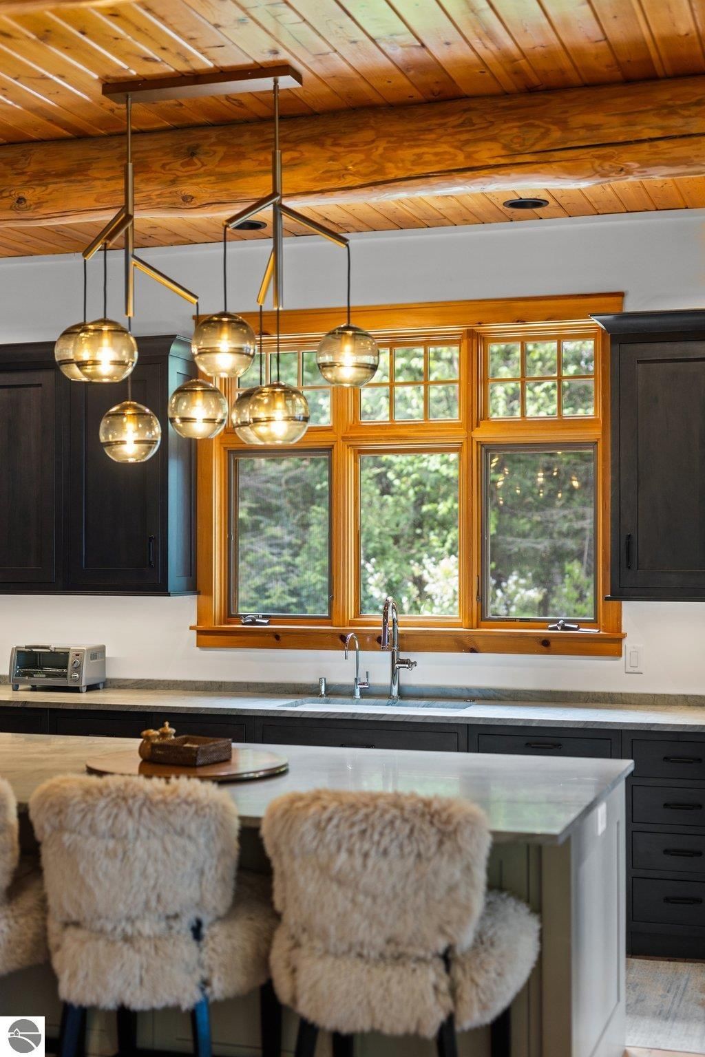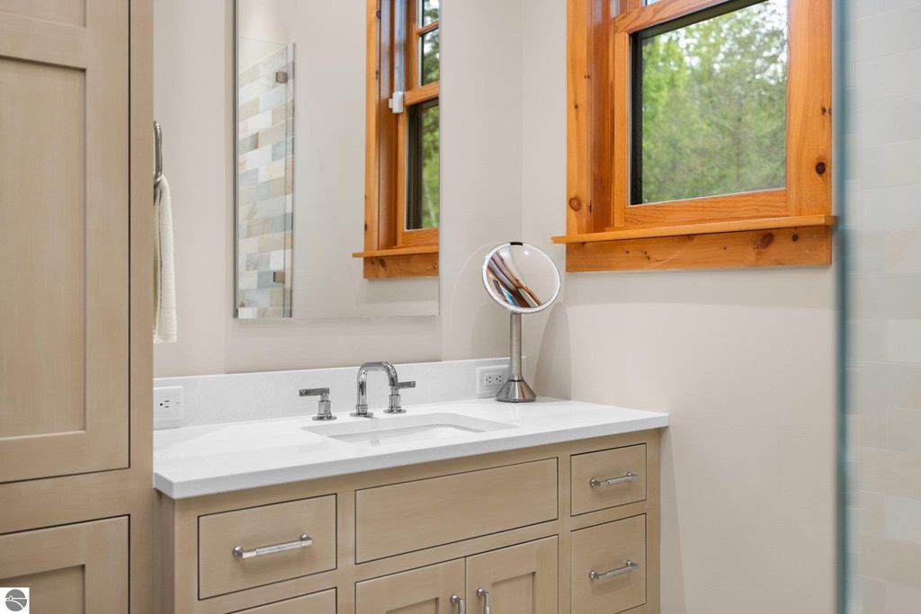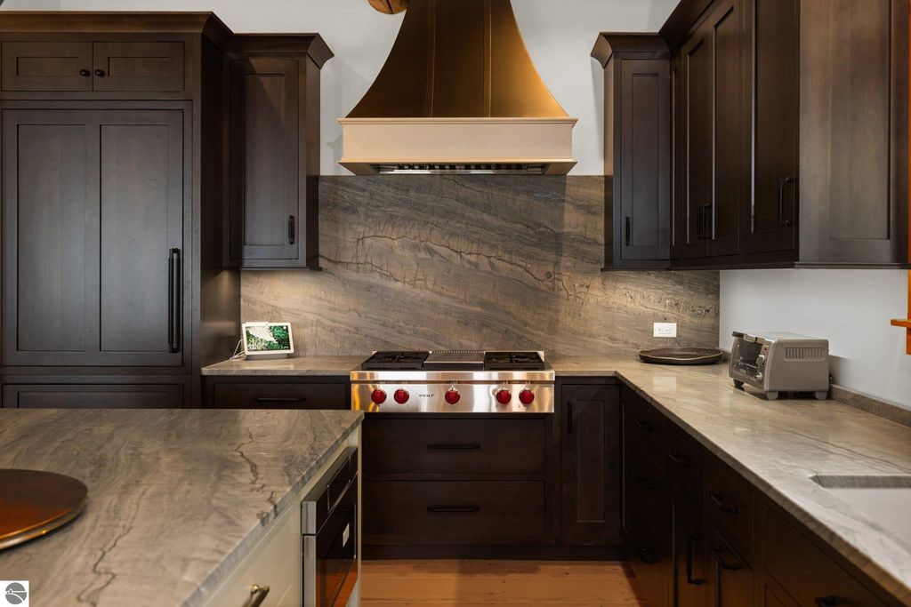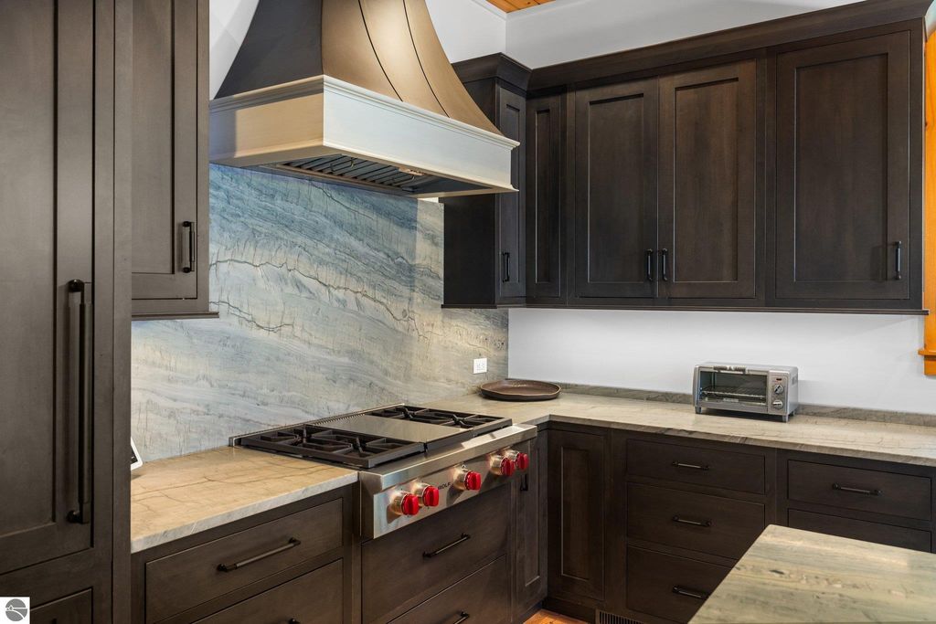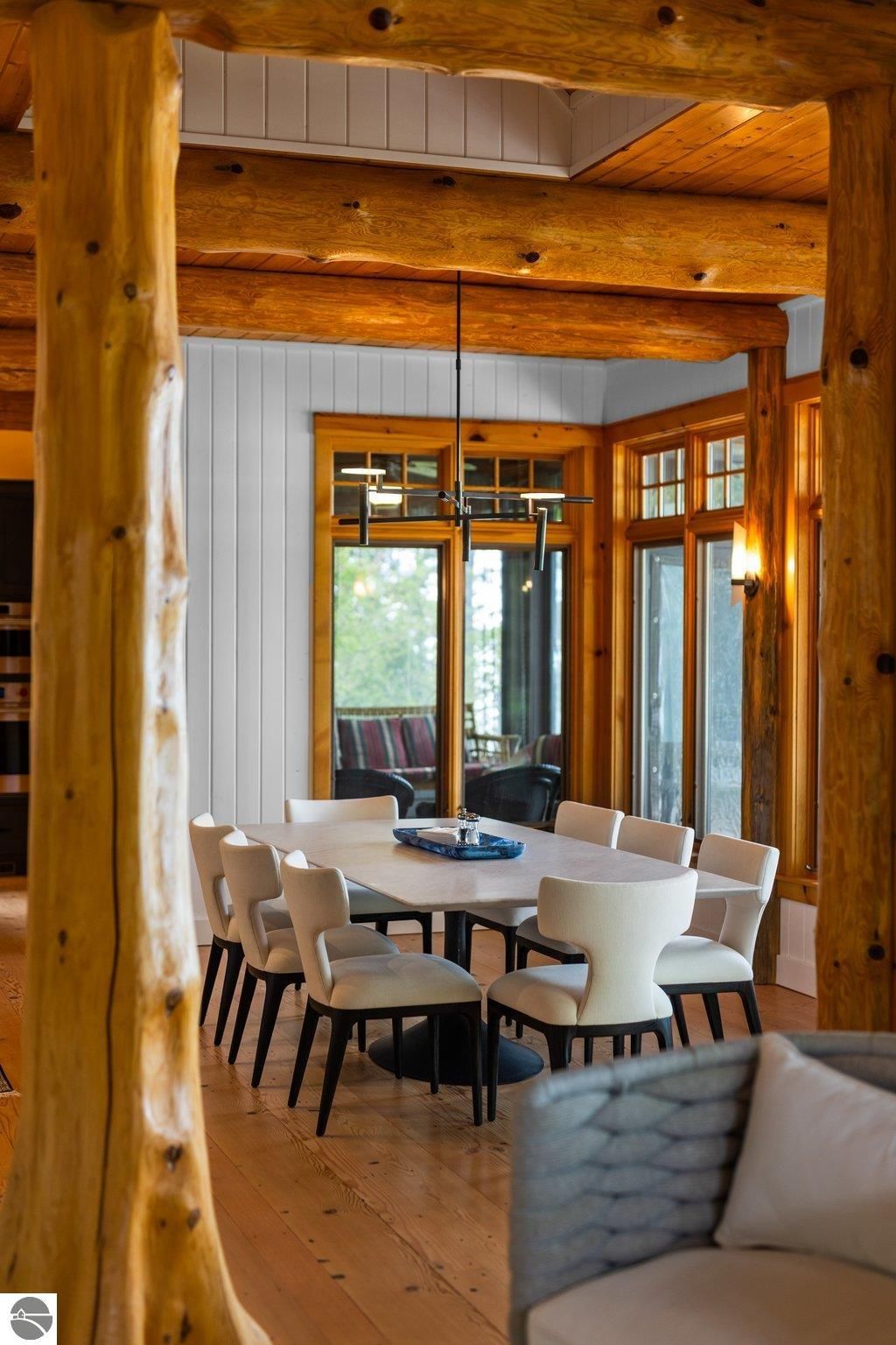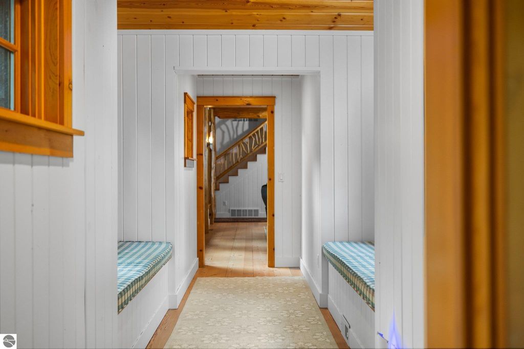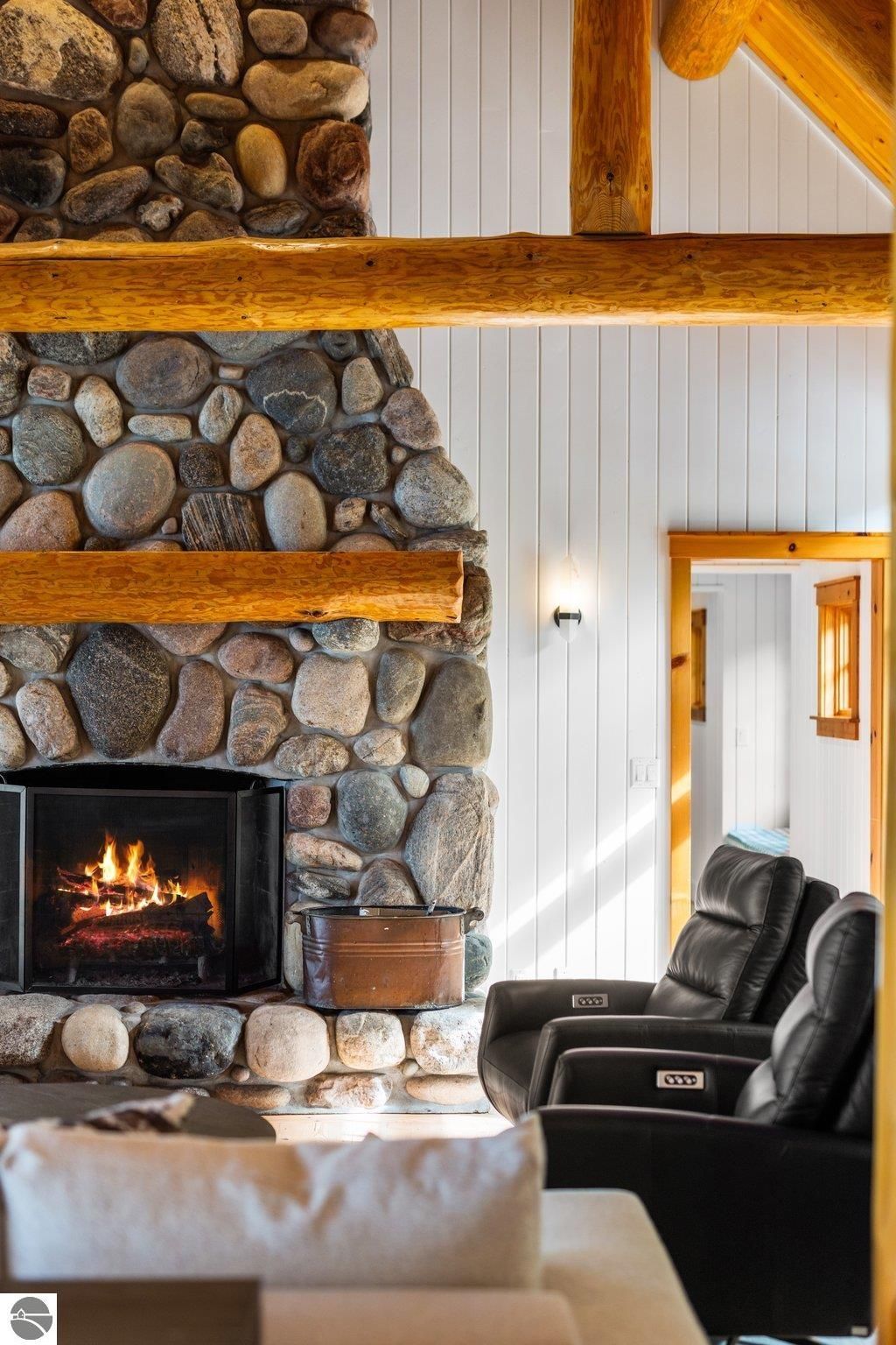 Welcome to the Gold Coast of Torch Lake! This stunning, newly renovated and updated home sits on 3.58 acres and 232 feet of Torch Lake. Enjoy sitting at the water's edge from the new Brazilian decking and slate stone patio, just feet from the turquoise waters of the world's 3rd most beautiful lake. Meticulously designed and appointed, this 4 bedroom, 3 bath, 3800+ square foot home has open and airy living space designed to maximize the stunning views. The focal point of the living room is the impressive fieldstone fireplace, beautiful log posts (many milled from the property) custom railings, wood floors and an open floor plan that gives this home a timeless feel. The newly remodeled kitchen features a Wolf Subzero Oven and Steam Oven, Cove Dishwasher, new countertops and so much more. Enjoy your morning coffee or the spectacular sunsets from the 3-season room, just steps from the water. Want to take a break from your sun-drenched days? Take a short walk to your 2 onsite trout ponds, or close your eyes and listen to the gurgle of the natural spring running through the property and underneath the home. This estate is magnificent, totally unique and exudes privacy, peace and tranquility. This beautifully appointed home comes furnished with new RH luxury home furnishings. Also included is a new 25' Tritoon Electric Boat lift and 2 electric Sea Doo lifts. Enjoy the summer on sparkling Torch Lake and start making family memories now!