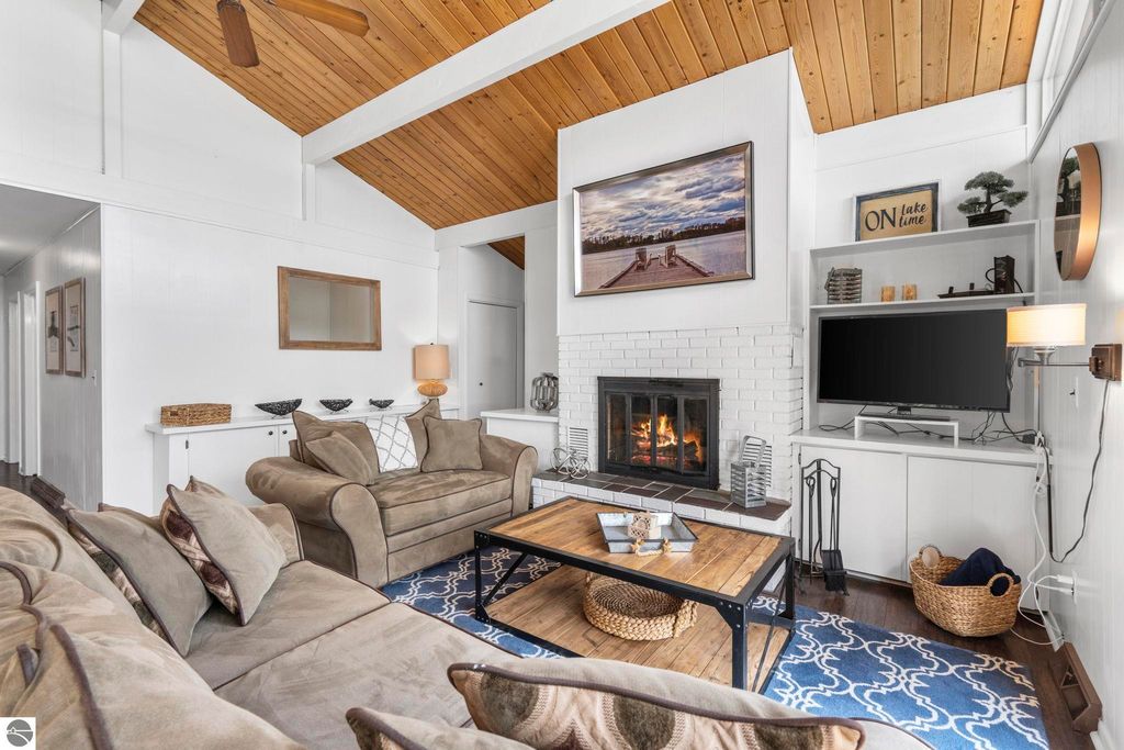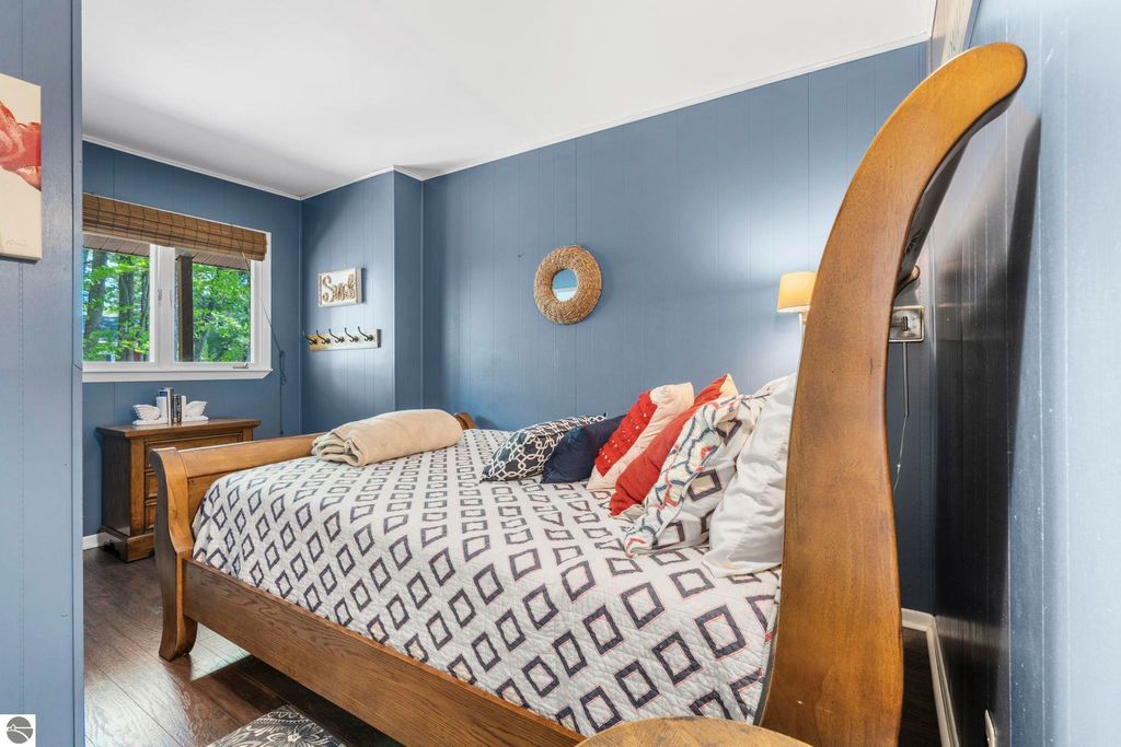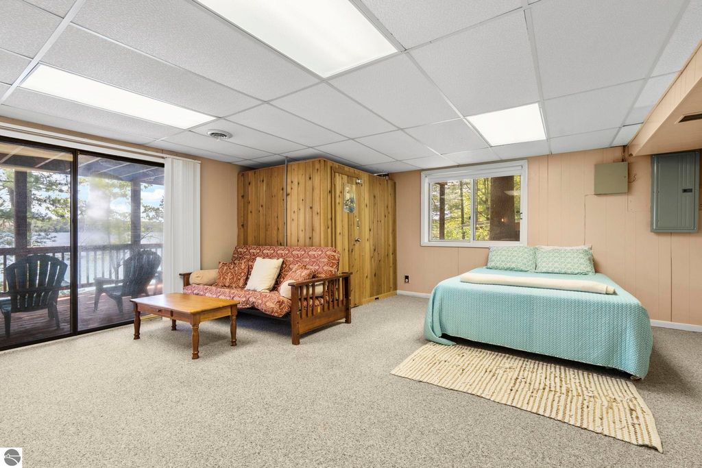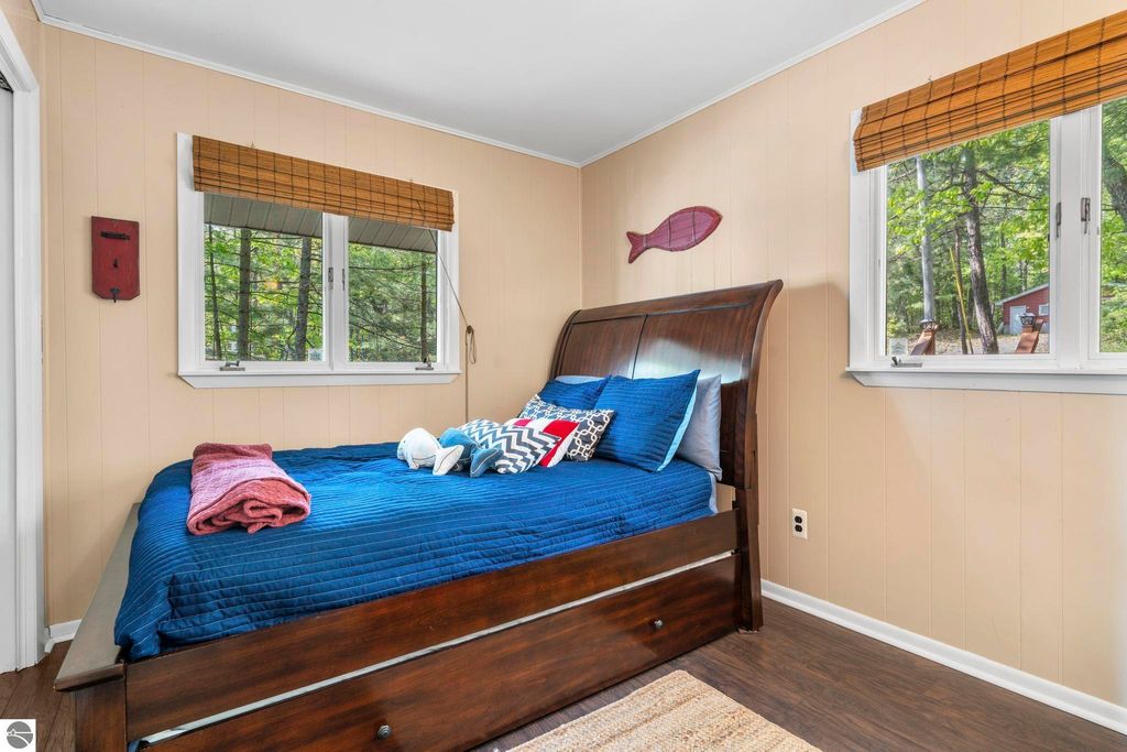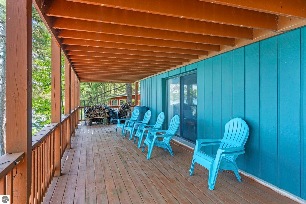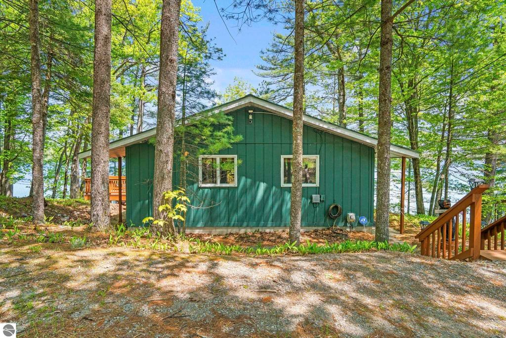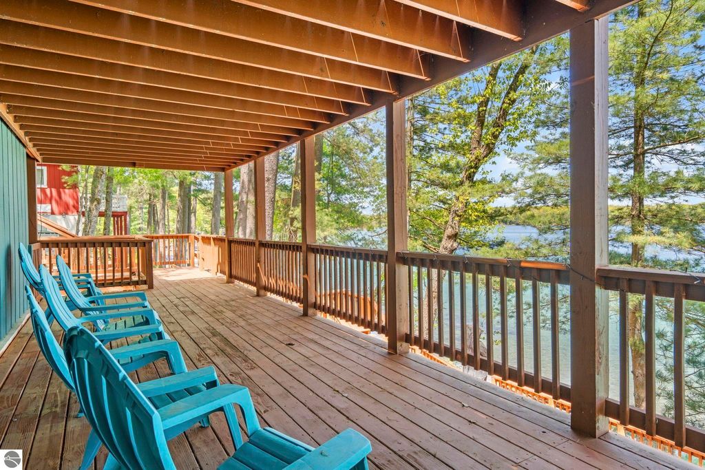 Welcome to Bear Lake in Kalkaska, Michigan! One of Northern Michigan's most coveted all-sports lakes, affectionately known as "Little Torch Lake" for its Caribbean-blue, crystal-clear water, hard sandy bottom & gradual walkout. It is a 316-acre, spring-fed hidden treasure, free of weeds & invasive species thanks to regular monitoring. Limited public access helps preserve its serenity. Nestled on 100 ft of private frontage, this beautifully updated home offers panoramic lake views from a massive 4-tier, 2,000+ sq ft deck system with locking gates for family & pet safety. The exterior and deck were freshly repainted in 2025. Watch the sunrise w/morning coffee, kayak during no-wake hours, enjoy waterskiing & wakeboarding, & anchor at the sand bar. Evenings are for boat cruises, barbeques, cocktails by the fire & incredible sunsets. This turnkey, furnished home has nearly 1,600 sq ft of living space w/abundant natural light, 3 bedrooms & 2 baths, sleeps 12+, vaulted pine ceiling & a wall of windows with walkout to deck. The modern kitchen has granite counters & stainless appliances & the well water tastes amazing! A spacious lower level offers bonus sleeping & recreation space, laundry area & walkout door wall to deck. Extras include central A/C, gas furnace, large capacity hot water tank, wood-burning fireplace, washer/dryer, new remote access smart features such as security system & thermostat; ceiling fans, updated outside lighting & easy access circle drive w/ parking for 8. A 60 ft steel FLOE roll-in dock system with sundeck & accessories is also available. This listing includes a 0.5-acre wooded buildable lot across the street with 2-car garage and abundant parking space - perfect for a guest house or toy barn. Recreational ORV trail enthusiasts will love all-season access to the State-marked trail system just down the street plus M-72 Trailhead 1/4 mile away. Just 15 mins to Grayling & 35 to Traverse City. A rare chance to own a true up north, lakefront Paradise!