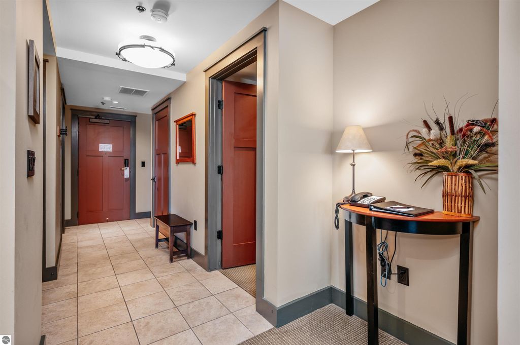 Tamarack Lodge condo. This is a fixed week unit (week 40). Fractional ownership. Redwood room 504 is a 1,032 sq ft, 2br, 2ba penthouse unit on the 5th floor of a 5 story building that has an elevator. All units directly face the water and have magnificent views of Lake Michigan's East Grand Traverse Bay. Each unit has a private patio facing the water and the beach is as sandy as you can hope for, perfect for sunbathing and swimming. All units come turn key, they are fully furnished (beds, couches, tables, chairs, TVs, linens, etc), have gas fireplaces, well appointed kitchens complete with appliances, silverware, cookware, etc. Each unit has its own washer/dryer. The purchase price is a one time fee which guarantees your week(s) every year for as long as you own the unit and pay the $49 per month HOA, property taxes and cleaning fee. HOA fees are for gas, electric, cable, wifi, water, sewer, trash removal, snow removal, building insurance, content & liability insurance, outside and inside maintenance. Basically, after you pay the one time purchase price your out of pocket costs are only the monthly HOA, annual property taxes and the cleaning fee.