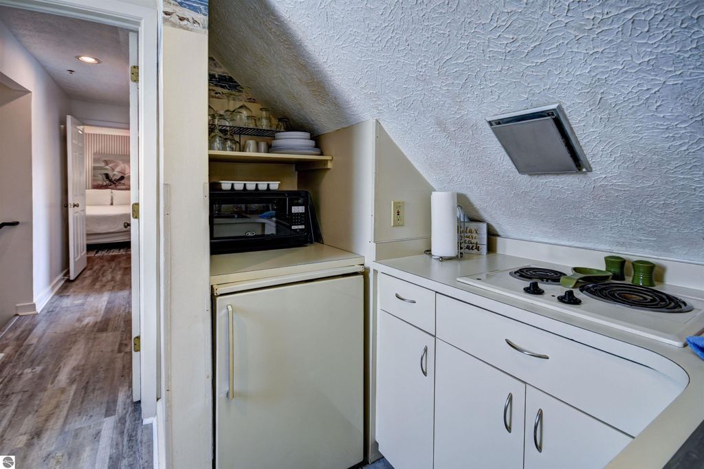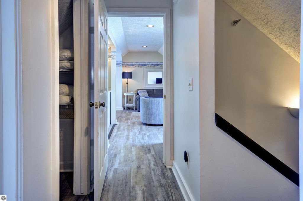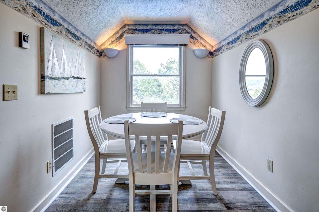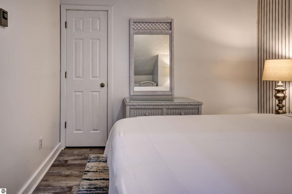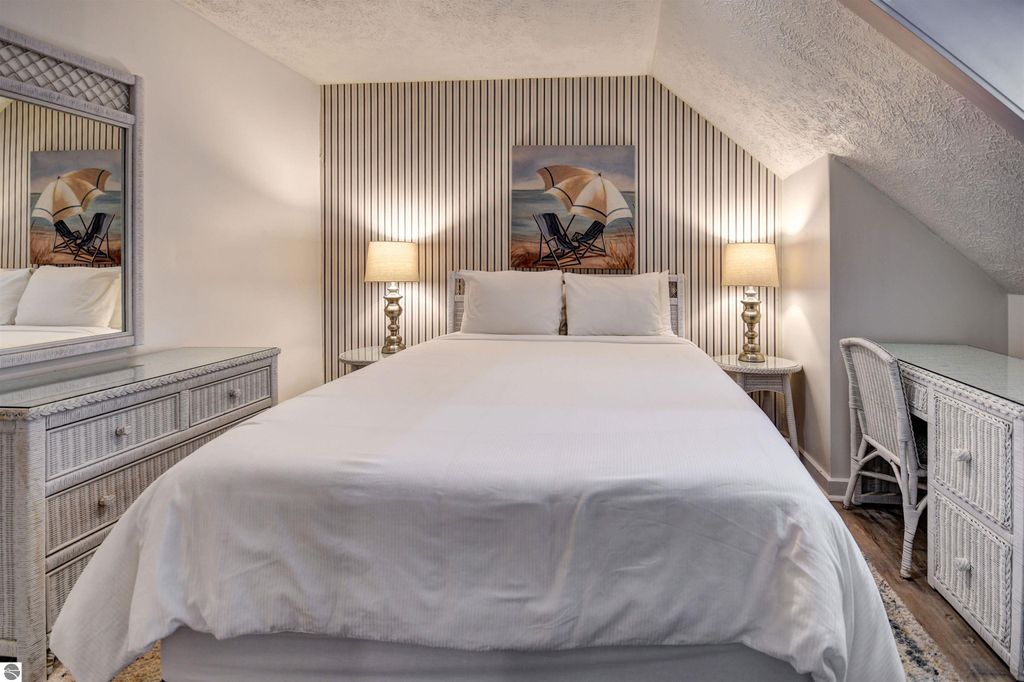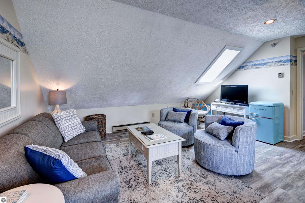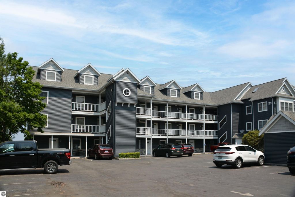 Condo with 200' of shared Grand Traverse Bay waterfront! Fully furnished 1BR/1BA condo, perfect for your Up-North hideaway or an excellent income generating potential with on-site rental management already in place. Gorgeous sandy East Bay beach, heated in-ground swimming pool, and a shared beach side deck are the highlights of this prime vacation property. This quiet, bungalow style penthouse unit is fully furnished and is the biggest single bedroom in the complex, and the only one located on the 4th floor. Featuring a dining area that overlooks the pool and part of the bay, a cozy living area accented with a skylight, an efficient alcove kitchen, and a relaxing bedroom with plenty of closet space. Great location across from TART Trail and convenient distance from downtown Traverse City for shopping, dining, and various recreational activities!