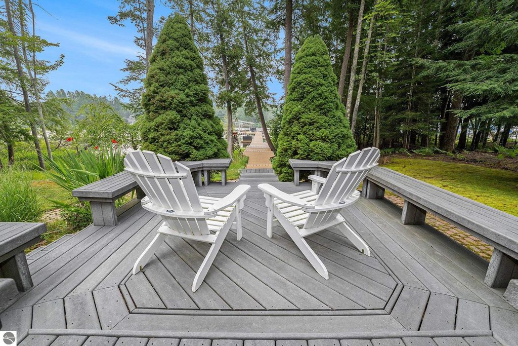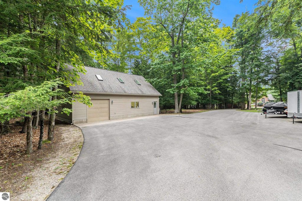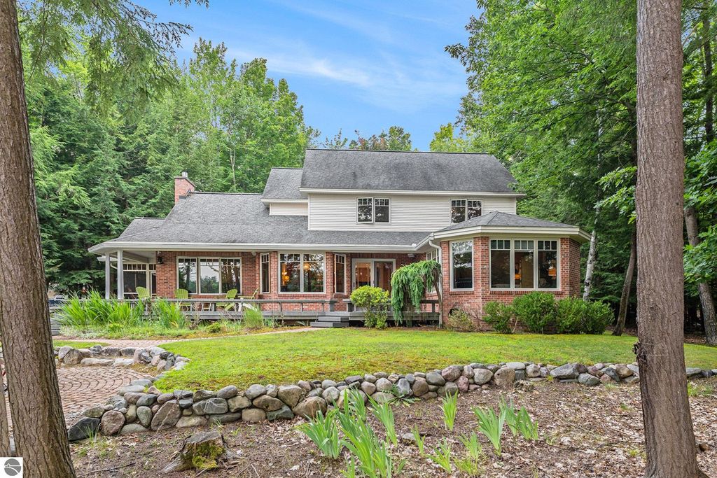 Torch River with 125 ft. of quiet crystal clear peaceful frontage. Only 3/4 of a mile from Torch Lake, and it's Caribbean Blue waters, one of the most beautiful lakes in the world. This exquisite property includes a high quality maintenance free brick home with 3 bedrooms, 2.5 baths, and 2,800 sq. ft. of wide open living space. The centrally located kitchen features beautiful custom made wood cabinetry, gas range, stainless appliances, granite counter tops and a terrific view of the river plus the surrounding landscaping. Home has an oversized heated 3.5 car attached garage with a 15 x 38 bonus room. A floor to ceiling natural stone fireplace in the living room adds comfortable living space again with more views of the river and the winter proof dock that will accommodate all of your water toys. You do not have to remove this dock in the winter! In addition, there is a detached heated 28 x 40 garage with a 1/2 bath and a large bonus room above. The lot features large mature trees of many varieties. Everything is in excellent condition and at a price that makes it affordable to get onto Torch Lake.