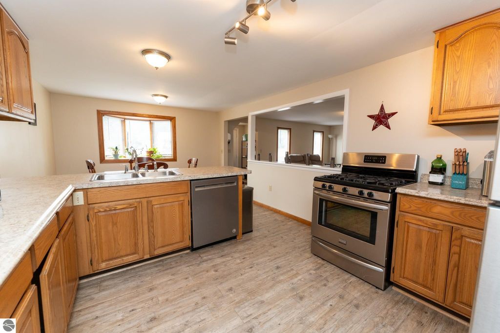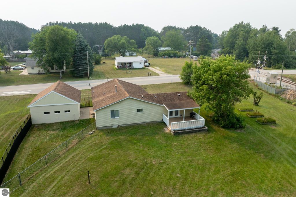 Nearly 1,700 square foot ranch in the village of Farwell on just over one acre! Three-bedrooms, two and a half baths with a spacious primary that has a large private half bath and its own private access to the deck/backyard. The kitchen is open to the dining and living area and features stainless steel appliances. Oversized 2 car detached garage offers extra room for a workshop or added storage. As an added bonus, this house has access to Spectrum internet and TV and has municipal water and sewer. Easy access to M-115 to get to US 10 or only a quick jaunt to downtown Clare to enjoy restaurants and shopping.