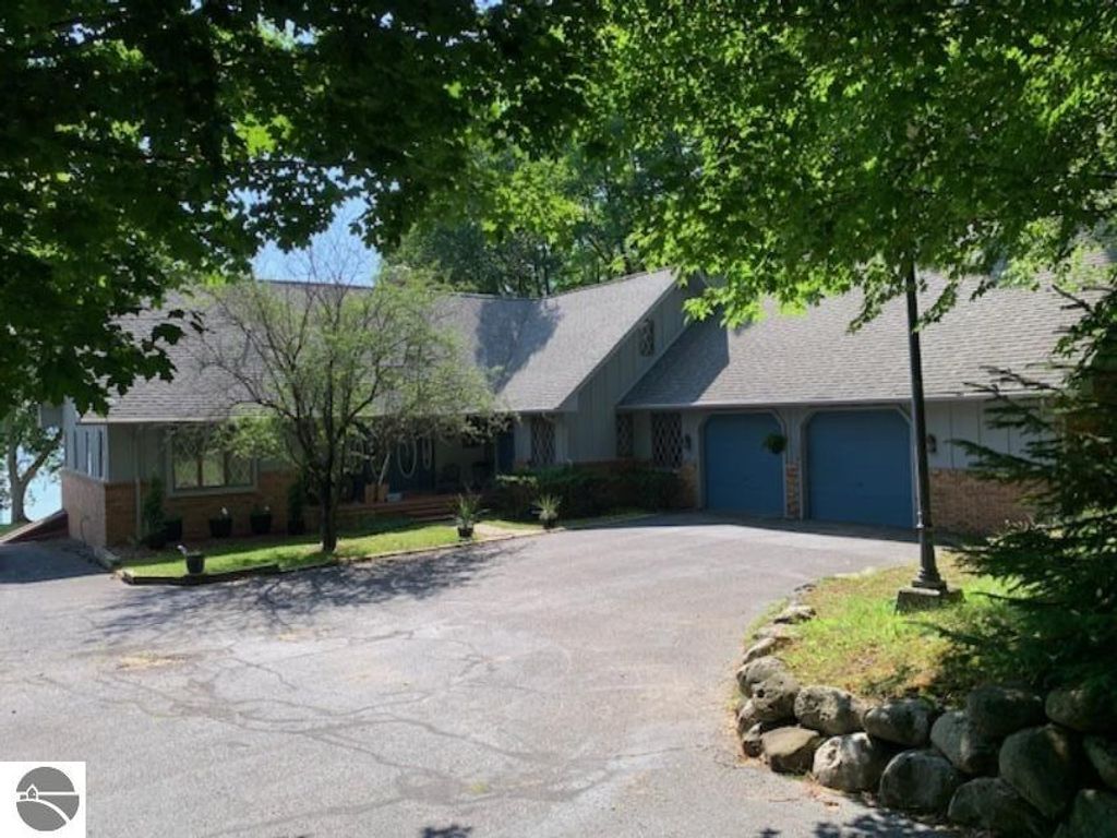 Renowned Torch Lake, enjoy 150 ft. frontage on a 2.5 acre lot with turquoise waters connected to the chain of lakes. 4 bedroom, plus office, cathedral ceilings highlighting oak beams with open loft for a spacious feel. 2 fire places, a lower level game/rec. room (pool table included) with walkout to lake. Oversized 34x28 garage with additional 680 sqft second level storage. Beautiful quiet neighborhood. Estate is AS IS. Video of approach to front of house from Torch Lake and view of water: https://www.youtube.com/watch?v=z0RaHKB0gqw Video of road side of house from driveway: https://www.youtube.com/watch?v=qOZXBRN_DO4 Video of property to front door: https://www.youtube.com/watch?v=F2008hxEUdg