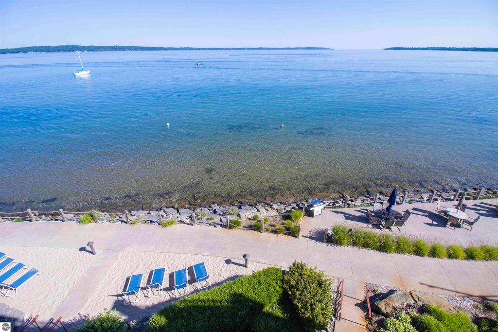 Tamarack Lodge! Similar to a timeshare, Douglas Fir room 405 is a 1,464 sq ft, 2br 2ba fourth floor unit. One of the bedrooms is a "Lock-off" with its own private entrance. Absolutely outstanding water views and the best sugar sand beach imaginable from this waterfront condo in Traverse City on Lake Michigan's East Grand Traverse Bay. This is a fixed week unit (week 36). $70 per month association dues cover pretty much everything except for room cleaning and property taxes. All furnishings and linens included, even the fully stocked kitchen (appliances, pots, pans, silverware, etc). The purchase price is a one time fee guaranteeing you week 36 year after year as long as you pay the monthly HOA, annual property taxes and cleaning fee. Get your piece of the North today!