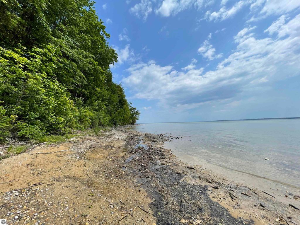 Premium location on the Stony Point peninsula off desirable Lee Point Rd. A long driveway to this private parcel with 300' frontage on West Bay with a path to water from the bluff site. Sunrise views over the Bay and you can even hear the Lee Point Buoy ding. Level building site with 4 acres to build any size home and accessory buildings for your boats/toys/cars/shop. Sellers will clear cherry trees. Sellers met with Robin from EGLE Oct. 15, 2025 = 50' setback from bluff for non permanent structures including a deck added on from house; 85' setback from bluff for permanent structures. This is part of a larger parcel being split off (Owners farm 200+ acres with over 100 acres in conservancy) This property is Not in conservancy. Access directions in associated documents. Use CAUTION; working farm & farm 2-track is best for pick up truck or vehicle w/higher clearance. Sellers clearing and making shared drive/easement to the building sites off Lee Point Rd. See associated docs. Subject to final land division approval (prelim ok)
