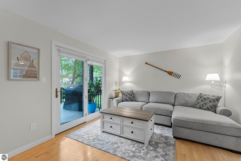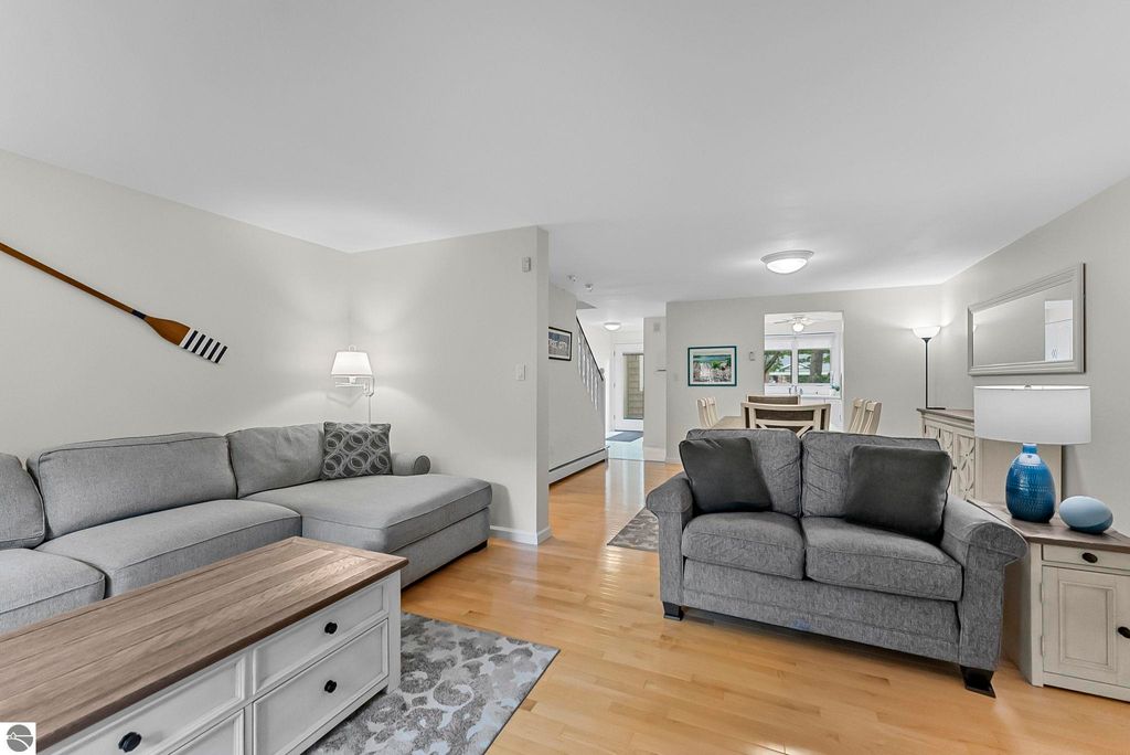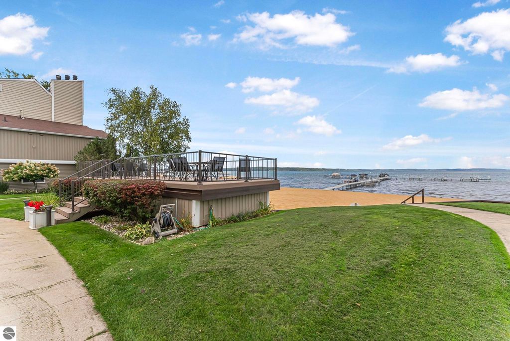 This is a truly special offering in one of East Bay's most coveted communities. With 330 feet of pristine, sandy shared frontage, you'll enjoy wide open shoreline, an entertainment-style deck for entertaining guests or visiting with neighbors, and the possibility of dock and hoist privileges"”perfect for making the most of summer days on the water. The residence itself offers over 1,800 square feet of well-designed living space, featuring three bedrooms and three-and-a-half baths, a private office space and 2 family living areas. A private, assigned garage is included, along with all the conveniences of low-maintenance condo living. Whether you're looking for a lock-and-leave lifestyle or a year-round residence, this home delivers comfort and ease. Step outside and you're minutes from everything Traverse City has to offer. Catch the bus downtown, hop on the TART Trail for a bike ride to Suttons Bay, or simply walk to nearby restaurants. With direct access to East Bay, you can launch your boat or water toys without the hassle of trailering. Few opportunities arise in this community"”making this an exceptional chance to secure a slice of East Bay luxury living.