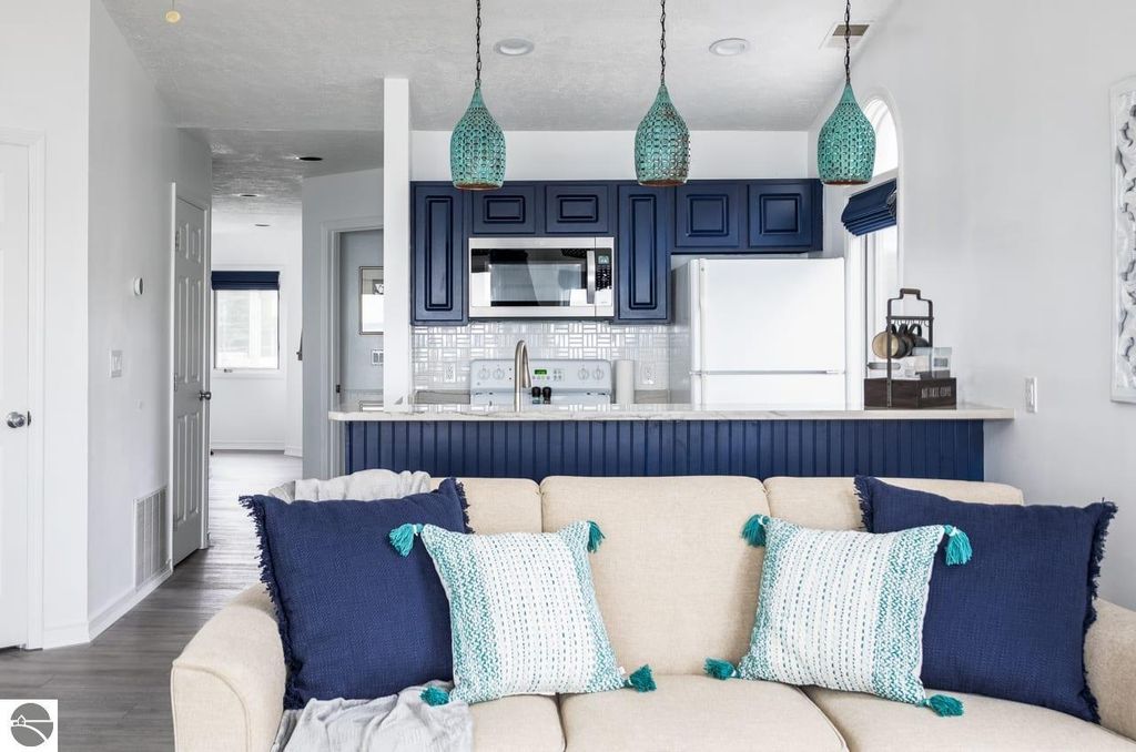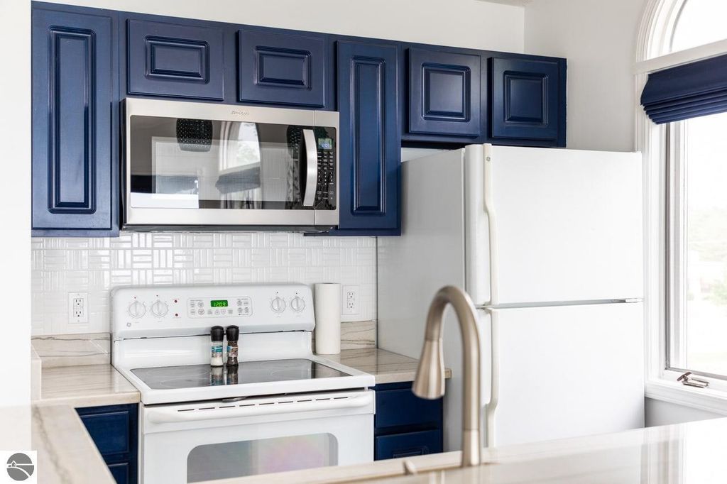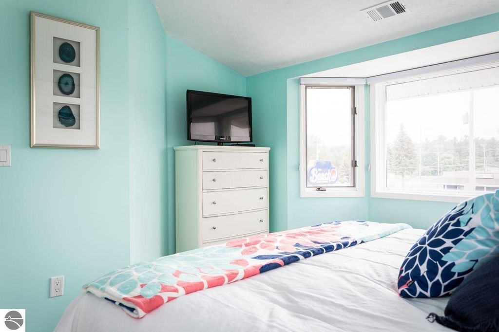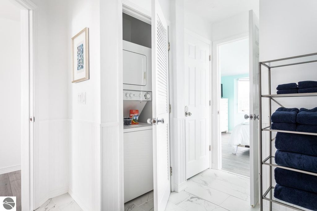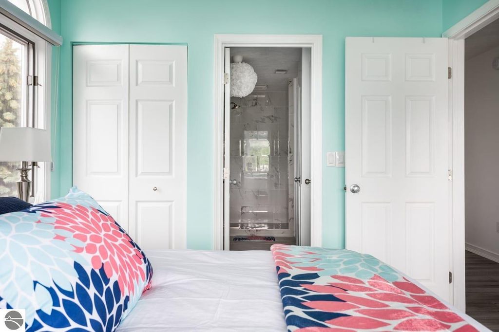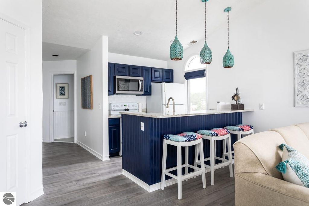 This fully furnished, beautiful beachfront condo at The Beach Condominiums is truly turn-key and ready for you to enjoy! Perfectly situated on the coveted shores of East Bay, this 3rd floor end unit offers the best sandy beaches in the Traverse City area and is directly adjacent to a convenient boat ramp"”ideal for water enthusiasts. With a proven history of great investment income, this condo is not only a relaxing retreat, but also a smart investment. Enjoy amazing views of the bay from your private balcony and take advantage of exclusive amenities including a private sandy beach, heated pool, hot tub, and elevator for easy access. This end unit boasts more quiet and privacy than others, featuring vaulted ceilings and extra half-moon windows that flood the space with natural light. The master suite includes a beautiful private bay window. Completely renovated from floors to ceiling in 2021, the condo features an updated bathroom with a large walk-in marble tile shower, a private water closet, and a brand new washer and dryer (2024) with a transferable extended warranty. Attention to detail is evident throughout: USB outlets are installed for modern convenience, unique lighting adds character, and blackout designer cloth blinds and curtains ensure restful nights. The kitchen is a chef's delight with updated appliances, granite countertops, a stylish tile backsplash, and a brand new stainless steel refrigerator being installed on October 5th! Located just 5 miles from downtown Traverse City, you'll have quick access to top-rated dining, shopping, and entertainment. Nearby businesses include Hopscotch Brick Oven & Taproom, Osorio Tacos y Salsas, and Grand Traverse Resort and Spa. This gorgeously decorated property won't last long! Don't miss your chance to own this exceptional slice of paradise in Traverse City's premier beachfront community"”where every day feels like a vacation!