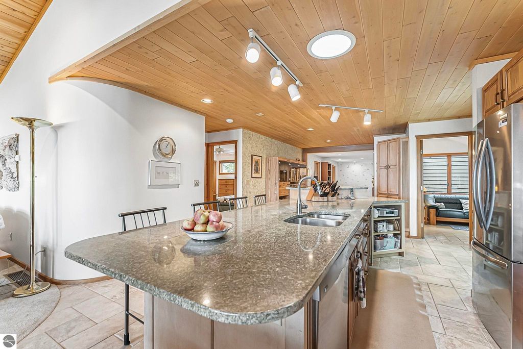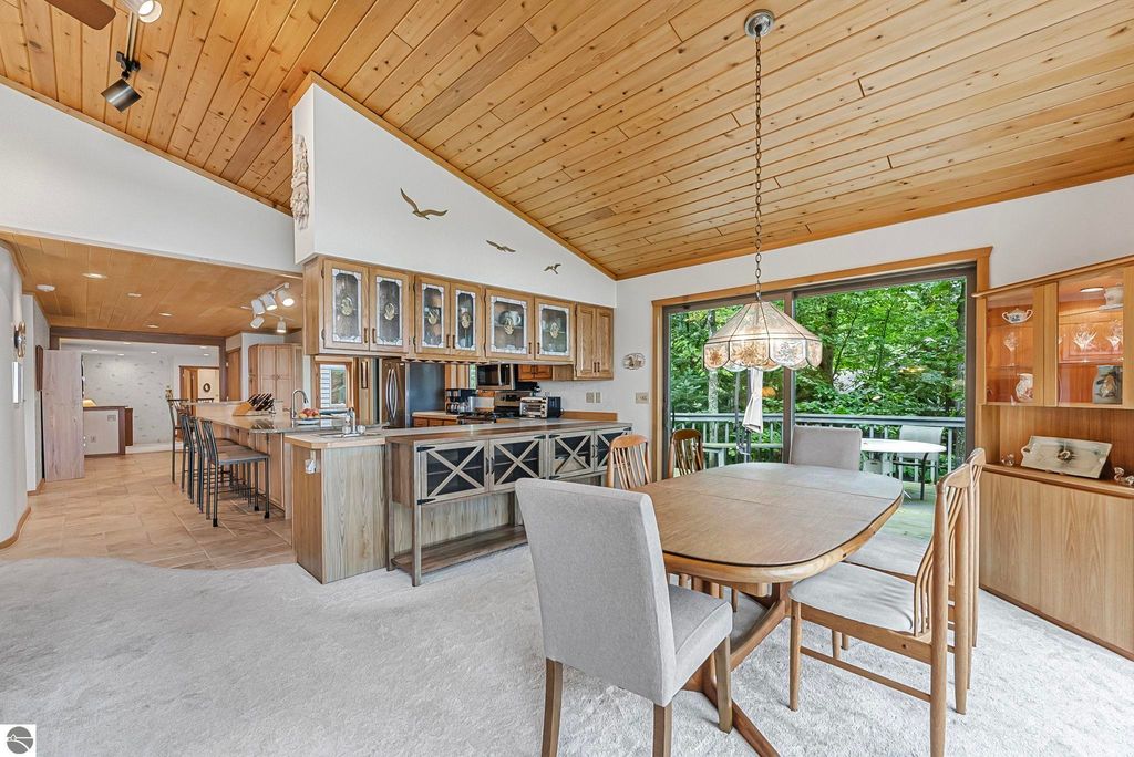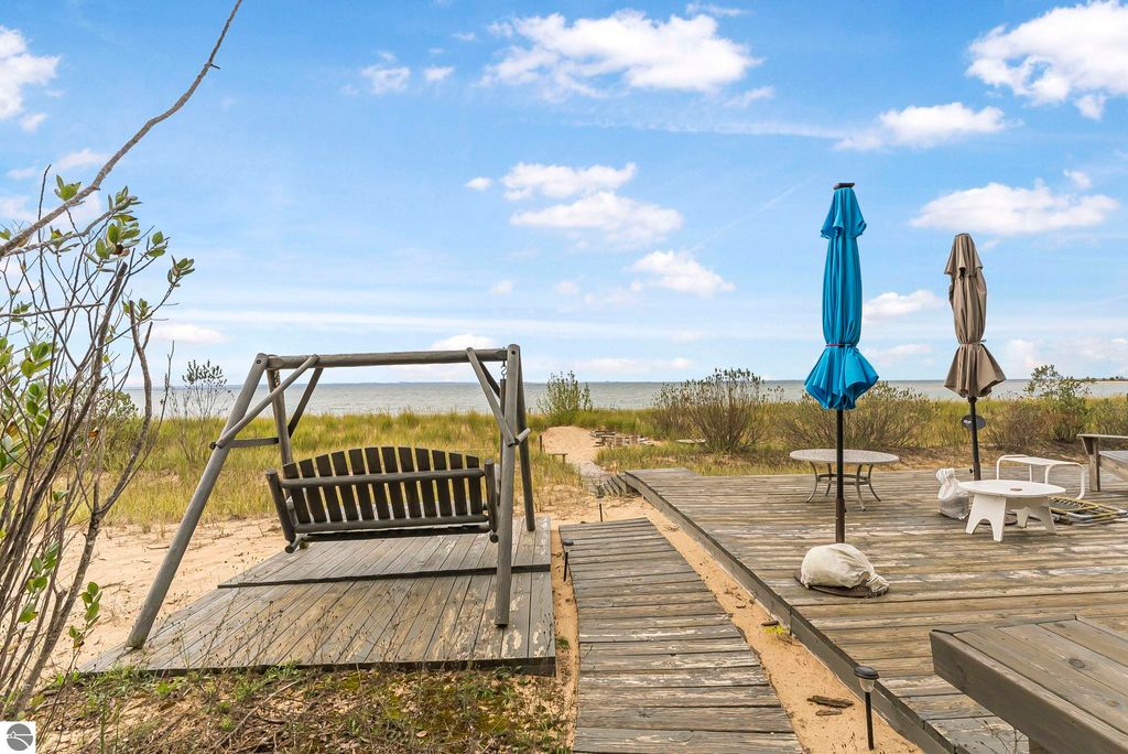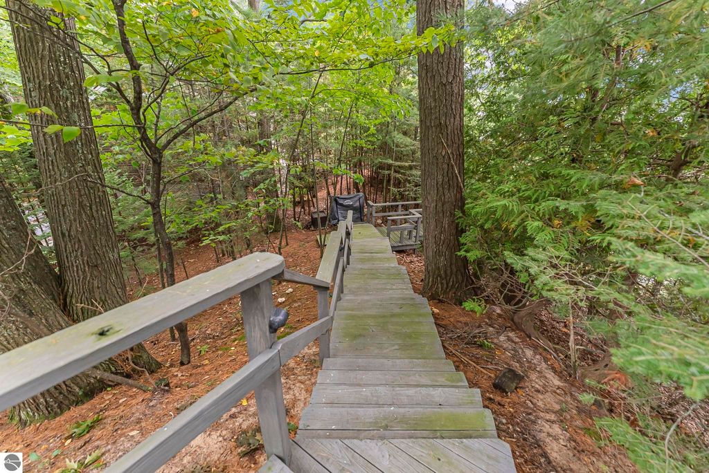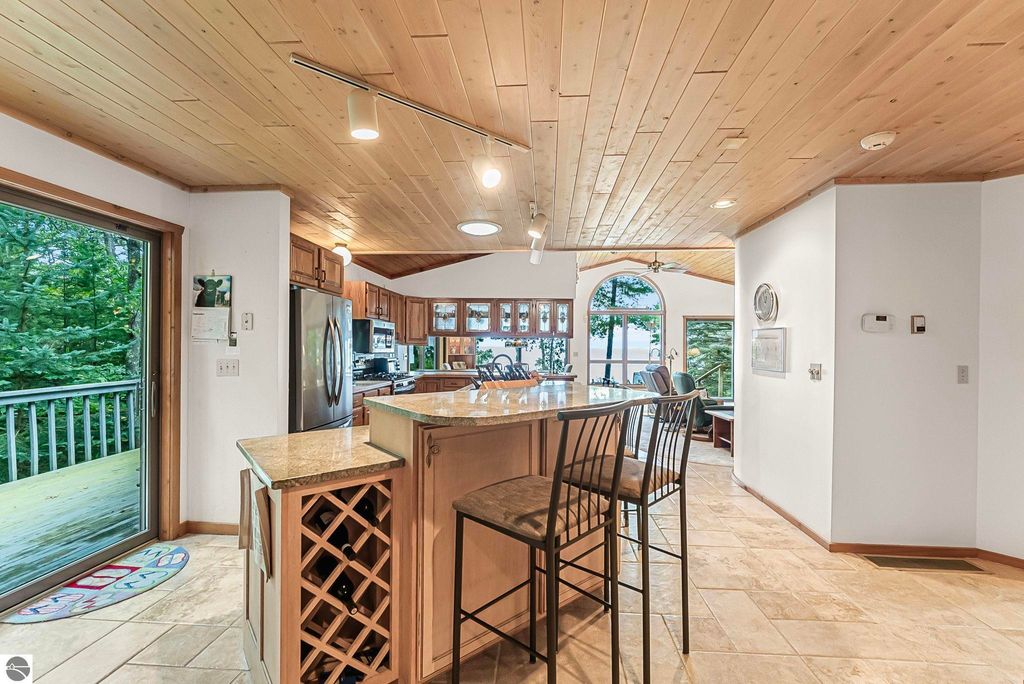 This stunning home along the coveted San Marino Trail in Kewadin"”ideally located between Elk Rapids and Charlevoix"”offers the perfect Up North retreat. Whether used as a primary residence or a vacation getaway, it blends privacy, comfort, and spectacular views of Grand Traverse Bay. Set on gorgeous, pristine frontage and surrounded by hardwoods, the property features expansive decks and outdoor living areas, combining seclusion with breathtaking scenery. Inside, the open design with soaring ceilings and walls of windows brings the outdoors in. The large kitchen flows seamlessly to a spacious living area and dining room, while multiple gathering spaces provide plenty of room for entertaining or relaxing. The thoughtful layout includes 2 main-floor bedrooms, four baths, and office space or potential for five bedrooms if needed. The lower level has a large living area with laundry and 2 additional bedrooms. A designated space for a future elevator supports aging in place, and a whole-house generator ensures peace of mind during inclement weather. This home truly has it all: stunning views, flexible living spaces, and an unbeatable location. Don't miss this rare opportunity.