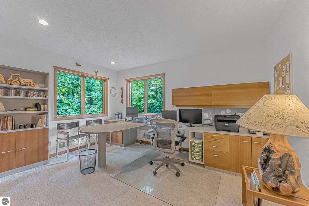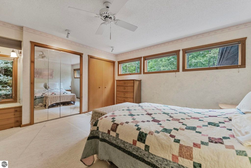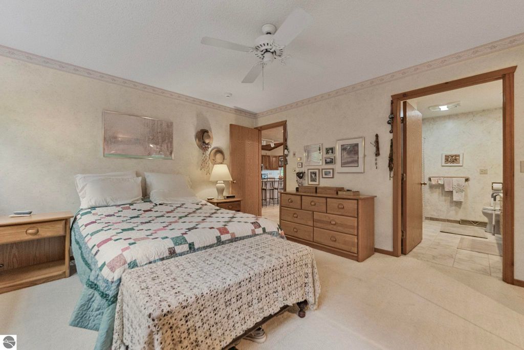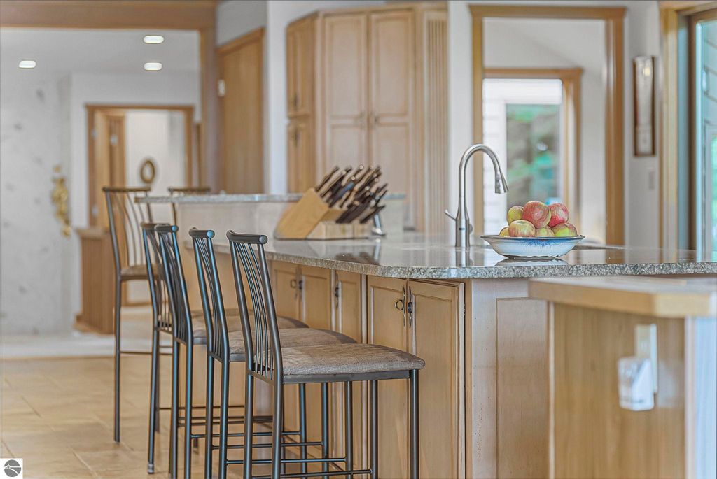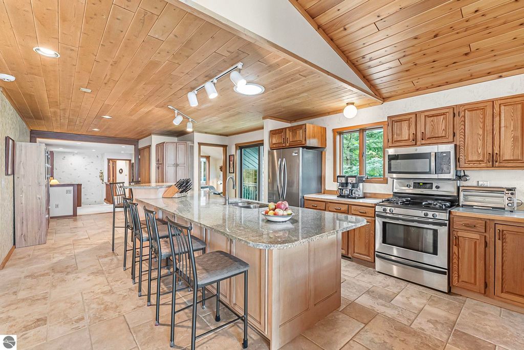 This stunning home along the coveted San Marino Trail in Kewadin"”ideally located between Elk Rapids and Charlevoix"”offers the perfect Up North retreat. Whether used as a primary residence or a vacation getaway, it blends privacy, comfort, and spectacular views of Grand Traverse Bay. Set on gorgeous, pristine frontage and surrounded by hardwoods, the property features expansive decks and outdoor living areas, combining seclusion with breathtaking scenery. Inside, the open design with soaring ceilings and walls of windows brings the outdoors in. The large kitchen flows seamlessly to a spacious living area and dining room, while multiple gathering spaces provide plenty of room for entertaining or relaxing. The thoughtful layout includes 2 main-floor bedrooms, four baths, and office space or potential for five bedrooms if needed. The lower level has a large living area with laundry and 2 additional bedrooms. A designated space for a future elevator supports aging in place, and a whole-house generator ensures peace of mind during inclement weather. This home truly has it all: stunning views, flexible living spaces, and an unbeatable location. Don't miss this rare opportunity.
