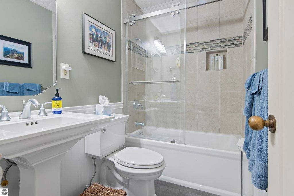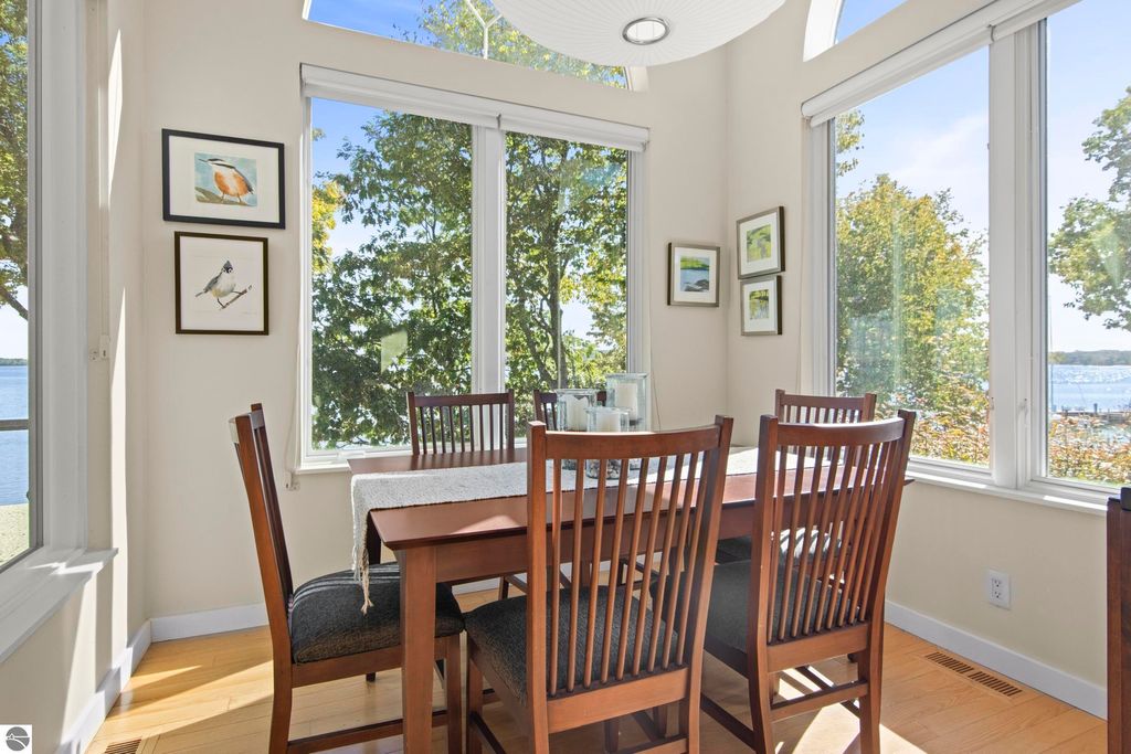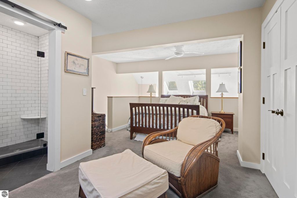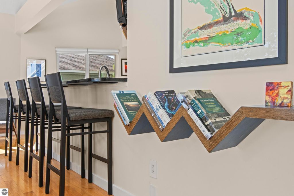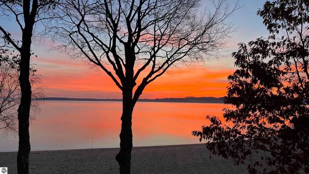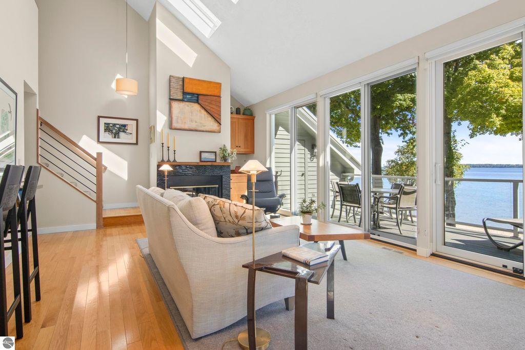 Suttons Bay Yacht Club condo directly on the Bay! Dramatic sunrise views over this wide sugar sand beach will stir your soul in this desirable location north of the NEW enlarged pool & outdoor patio area w/new furniture + updated clubhouse in full renovation mode. The artistic year-round seller has fully renovated this custom 3 bedroom, 3 bath unit (includes 2 ensuites) with updated wood floors, granite countertops, gas stove, custom & updated cabinetry, gas f/p, newer deck / railings, windows, doors, furnace, & AC from 2021-25, + a finished garage w/ storage above, + new epoxy floor this year! The amenities are simply the best with a marina where owners come first on boat slips, tennis courts, a fish & release pond,Trail Access, & all within walking distance to the Village for endless entertaining, dining, and shopping. Bring your boats, kayaks, bikes & enjoy what Suttons Bay is all about with amazing neighbors!