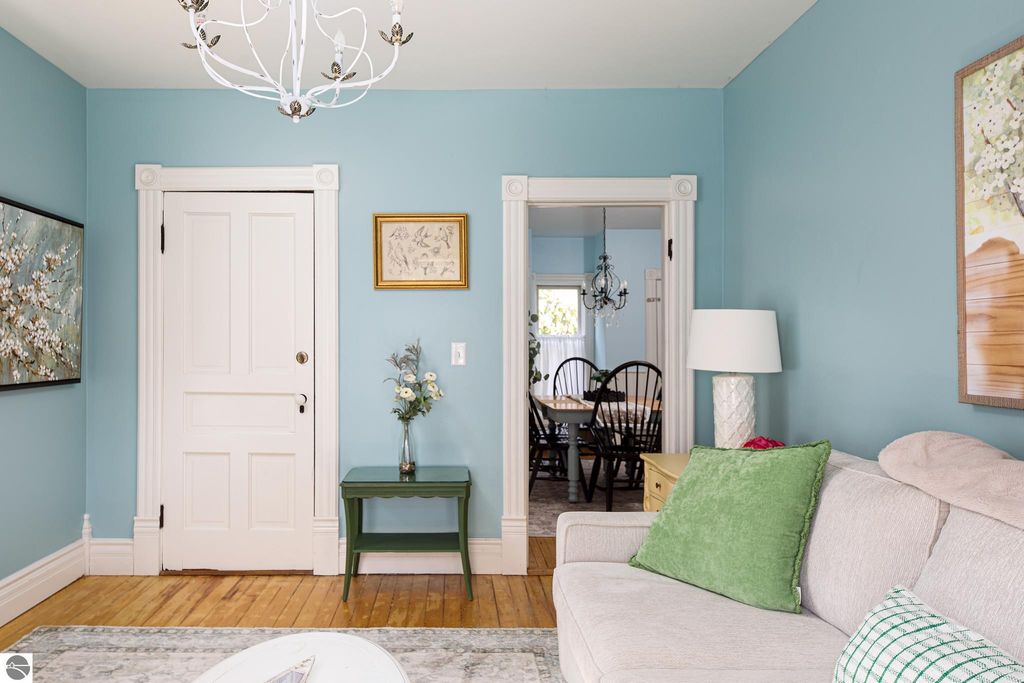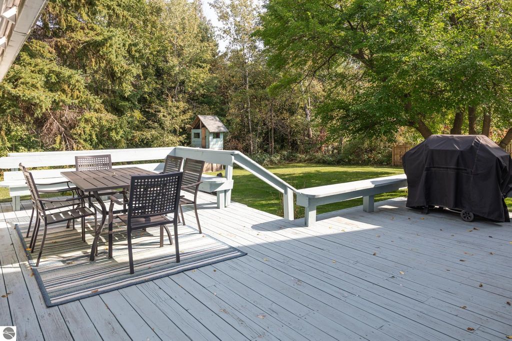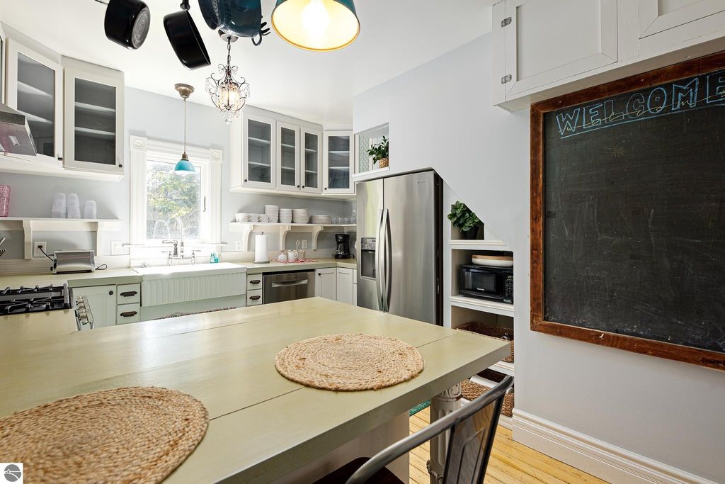 Idyllic farmhouse in Suttons Bay with direct access to the TART trail! This inviting 2-bed, 2-bath farmhouse sits on a full acre of open, park-like grounds with direct access to the Leelanau Trail via a private wooden deck path. Inside, you'll find roughly 1,300 sq ft of character and comfort"”beautiful hardwood floors, a bright kitchen with modern updates, and cozy living spaces filled with natural light. Outside, enjoy a two-car detached garage, fire-pit area, and mature shade trees offering privacy and space to relax. Perfectly located just 5 minutes from downtown Suttons Bay and only a half-mile from Bahle Farms Golf Course, this property combines countryside charm with convenience to Leelanau's best recreation, wineries, and waterfront. A rare opportunity to own a piece of Leelanau with trail access right out your back door. Listing data, supplemental documents have all been obtained from third-party sources and/or the seller. Information is deemed reliable but cannot be guaranteed for its accuracy. Buyer and/or its agent should verify before closing.