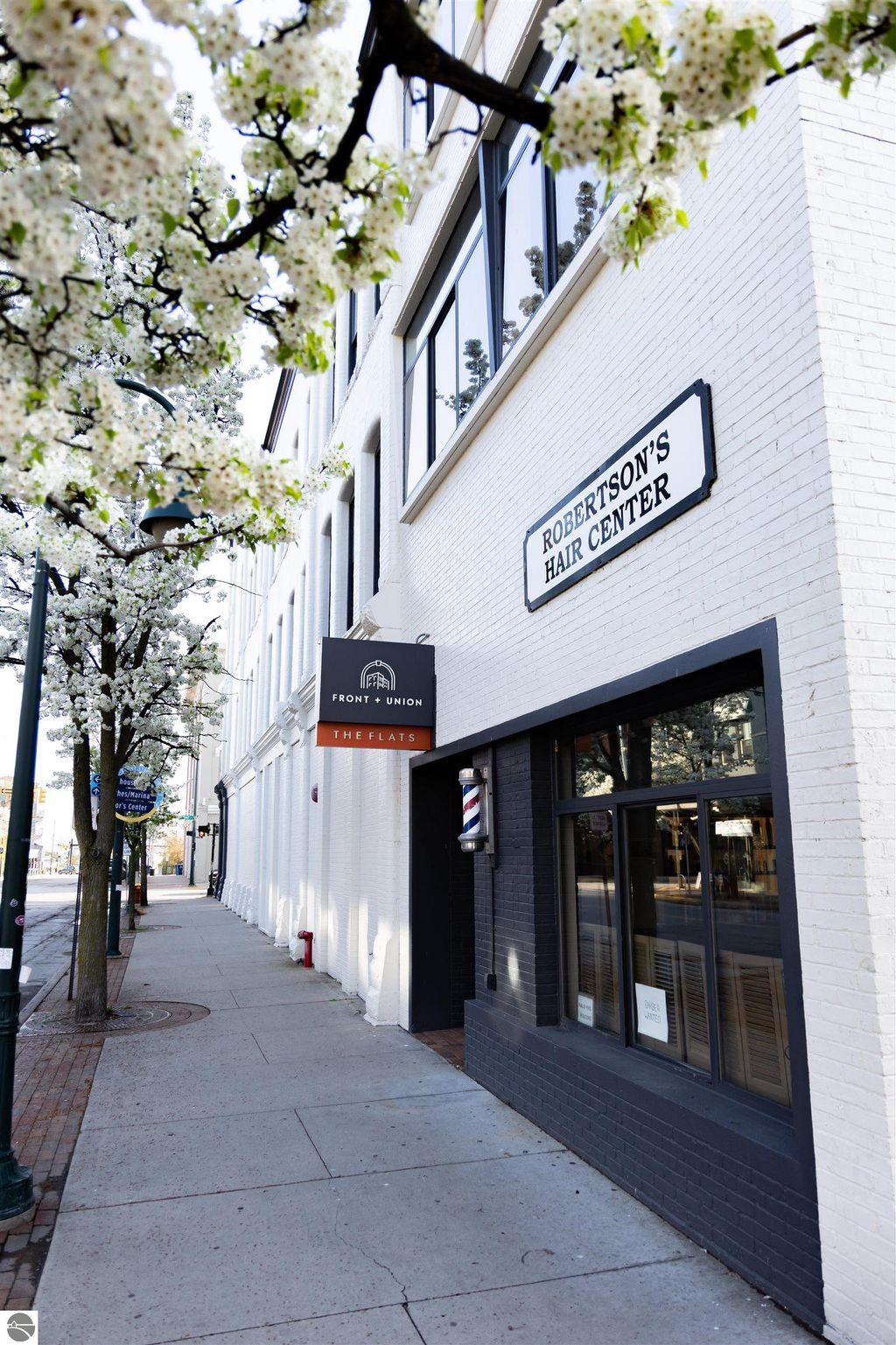 Introducing The Flats at Front + Union, a rare collection of seven residences nestled within the historic building at 100 East Front St, one of Traverse City's most iconic corners. Each flat has been thoughtfully designed to honor the history and character of the building while blending in the comfort of modern luxury and an unmistakable urban feel. These beautiful flats range from spacious 2-bedroom, 2-bath to 3-bedroom, 3-bath layouts, including two stunning corner signature flats. These special corner flats boast dramatic floor-to-ceiling windows, capturing light and views of west bay and the perfect vantage point to take in the heartbeat of downtown living. This collection is a rare opportunity in Traverse City offering elevator access to your floor, a leased private parking space right outside the building and a "coming soon" rooftop oasis. The over 3,000 square foot rooftop, designed by Environment Architects lead Ray Kendra will have private lounge spaces, an indoor/outdoor entertaining and cocktail kitchen and grilling stations "” all designed with unforgettable views. The Flats are modern simplicity at its best, six of the seven appointed spaces are being sold fully furnished "” right down to the furniture and bedding "” making them an effortless turnkey opportunity. The limited number inside this historic building will keep your investment strong while giving you peace of mind to lock and leave knowing the building is well cared for. Three thoughtfully designed entry points "” from the private parking area, Front Street, and Union Street "” provide convenient access for owners. Situated in the heart of downtown, The Flats at Front + Union are just steps from everything Traverse City has to offer. This 2023 complete renovation in one of Traverse City's most historic buildings was curated by a local family, designed by renowned local architect firm, Environment Architects and built to perfection by local contractors.