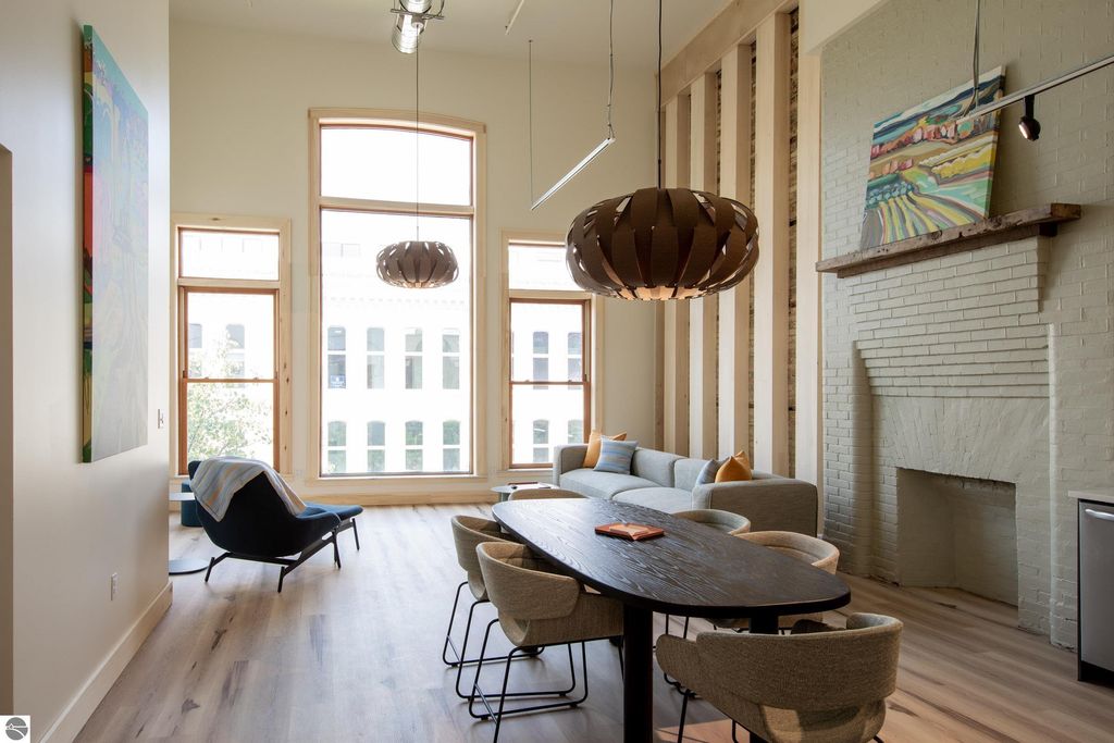 Introducing The Flats at Front + Union, a rare collection of seven residences nestled within the historic building at 100 East Front St, one of Traverse City's most iconic corners. Each flat has been thoughtfully designed to honor the history and character of the building while blending in the comfort of modern luxury and an unmistakable urban feel. These beautiful flats range from spacious 2-bedroom, 2-bath to 3-bedroom, 3-bath layouts, including two stunning corner signature flats. These special corner flats boast dramatic floor-to-ceiling windows, capturing light and views of west bay and the perfect vantage point to take in the heartbeat of downtown living. This collection is a rare opportunity in Traverse City offering elevator access to your floor, a leased private parking space right outside the building and a "coming soon" rooftop oasis. The over 3,000 square foot rooftop, designed by Environment Architects lead Ray Kendra will have private lounge spaces, an indoor/outdoor entertaining and cocktail kitchen and grilling stations "” all designed with unforgettable views. The Flats are modern simplicity at its best, six of the seven appointed spaces are being sold fully furnished "” right down to the furniture and bedding "” making them an effortless turnkey opportunity. The limited number inside this historic building will keep your investment strong while giving you peace of mind to lock and leave knowing the building is well cared for. Three thoughtfully designed entry points "” from the private parking area, Front Street, and Union Street "” provide convenient access for owners. Situated in the heart of downtown, The Flats at Front + Union are just steps from everything Traverse City has to offer. This 2023 complete renovation in one of Traverse City's most historic buildings was curated by a local family, designed by renowned local architect firm, Environment Architects and built to perfection by local contractors.