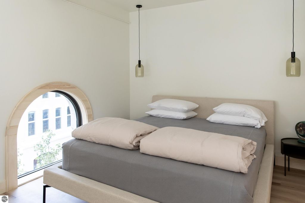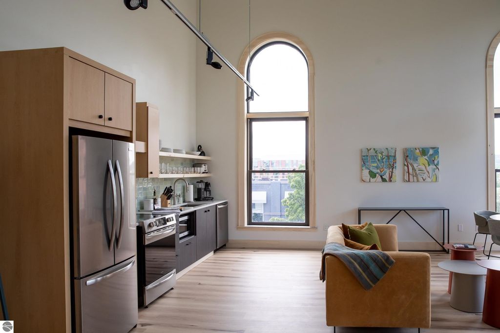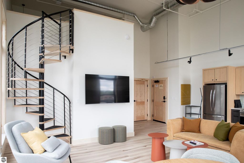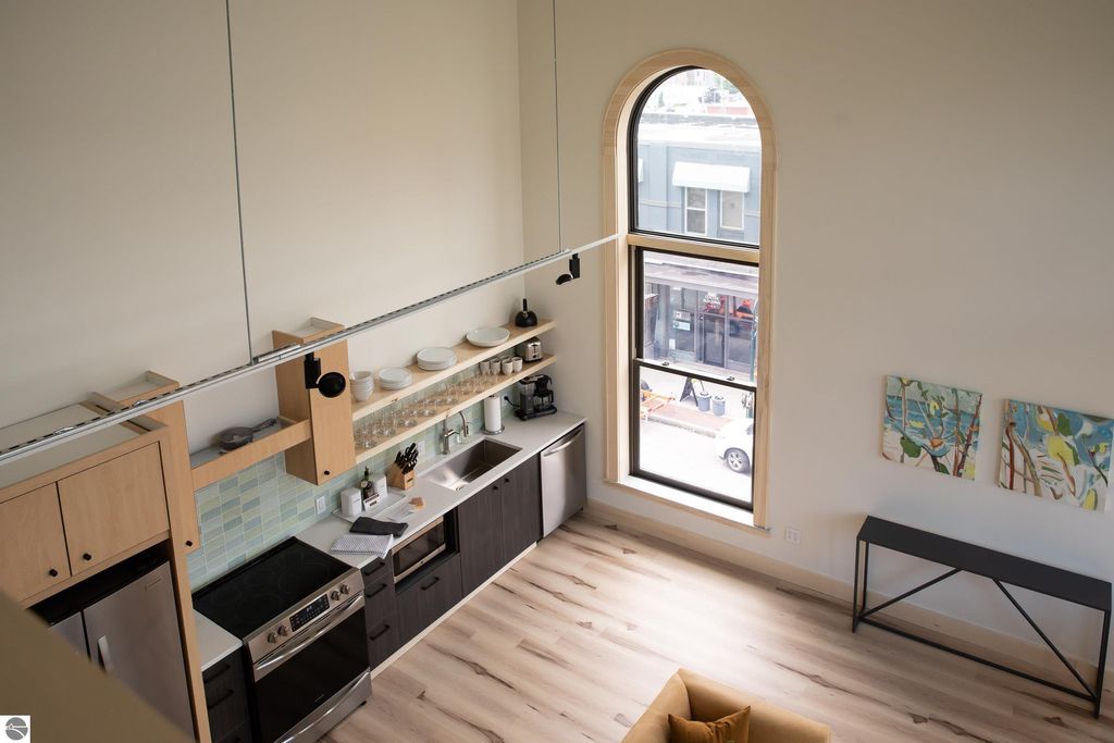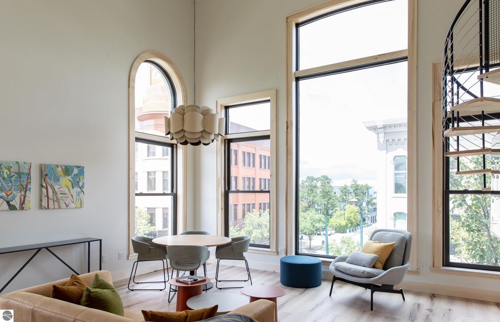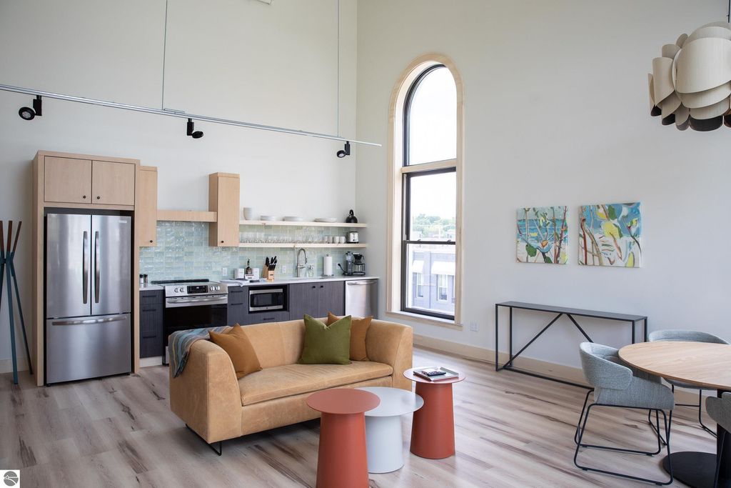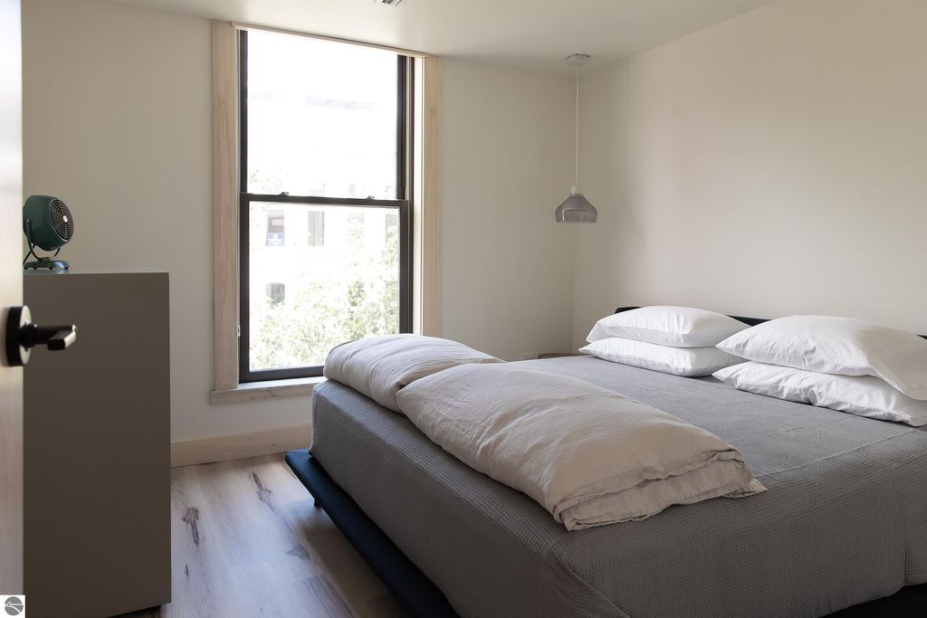 Introducing The Flats at Front + Union, a rare collection of seven residences nestled within the historic building at 100 East Front St, one of Traverse City's most iconic corners. Each flat has been thoughtfully designed to honor the history and character of the building while blending in the comfort of modern luxury and an unmistakable urban feel. These beautiful flats range from spacious 2-bedroom, 2-bath to 3-bedroom, 3-bath layouts, including two stunning corner signature flats. These special corner flats boast dramatic floor-to-ceiling windows, capturing light and views of west bay and the perfect vantage point to take in the heartbeat of downtown living. This collection is a rare opportunity in Traverse City offering elevator access to your floor, a leased private parking space right outside the building and a "coming soon" rooftop oasis. The over 3,000 square foot rooftop, designed by Environment Architects lead Ray Kendra will have private lounge spaces, an indoor/outdoor entertaining and cocktail kitchen and grilling stations "” all designed with unforgettable views. The Flats are modern simplicity at its best, six of the seven appointed spaces are being sold fully furnished "” right down to the furniture and bedding "” making them an effortless turnkey opportunity. The limited number inside this historic building will keep your investment strong while giving you peace of mind to lock and leave knowing the building is well cared for. Three thoughtfully designed entry points "” from the private parking area, Front Street, and Union Street "” provide convenient access for owners. Situated in the heart of downtown, The Flats at Front + Union are just steps from everything Traverse City has to offer. This 2023 complete renovation in one of Traverse City's most historic buildings was curated by a local family, designed by renowned local architect firm, Environment Architects and built to perfection by local contractors.