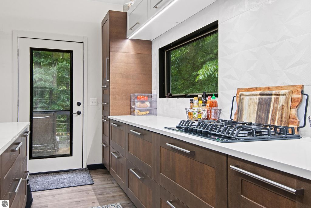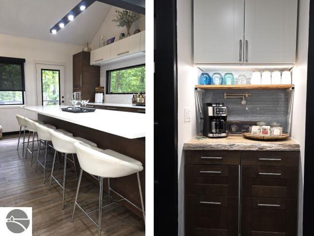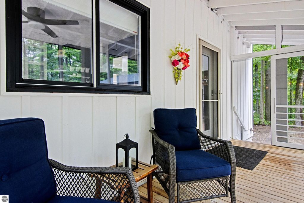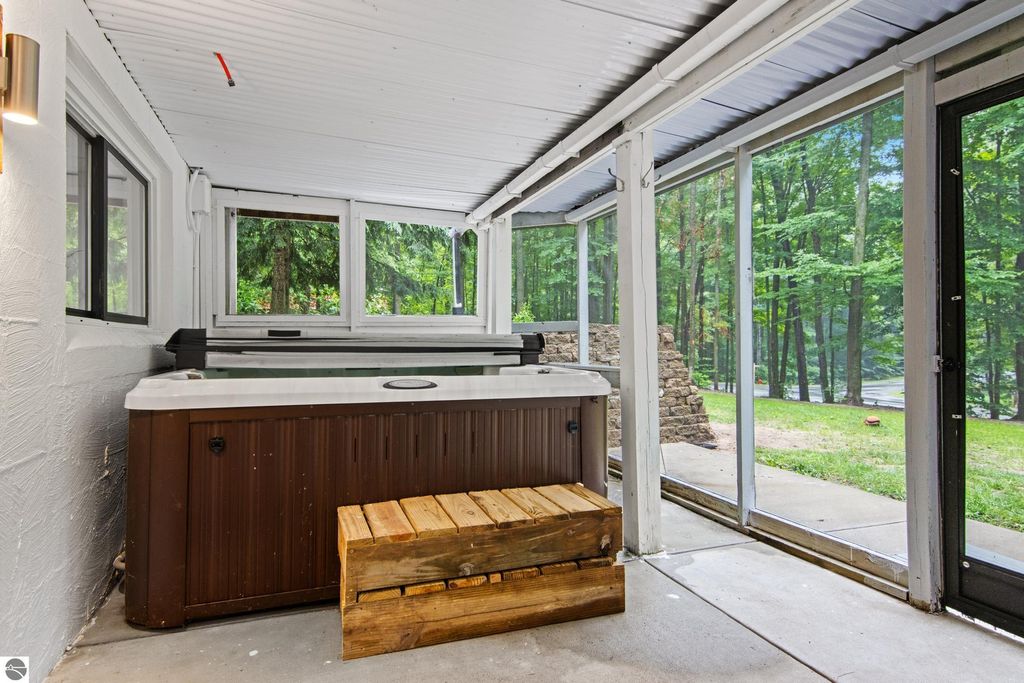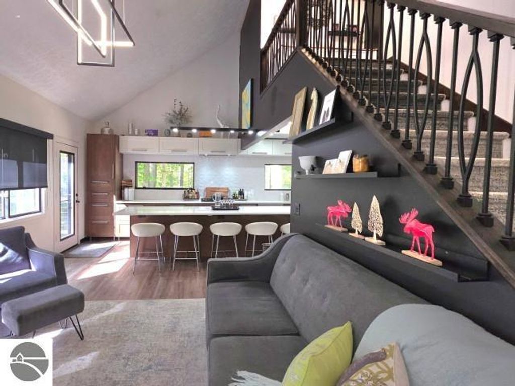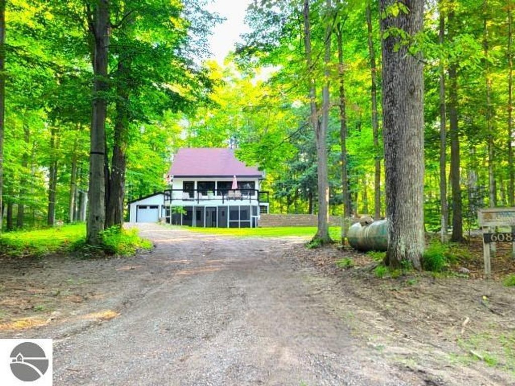 Winter is almost here, and this furnished, short-term rental-friendly home is just a few minutes' walk from the ski easement at the top of Schuss Mountain. Here you'll find a gorgeous kitchen with 10.5 foot island, new appliances, beverage station w/ dedicated water line plus main floor living room, bedroom, and full bath. Two bedrooms and beautiful new bathroom up stairs. After a long day on the mountain, there's nothing better than a hot shower or a soak in the hot tub, and with the efficient on-demand hot water system, you'll never have to worry about running out. The lower level hosts a fourth non-conforming bedroom, family room, laundry, and plenty of storage. Enjoy your days on the deck and your evenings by the fire pit! Spread over two parcels, the wooded area behind the home is great for exploring and has a forged path to Cedar River Village. You are close to local towns, lakes and all you love about northern Michigan. The northern lights feel closer here, and the ski easement at the top of Schuss Mountain is within walking distance. With convenient access to skiing and five golf courses, this will satisfy your thirst for a cozy northern retreat.