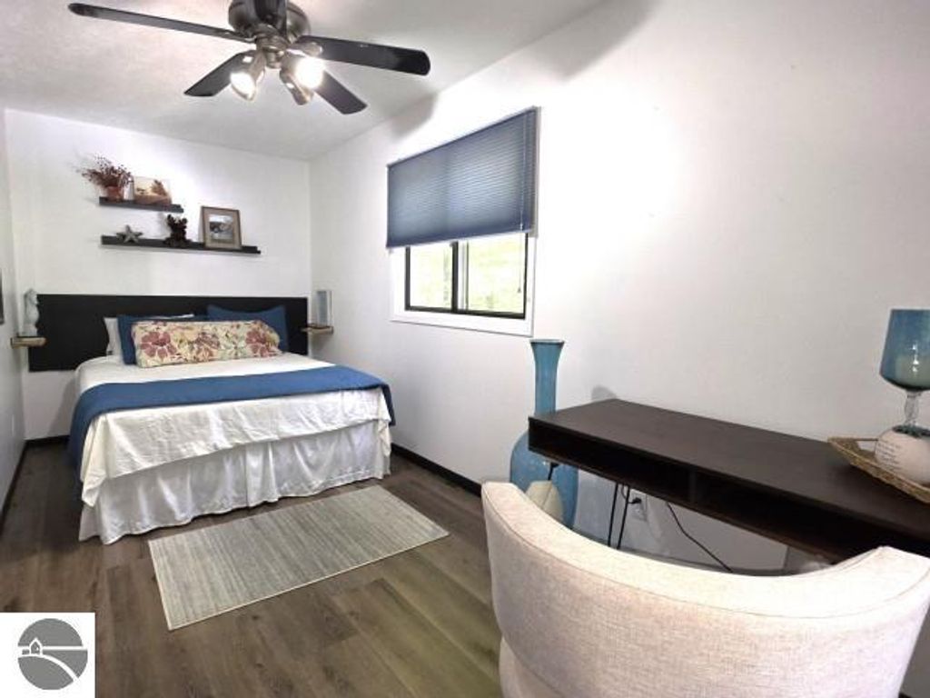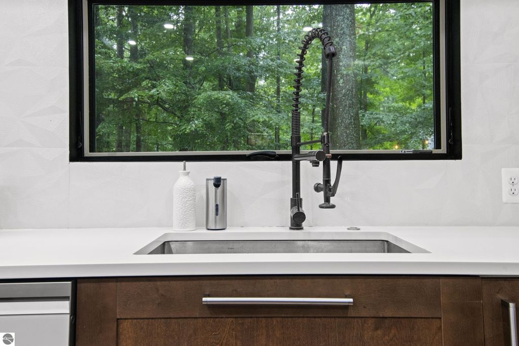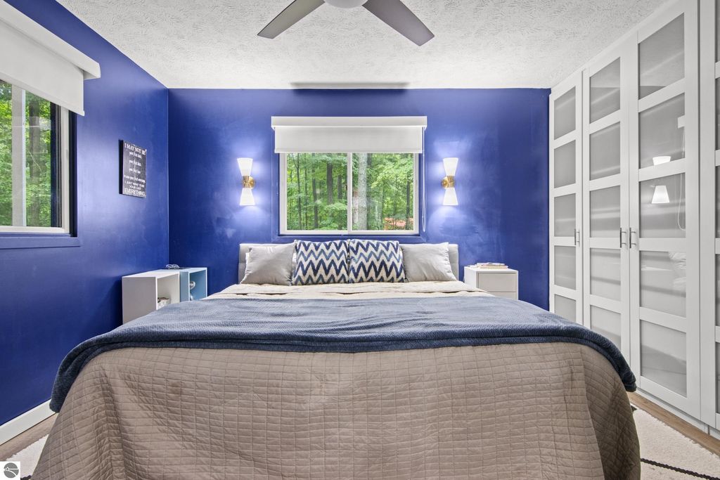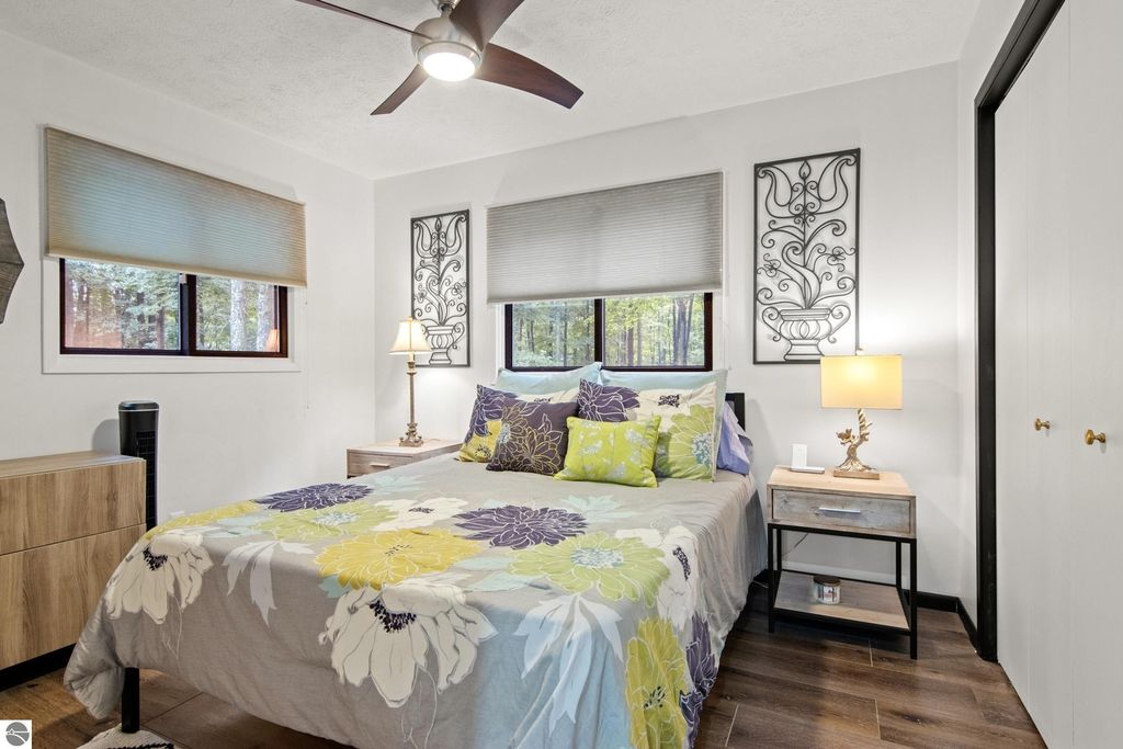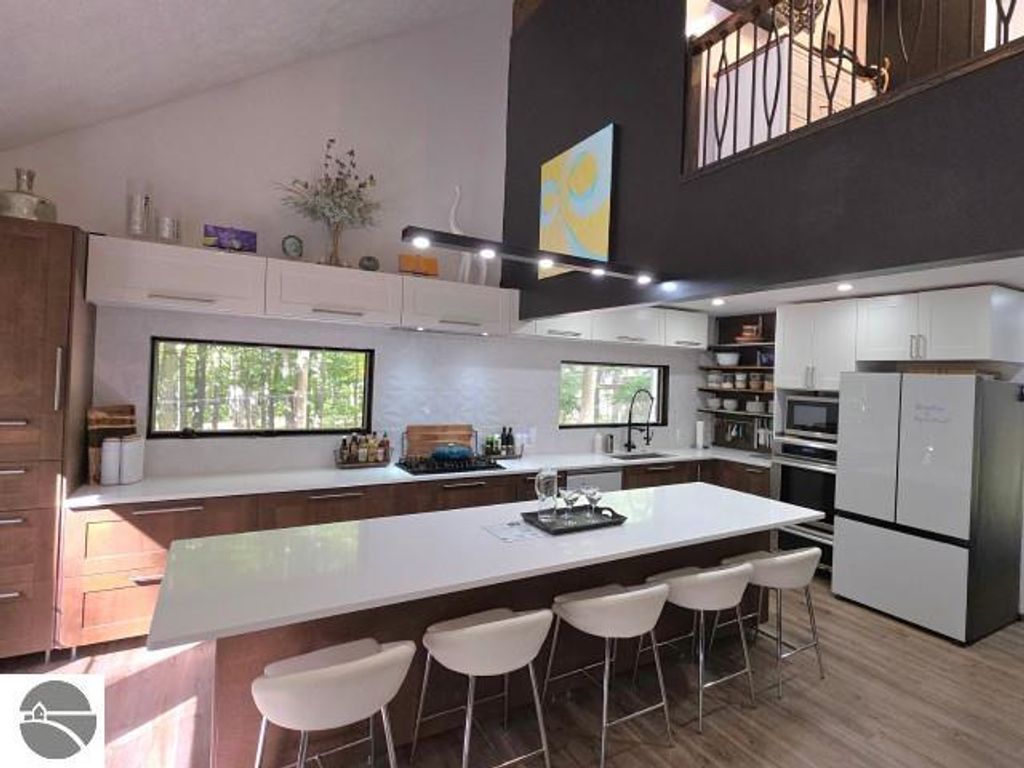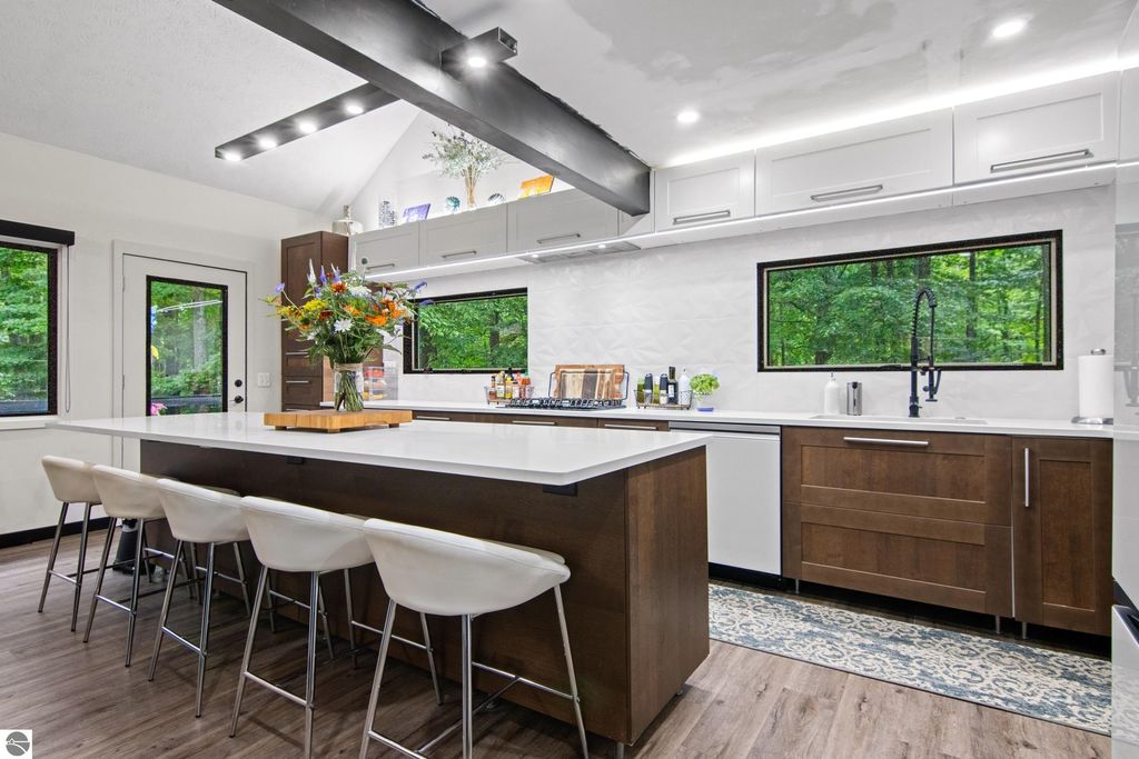 Winter is almost here, and this furnished, short-term rental-friendly home is just a few minutes' walk from the ski easement at the top of Schuss Mountain. Here you'll find a gorgeous kitchen with 10.5 foot island, new appliances, beverage station w/ dedicated water line plus main floor living room, bedroom, and full bath. Two bedrooms and beautiful new bathroom up stairs. After a long day on the mountain, there's nothing better than a hot shower or a soak in the hot tub, and with the efficient on-demand hot water system, you'll never have to worry about running out. The lower level hosts a fourth non-conforming bedroom, family room, laundry, and plenty of storage. Enjoy your days on the deck and your evenings by the fire pit! Spread over two parcels, the wooded area behind the home is great for exploring and has a forged path to Cedar River Village. You are close to local towns, lakes and all you love about northern Michigan. The northern lights feel closer here, and the ski easement at the top of Schuss Mountain is within walking distance. With convenient access to skiing and five golf courses, this will satisfy your thirst for a cozy northern retreat.