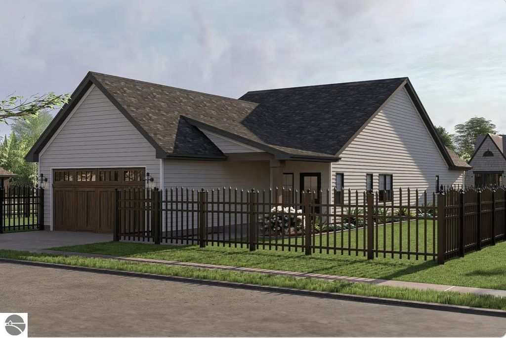 Welcome to the picturesque community of Bahia Vista in Traverse City, MI. This new construction single-level home, to be built by Great Lakes Authority, will offer 3 bedrooms, 2 bathrooms, and a 2-car attached garage. The open-concept design centers around a spacious kitchen with a large island and quartz countertops, seamlessly connected to the dining area and great room. A covered porch extends your living space outdoors, while a mudroom and laundry room conveniently sit just off the garage entry. This wooded 0.81-acre parcel is part of a thoughtfully planned neighborhood with homesites ranging from 0.74 to 1.20 acres and 9 acres of shared common greenspace. Protective building standards preserve the beauty of the community and ensure lasting value. Located just minutes from downtown Traverse City, West Bay beaches, marinas, and wineries, Bahia Vista offers a rare blend of peaceful living and unmatched convenience. Here, you'll find the perfect balance of modern amenities, natural surroundings, and vibrant Up North charm.