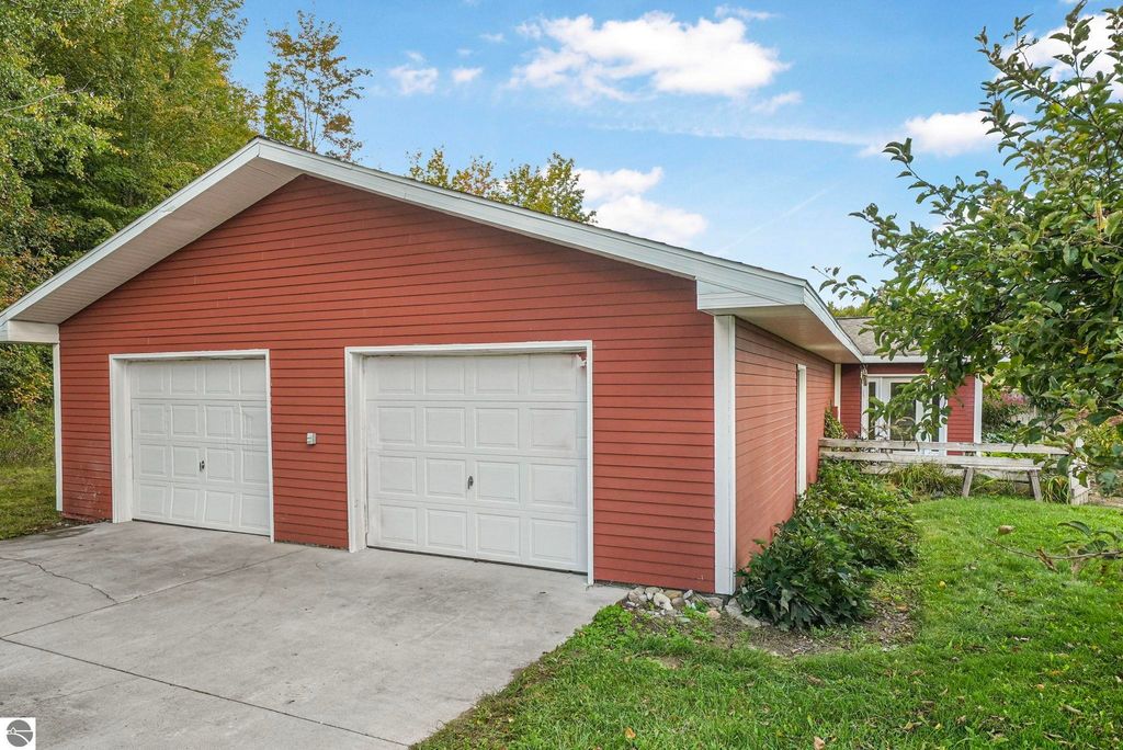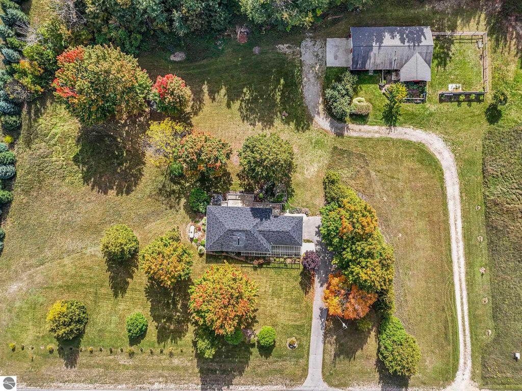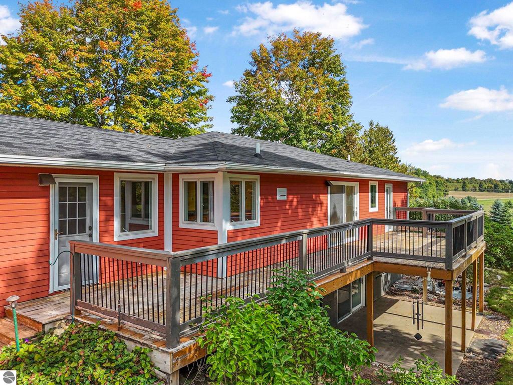Take in all that Pure Leelanau County has to offer in this country oasis. Beautiful 1 story home situated on 6.8 acres. Home takes advantage of the natural surroundings, featuring a bright semi open concept floor plan. Spacious front patio with pergola & large rear deck. Hardwood flooring flows through main floor living areas. Dining area with large slider lets in nice country side views. Main floor primary with walk in closet and 2 way fireplace. Full walk-out lower level with finished family room. Additional second garage features 29'x29' garage bay and additional finished space. Enjoy all the peacefulness & tranquility found in this great setting yet only short drive to downtown Sutton's Bay and all the beauty of Leelanau County.