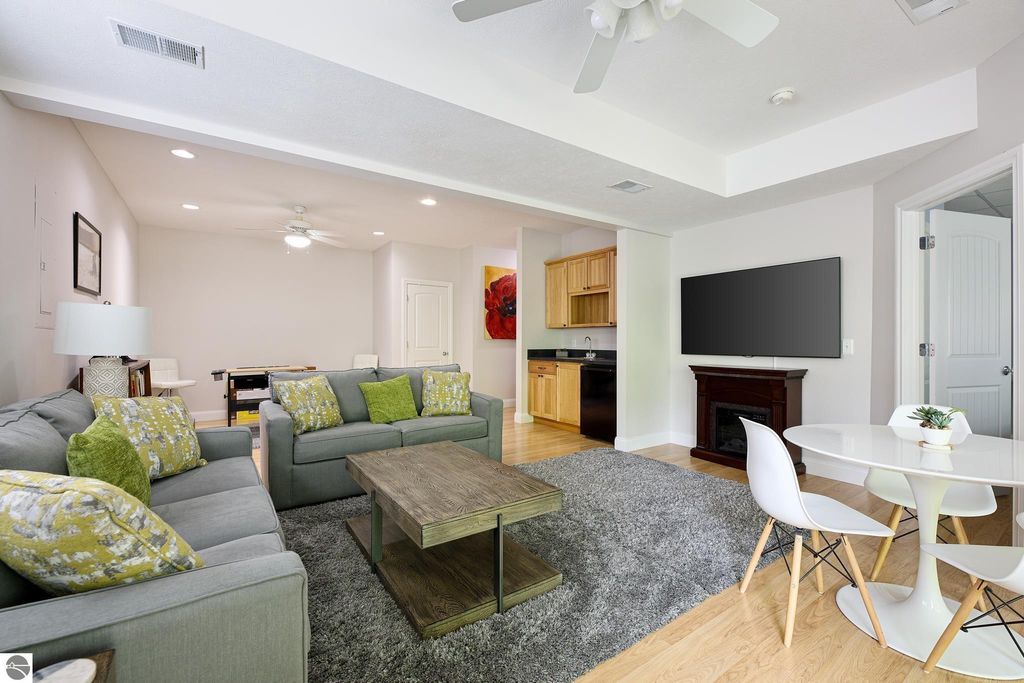 Welcome to Morgan Farms, Traverse City's highly desirable private communities! Beautifully maintained 3 bedroom, 3.5 bath home with a location that has so much to offer. Situated right at the base of the Leelanau Peninsula and just two miles from downtown Traverse City. Features include a spacious primary en-suite with a walk-in closet located on the upper level, huge fully finished walkout lower level with a bedroom and full bath, family room with a wet bar for entertaining that walks out to a beautifully wooded private patio. Well appointed kitchen with stainless appliances and granite countertops. a spacious dining and living room with a 2 sided gas fireplace. Carefree living, the HOA maintains the lawn, weeding, scrub trimming, snow removal including driveway and walkway to the front door. A quiet serene neighborhood with sidewalks and trails. Enjoy easy access to the T.A.R.T Trails, dining, Elmwood Township Marina, West Grand Traverse Bay Beaches and wineries. Morgan Farms isn't just a neighborhood, it is a Lifestyle!