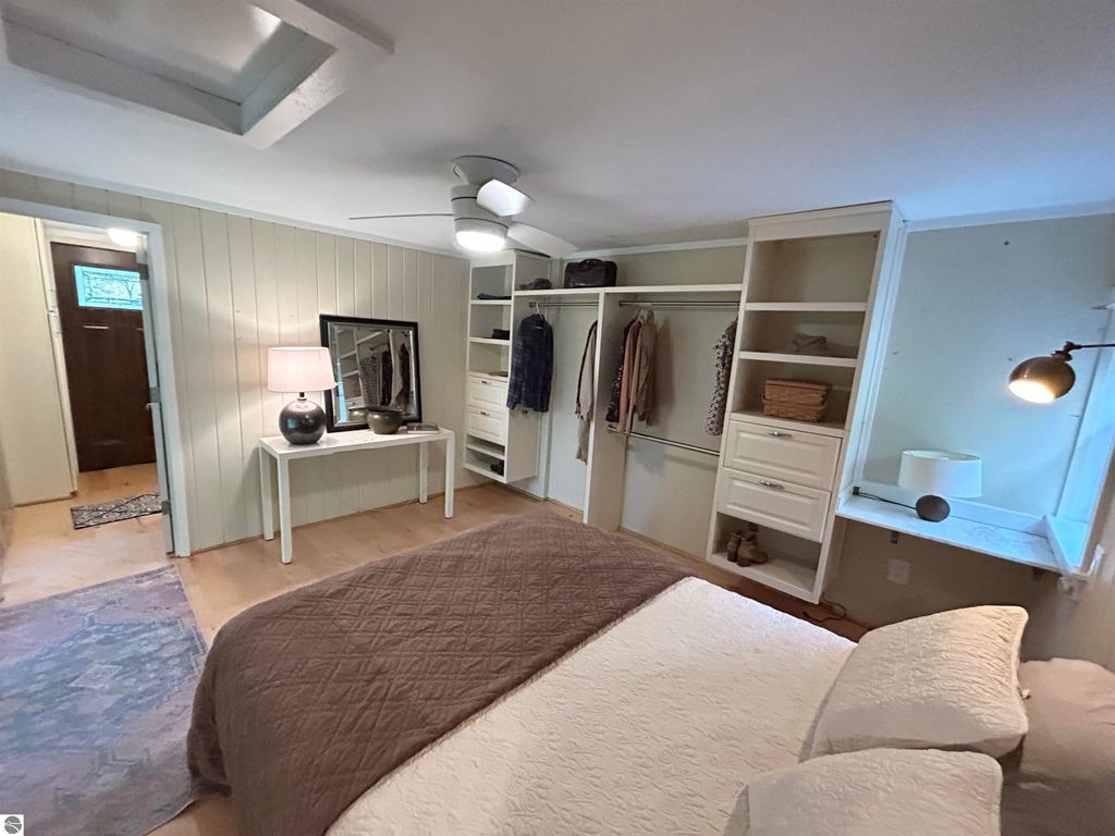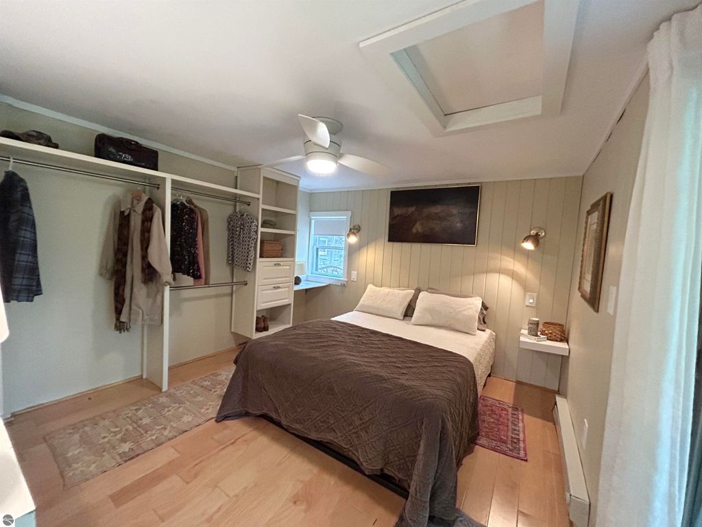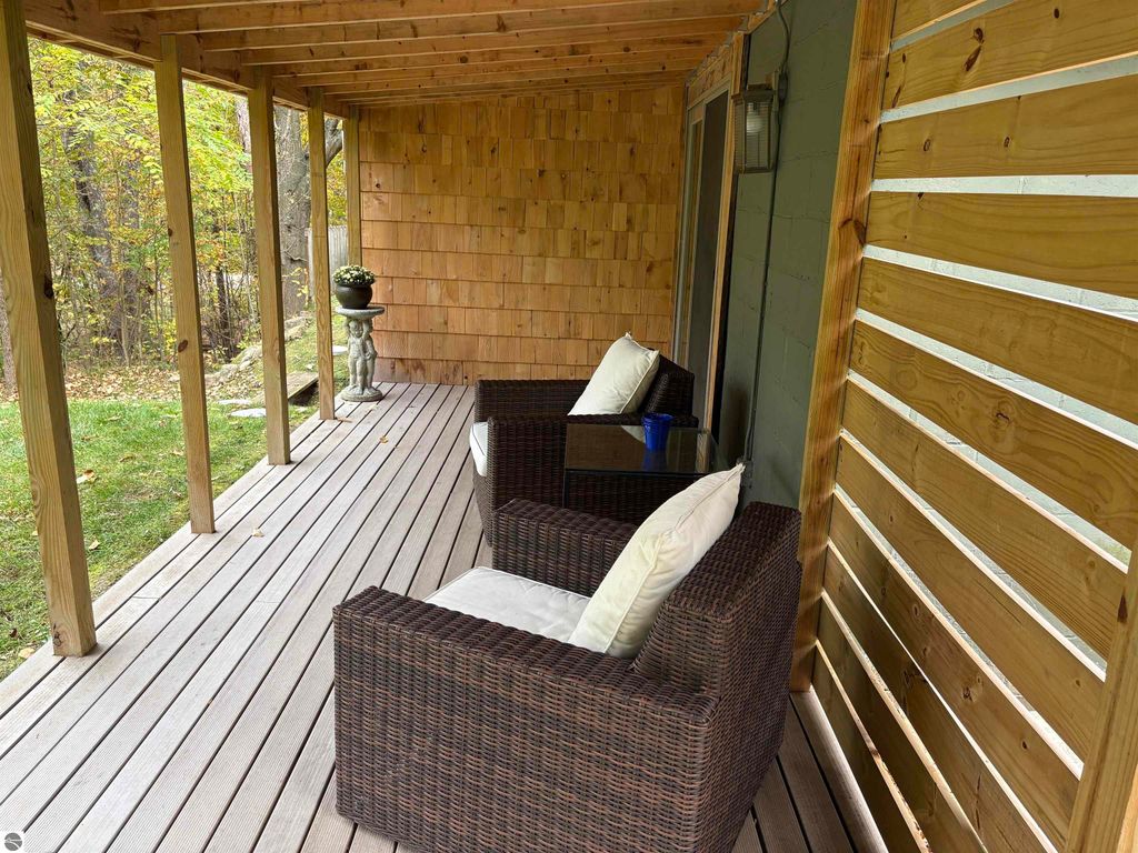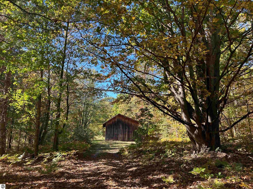 Welcome to your own private slice of Northern Michigan paradise! This beautifully updated 1-bedroom, 1-bath home is nestled on over 8 serene acres, ideal for anyone who loves the outdoors, dreams of homesteading, or simply wants room to breathe. Step inside to discover stylish updates throughout, including engineered maple floors, granite countertops, brand-new cabinetry, modern light fixtures, and updated appliances. The bathroom features a stunning tile and stone shower, offering a spa-like touch. Outside, the property truly shines. The large barn provides endless possibilities, great for a maker's space, woodworking, art, gardening, tinkering, or storing your outdoor equipment. A garden shed with electricity sits nearby the house, ready to be your potting station or cozy crafting retreat. The smaller outbuilding, previously used as an office, could easily serve as storage, a chicken coop, or even a creative studio. The open lean-to has possibilities also. Root Cellar...Yes Please! Spend peaceful mornings watching the sunrise over the barn, or quiet evenings relaxing under the covered porch, surrounded by the sounds of nature. In the winter months, enjoy cross-country skiing, snowshoeing, or snowmobiling, right on your own property or nearby trails. Enjoy the peaceful setting with views of the river's edge from the parcel, just south of Hooker Road. Whether you're seeking a weekend getaway or a full-time homestead, this property offers the perfect balance of modern comfort and country charm. This property boasts a rustic setting, yet offers modern amenities for year-round living. This home is located just minutes away from the well-known Cherry Bowl Drive-In, approximately 15 minutes from the Sleeping Bear National Lakeshore, 5 minutes to the public access on Little Platte Lake and the Medenbrook Nature Preserve, 30+ minutes from Traverse City, 20 minutes from Frankfort, and more.