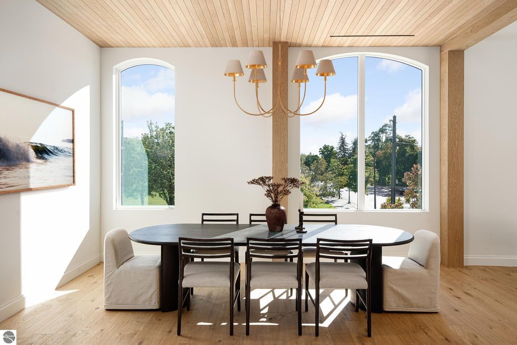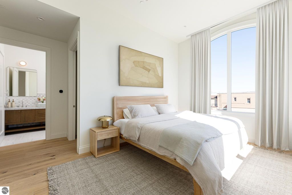 Unparalleled downtown Traverse City living, designed and built by Freshwater Development for an elevated Northern Michigan lifestyle. Delivered furnished and move-in ready, Penthouse B at 111 State Street is a 4 bed + office, full-floor residence with a private elevator that opens directly into the home and continues to a private rooftop terrace with expansive water and city views. White-oak flooring, natural marble, 10-foot ceilings, and oversized casement windows frame views of Rotary Square Park and fill the home with natural light from multiple exposures. The kitchen features Taj Mahal marble countertops and backsplash, full-height custom cabinetry, detailed millwork, integrated Miele appliances, and generous dining space ideal for entertaining. Advanced soundproofing, double-pane windows, and a whole-home air purification system ensure serene interior quiet, exceptional air quality, and energy efficiency. The climate-controlled private garage includes oversized doors, EV charging, and the option to add a lift for two cars. The private rooftop terrace expands the living experience outdoors, complete with a custom pergola and the option to integrate an outdoor kitchen, sauna, and cold plunge. Located two blocks from Clinch Marina and the beach, steps from restaurants, shopping, and trailheads, this home combines urban convenience with waterfront proximity and access to nature. Built with meticulous attention to detail and supported by Freshwater Development's signature white-glove service long after closing, this residence delivers an unmatched level of quality and design in Northern Michigan.