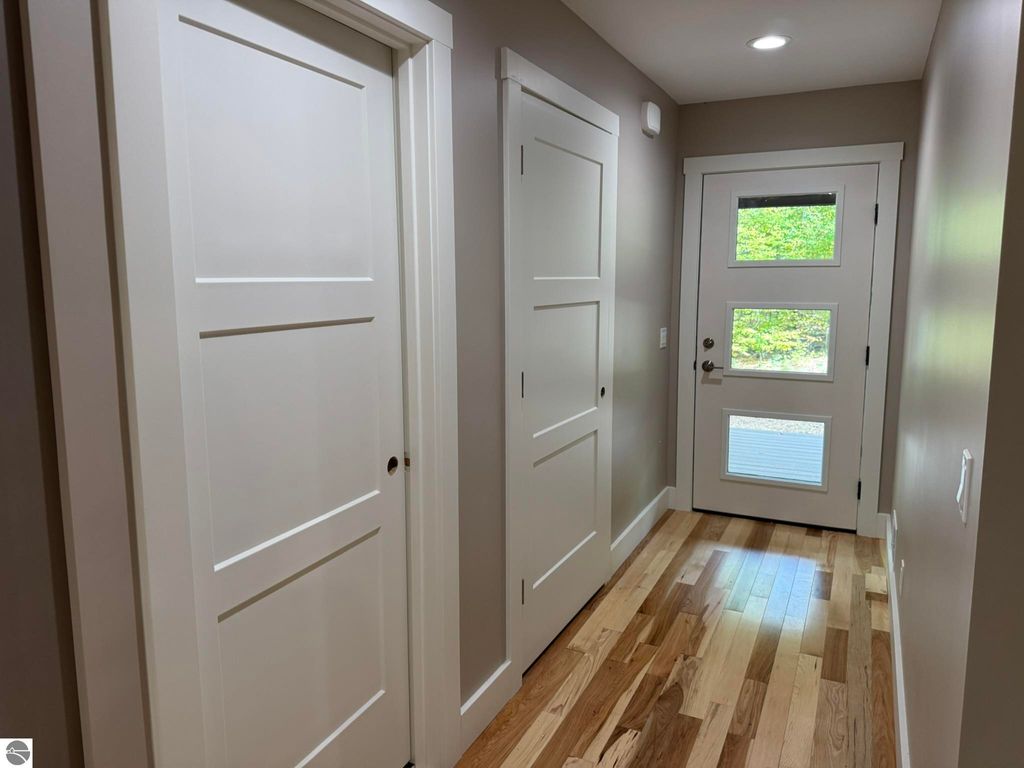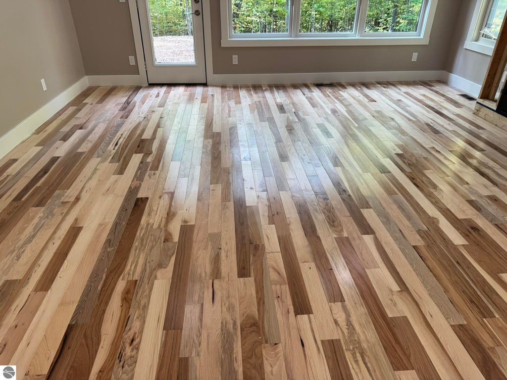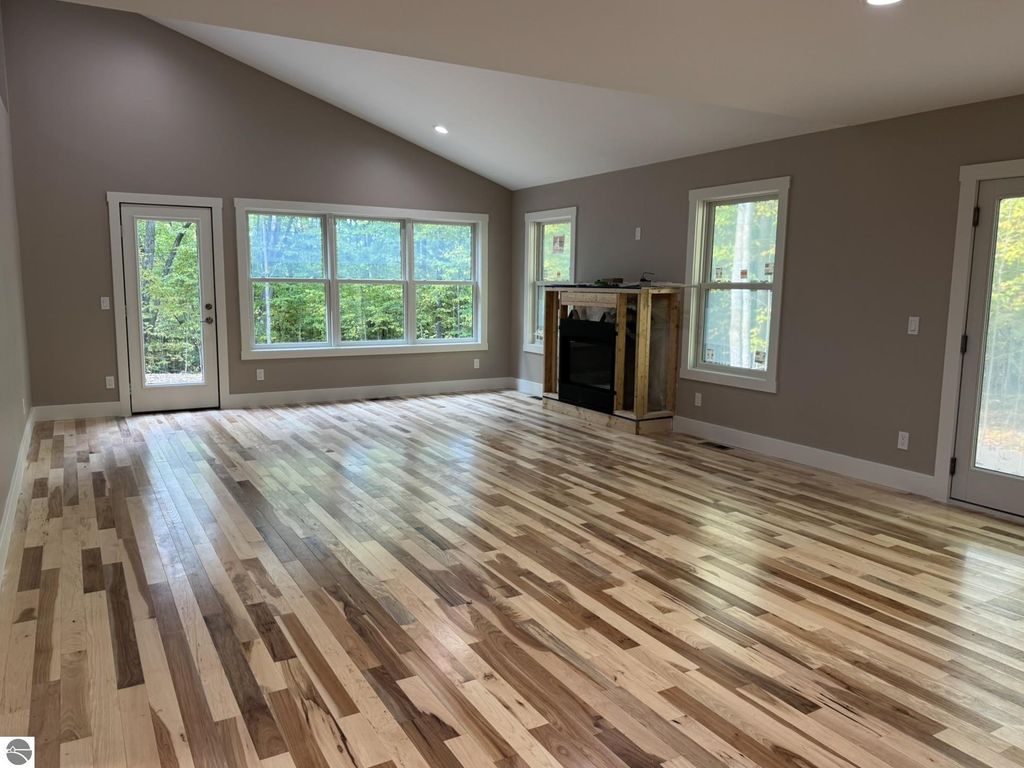 Tucked in the rolling hills of Northern Michigan, in the prestigious Hawks Eye Golf Course Association in Bellaire. This brand new 3 bedroom, 2 bath modern home offers 1700 sqft of living space. A comprehensive space that is perfect for weekend escapes or year-round living. Cathedral ceilings and abundant windows focus on serene views of the surrounding hardwoods. Rich natural hickory hardwood floors bring warmth and character throughout the kitchen, living area and foyer. While a gas fireplace adds the perfect finishing touch after a day of outdoor recreation. Situated at the center of the home, the stylish and modern kitchen featuring quartz countertops, custom maple cabinetry, a center island with breakfast bar. Full view French doors create a seamless indoor-outdoor flow to the side deck ideal for grilling and dining. The primary suite is quietly tucked at the back with a peaceful backyard view, a walk-in closet and access to the laundry. The spacious private bath features a marble walk in shower with custom shelving. Two additional bedrooms are located on the opposite end of the home, both with large windows and closets. Guests share the full bathroom with a tub and shower. Upstairs, a bonus room showcases the living room below. The large picture and egress windows overlooking the forest offers flexible space for a home office, media room, playroom or other use. Outside, a designated fire pit area sets the stage for fun filled s'mores nights with family & friends gatherings. The covered front porch is the perfect place for coffee and welcoming guests in. The attached drywalled two car garage and paved driveway, makes it is easy to store your toys and recreation equipment. The Bellaire area is an outdoor lover's paradise, just minutes to the clubhouse for use of the pool. A short drive to Shanty Creek and Schuss Mt. ski & golf resorts, Lake Bellaire, Torch Lk, Glacier Hills or the quaint village of Bellaire for shopping and dining.