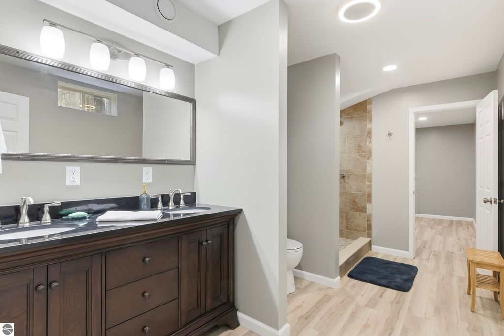 Wow! New, New, New! This contemporary and spacious two story, raised ranch features 4 bedrooms, 3 bathrooms, high speed internet and is situated on 3 acres just 4 miles south of East Jordan and the South Arm of Lake Charlevoix! This may just be the property you have been waiting for. The home is virtually a new build. The original footprint was used, however, it features completely remodeled spaces: 1. New metal roof and siding provide a contemporary look and ease of maintenance; 2. New luxury vinyl plank flooring enhances the living room, stairways and hallways, creating a modern and cohesive look; 3. Three bedrooms and two beautifully tiled baths are located on the main, walk-up level; and 4. The new kitchen includes granite countertops and GE Stainless Steel Appliances with Slate Matte finish that hides fingerprints for easy care. Ample storage is thoughtfully integrated throughout the home with numerous closets and storage areas. The finished basement adds approximately 1,400 square feet of versatile living space, ideal for entertaining or family gatherings. It includes a spacious family room, a fourth (non-conforming) primary bedroom, a tiled bathroom, storage room and new mechanicals. Outdoor living is enhanced by a back deck perfect for dining al fresco. A completely restored, two story outbuilding provides additional storage and functionality. The property has fruit trees, a generous yard, established plantings, and a creek. Located near Snowmobile and Hiking Trails, Webster Bridge and Rogers Bridge End (Jordan River Accesses for kayaking and fishing), Raven Hill Discovery Center, Cosner Preserve, East Jordan, Boyne City, and more. This property combines comfort, space, and outdoors enjoyment in a peaceful Northern Michigan country setting. All information and measurements are deemed reliable, however; should all be verified by the buyer and/or buyer agent.