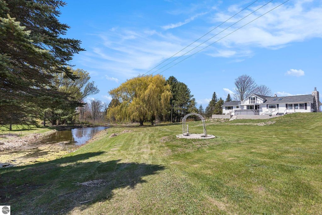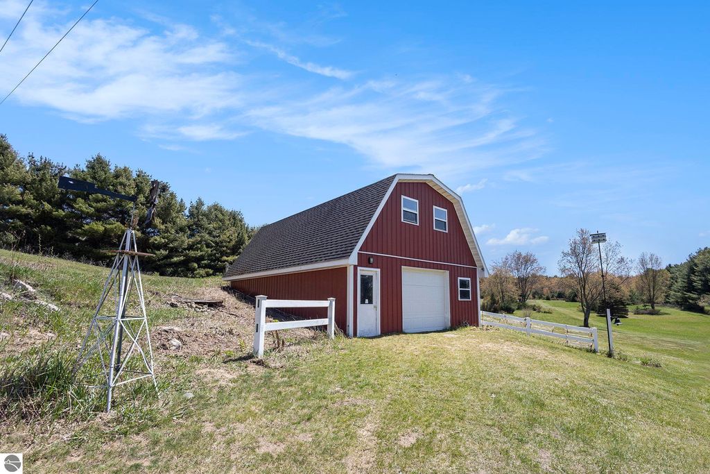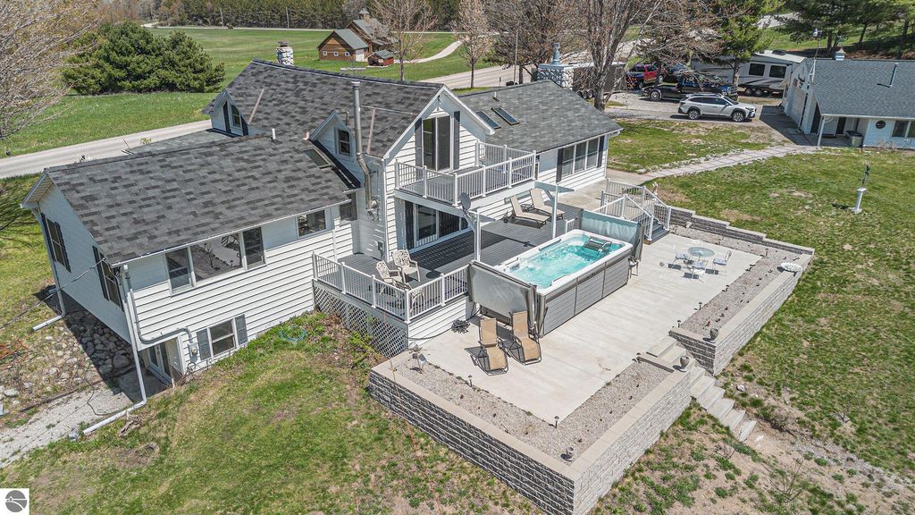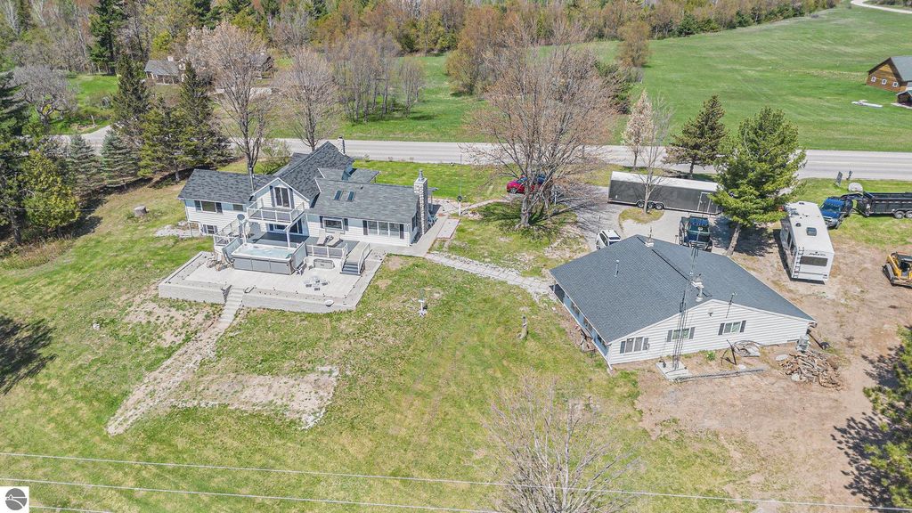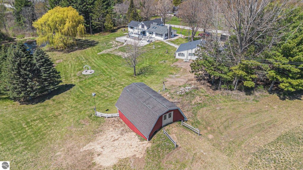Seller motivated -This is an extraordinary home and property with views that are breathtaking and serene. That can only be fully appreciated when you visit this unique residence nestled on 25 picturesque acres of rolling, landscaped woods, white pine groves, and open land suitable for farming, gardening with a shooting range and hunting blinds. The home boasts almost 2,300 square feet of space, which has undergone a complete remodel over the past few years. The kitchen features stunning cabinets and quartz countertops. Bathrooms remodeled. Floors are predominantly hardwood. The living room is equipped with a newer gas fireplace, while the family room houses a high-efficiency wood-burning stove. A charming 12 x 40-foot trex deck extends over the property, 2nd floor balcony, beautiful brick-paver retaining walls and a swim/spa pool. The patio is 21 feet by 45 feet and is reinforced with a 6-inch thick concrete slab. Whole house generator. Master bedroom enjoys an en-suite with walk-in bathtub. Garage is approximately 1,000 sf and is equipped with electricity and natural gas heating. The pole barn boasts a concrete floor and an upper level loft with a private entry door, offering endless possibilities for its use. The property is home to a variety of plants, including raspberry bushes, wild asparagus, mushrooms, and numerous apple trees. With its 25 acres, the property has unlimited potential and possibilities for land splits. It could serve as an ideal family compound or potentially accommodate camping sites or facilitating the development of multiple parcels for building. A picturesque pond is situated on the property, serviced by a second well. The property's features are truly remarkable, and I cannot adequately describe them all. The best way to experience them firsthand is to visit. Please allocate ample time to explore the property thoroughly. An additional attractive feature at the property's end is Grace Road Beach.