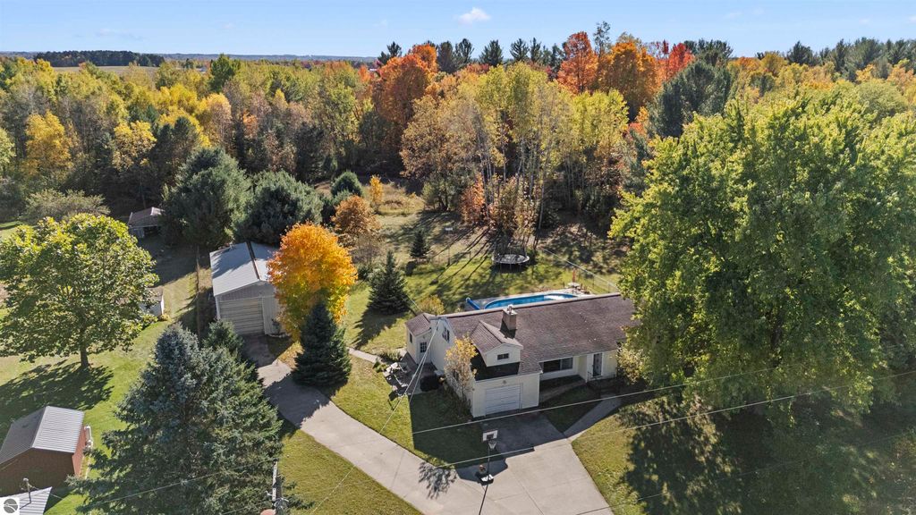 What a Rare Find! Tucked away on a gorgeous 22-acre wooded parcel just north of town, this property offers the perfect blend of comfort, privacy, and recreation! This well-kept 3-bedroom, 2-bath home features a full, partially finished basement complete with a cozy brick fireplace"”perfect for relaxing on cool evenings or entertaining guests. Step outside and enjoy your own backyard oasis with a beautiful in-ground pool surrounded by a spacious concrete patio, ideal for summer gatherings and outdoor fun. The attached 1-car garage adds convenience, while the impressive 24x46 pole barn with 12-foot sidewalls provides ample space for all your equipment, toys, and workshop needs. Whether you're seeking a peaceful home in the woods or a private retreat with room to roam, this property has it all"”beautiful natural surroundings, great amenities, and a convenient location close to town.