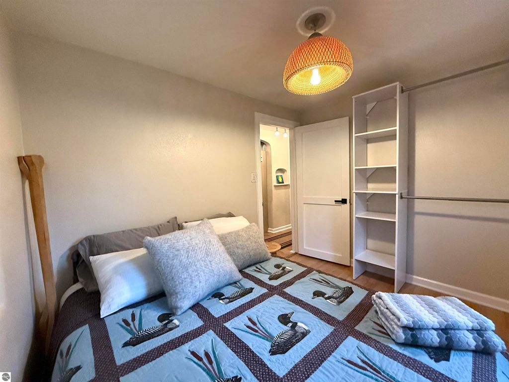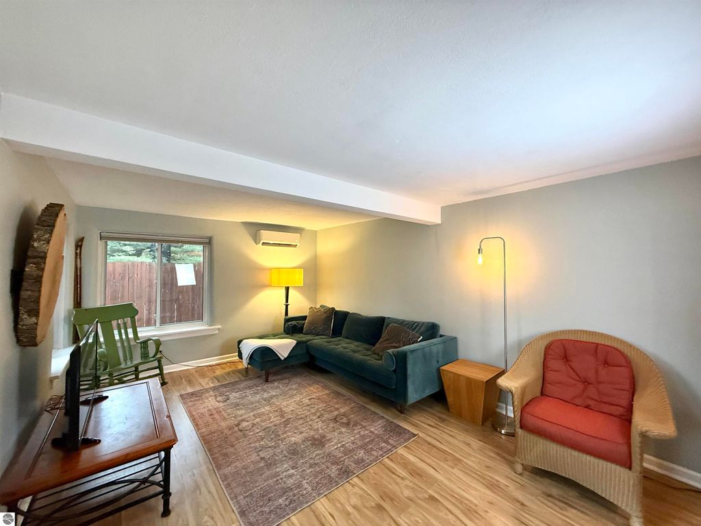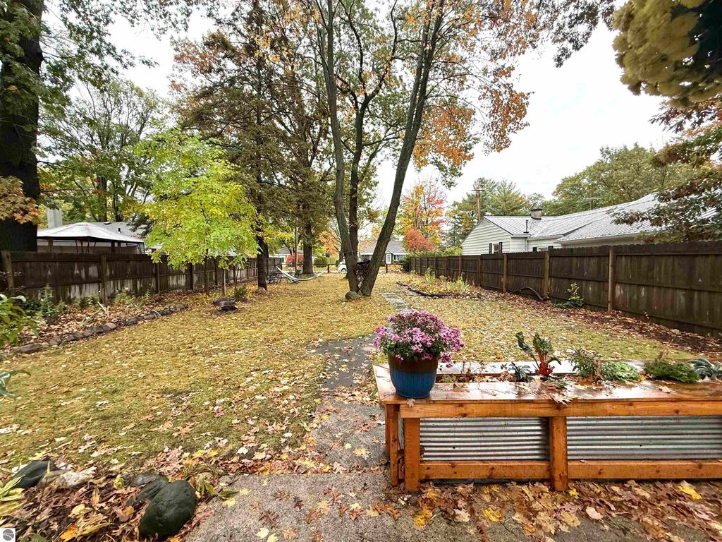 Mid-Century Charm in Traverse City's Beloved "Triangle' neighborhood. Acutely tucked into this geometric block, and in Traverse City's most coveted elementary school district, Eastern Elementary, this refreshed two-bedroom, one-bath home captures the effortless cool of mid-century design with the comfort of modern living. Outside, the home sits back on its lot, revealing a surprisingly expansive front yard, an open-air extension, with mature oaks, perfect for summer picnics, morning yoga, or simply soaking in the golden Northern Michigan light. Within walking distance or short ride, you can be at the beach, exploring downtown, catching a flight, or enjoying the Civic Center and Northwestern Michigan College. Ideal as a primary home, investment, or weekend retreat. Updates include, new floors (10/25), a fresh coat of paint on interior walls and trim throughout (9/25), new membrane roof (10/25), new furnace (10/25), new heat pump (10/23).