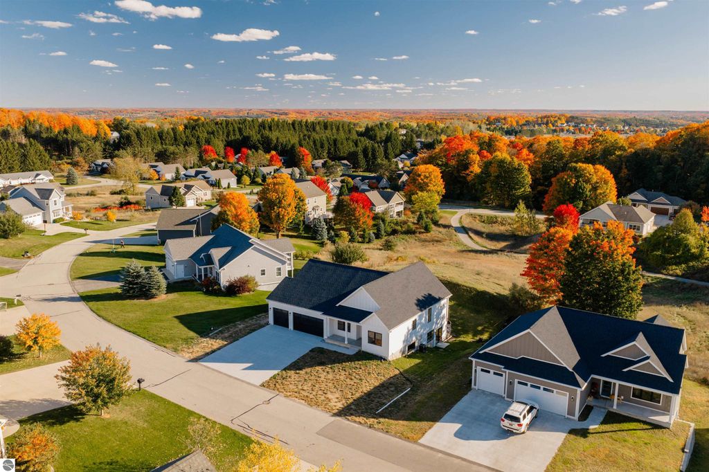 Introducing a brand new modern luxury home on the vibrant west side of Traverse City! The builder just completed this stunning 5-bedroom, 3-bathroom home, complete with a finished 3-car garage. Meticulous attention has been paid to every detail, and the curb appeal is impressive. The home features quartz counters, luxury vinyl plank floors, a shiplap fireplace and island, built-in bookcases, 8-foot doors, LP Smartside trim and siding, central air, a covered concrete front porch, and a maintenance-free composite wood deck. The main floor includes a primary ensuite with tiled floors and a tiled floor-to-ceiling shower, as well as two additional bedrooms and bath. The finished walkout lower level showcases two additional bedrooms, a spacious family room, and a full bath. Municipal water and sewer. Residents can enjoy the walking trails within the Lone Tree community, which even connect to TC West High School. You'll love this close-to-everything location that's just a few miles from downtown!
