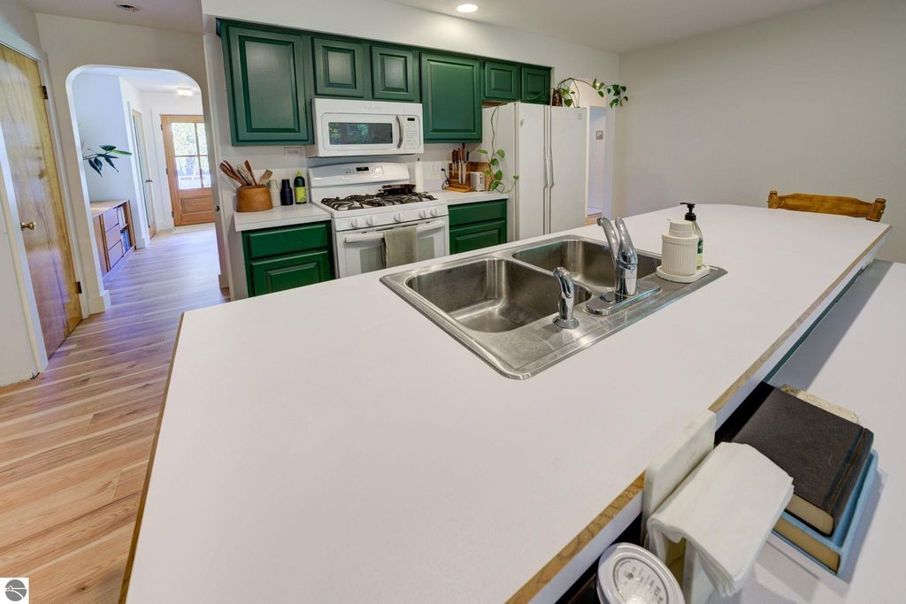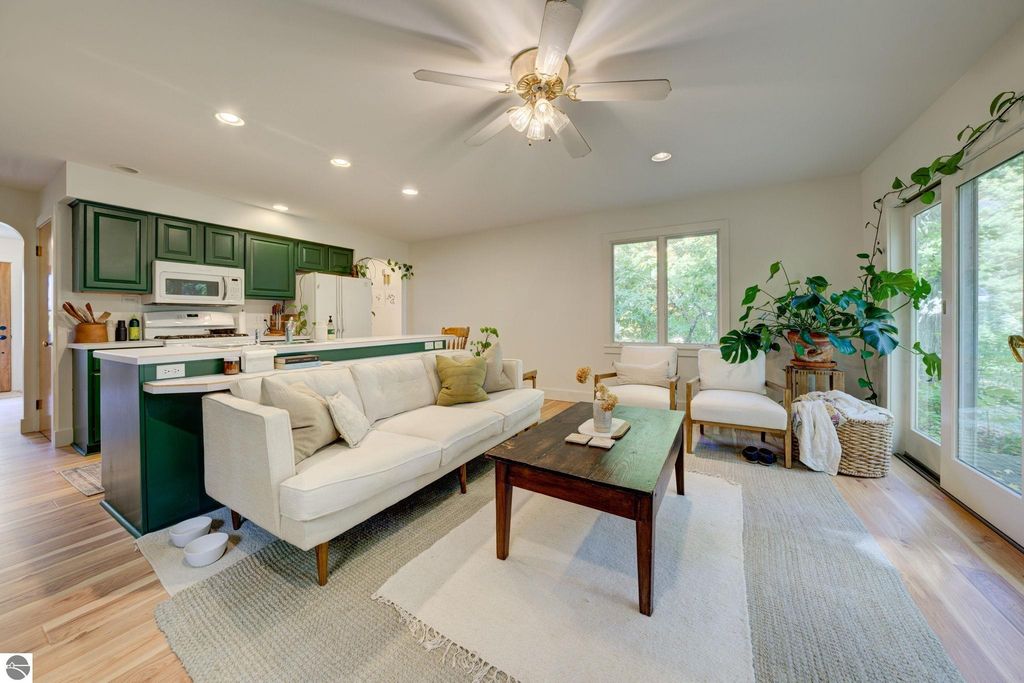 Rare opportunity to own a charming two-bedroom, 1.5-bath home on the sought-after Stony Point Peninsula, offering peaceful surroundings and peek-a-boo views of Suttons Bay. The inviting living room features a large bay window that fills the space with natural light, while a thoughtfully designed addition creates a spacious family room with a natural gas fireplace and sliding door leading to a generous deck and private backyard with firepit"”perfect for entertaining or relaxing. The lower level includes additional living space and the half bath, providing flexibility for a home office, recreation area, or guest overflow. An attached 1.5-car garage with breezeway/laundry area and a backyard storage shed add convenience and functionality. Extensively updated since 2023, this home offers a move-in ready experience with a new roof, gutters, front door, exterior repainting, landscaping, freshly painted kitchen cabinets, new flooring throughout, interior paint, sump pump, and water softener. Bring your vision and personal touches to make this Stony Point property your year-round residence or seasonal retreat in the heart of Leelanau County.