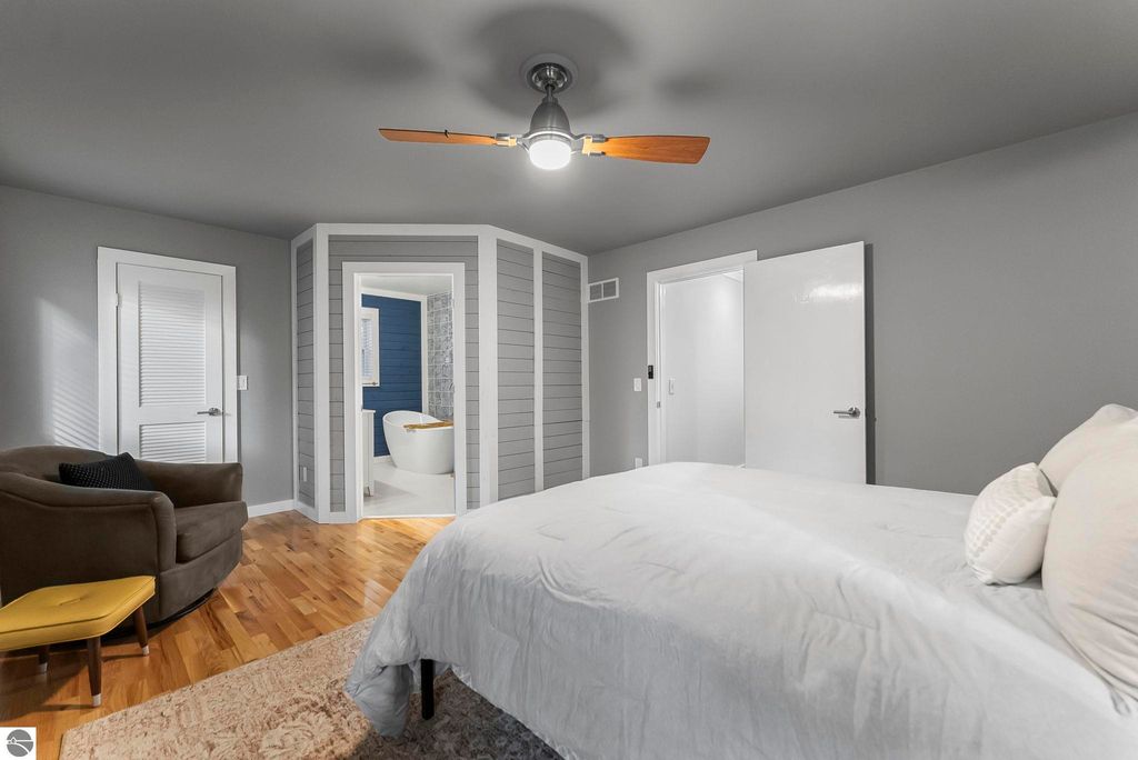 Wonderfully renovated home in the heart of the charming Village of Northport! This 4-bedroom, 2-bath residence has been thoughtfully updated offering the perfect blend of modern comfort and classic Leelanau character. With wood floors throughout and updates including a new furnace and water heater, a new roof, updated sliding doors, and Andersen windows throughout most of the home. Both bathrooms have been beautifully refurbished with stylish finishes and updated fixtures. The inviting main level features open living spaces ideal for relaxing or entertaining. The fourth non-conforming bedroom includes a stunning stone fireplace, making it the perfect spot for a cozy family room, home office, or guest suite. Set just a short walk to downtown, the marina, restaurants, and shops, this property offers the best of small-town living within reach of Lake Michigan. Whether you're seeking a full-time home, a summer getaway, or a potential vacation rental, this beautifully updated Northport gem checks all the boxes.