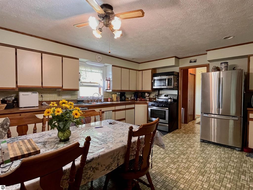This property offers a solid home on 5 acres of land only 10 minutes from Kingsley and 20 minutes from Traverse City. The 5 bedroom, 2.5 bathroom home has a full basement with egress windows, a canning room, and lots of space. On the main floor, there is laundry/mudroom, living room, kitchen with newer appliances, two bedrooms and full bath. Upstairs has three bedrooms and a full bath. The two car garage has extra room for storage and workshop, and there is a large detached pole barn for all your tools and toys. Hunters will love the deer blind set in a great spot, and there is a shed that can be turned into a playhouse, workroom, or chicken coop. Plenty of space in the yard for gardening, chickens, and more!