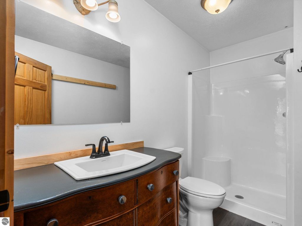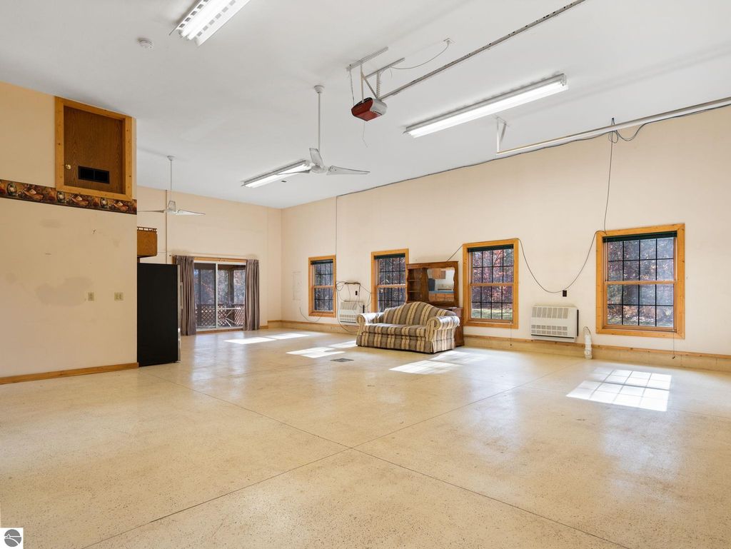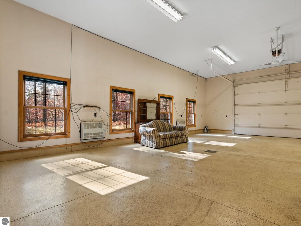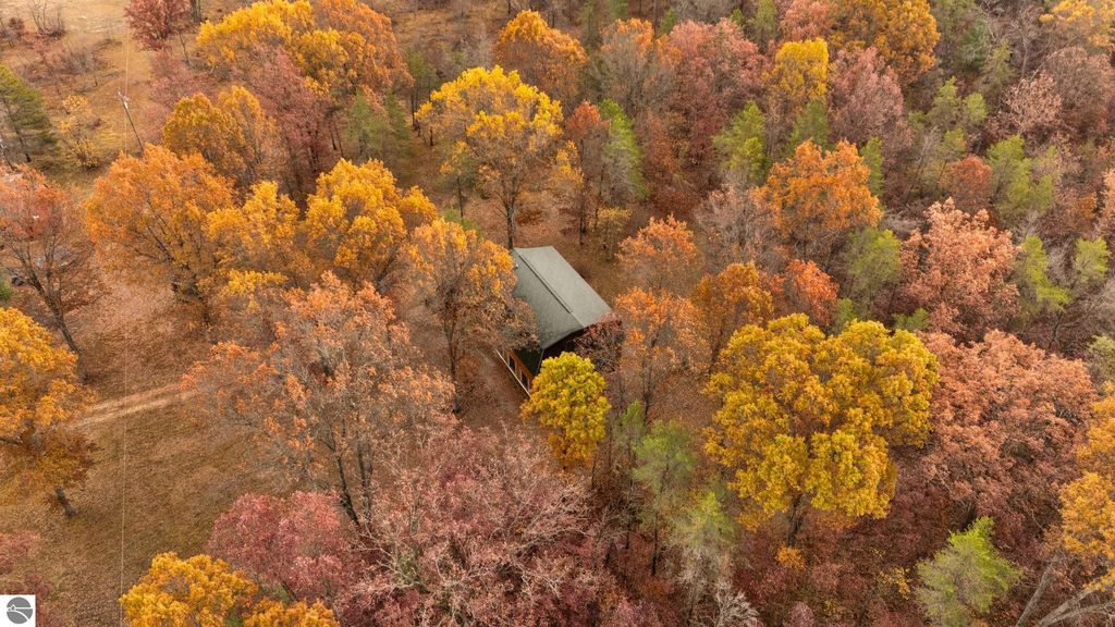 Tucked away on 1.6 peaceful acres just off US-131, this unique Northern Michigan property blends privacy, functionality, and opportunity. The fully finished lower level features a two-car garage/workshop with 15-foot ceilings, ceiling fans, custom aluminum blinds, epoxy flooring, large overhead doors, a ¾ bath, and a kitchenette, making it ideal for a guest suite, small apartment, or creative studio space. Upstairs, the open and light-filled studio living area is both warm and efficient. The kitchen showcases custom Amish hickory cabinets, built-in hickory drawers, granite countertops, and tile flooring, complemented by a cozy stone gas fireplace and hickory floors in the living area. Custom cloth blinds add a tailored touch throughout, while the 3-season sunroom and walk-up wooden deck invite you to enjoy the surrounding hardwoods year-round. Recent updates ensure peace of mind and modern comfort, including all new appliances (2025)"”with a new garbage disposal, new hot water tank (2025), new boiler (2022), and septic serviced in 2024. A Starlink internet kit is also available, offering reliable connectivity for remote work or streaming. Outdoors, mature hardwoods provide natural shade and beauty, creating a tranquil backdrop for both relaxation and recreation. Located just 10 minutes from Fife Lake and 12 minutes from Manton, this home offers easy access to upstate and downstate routes via US-131. Whether you're seeking full-time living, multi-use flexibility, or a balance of work and leisure, this property offers endless possibilities in a serene Northern Michigan setting.