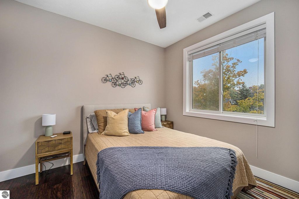 Downtown Traverse City living at it's finest!This stunning top floor condo features gorgeous finishings, high ceilings and an abundance of windows; making this beautiful space light and airy. This third/top floor unit allows for fantastic views with a wall of windows in the family room overlooking the tree tops of 8th Street. Enjoy the vibrant buzz of Traverse City right out your front door! Shopping, restaurants, music, beaches, Grand Traverse Bay and the Boardman River. This condo is fully equipped for a carefree lifestyle; offering stainless steel appliances, full size stackable washer and dryer, built in desk/work area, hardwood floors, cozy fireplace, granite kitchen and bath and even heated walkways to your home from the attached Old Town Parking Garage! Don't miss out on this amazing in-town unit!! Rentals allowed; minimum of three nights along with a low monthly HOA dues of $350/month. Unit is being sold turnkey, fully furnished. Seller is a licensed Real Estate Broker in the State of Michigan.