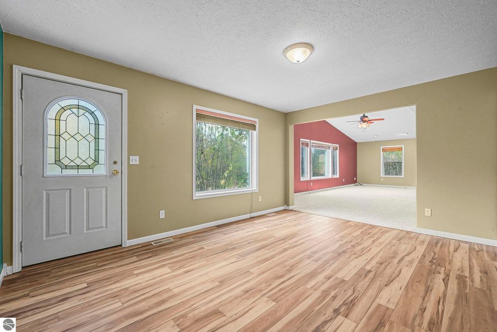 Welcome to the McBain School District "” here is a beautiful 3-bedroom, 2-bath ranch style home perfectly situated between Cadillac and McBain. Set on 1.6 wooded acres at the end of a private drive, this property offers the serenity of country living with the convenience of nearby amenities. Enjoy the ease of main-floor living with just under 1,800 square feet of finished space featuring an open layout, large bedrooms, and a private primary suite complete with walk-in closet and full bath. The kitchen includes a cozy breakfast nook with a slider to the backyard"”perfect for morning coffee or outdoor dining. The primary bedroom also features its own slider for easy backyard access. Can you just picture a deck the full length of the home? It's waiting for you to design 😉 For our snowy Northern Michigan winters, you'll appreciate the oversized finished two-stall garage that opens directly into a spacious mudroom"”ideal for storing boots and gear, or easily used as a home office. Inside, custom blinds and ceiling fans throughout help maintain a comfortable temperature year-round. There is so much great natural light throughout! Custom build features include bullnosed drywall edges, vaulted ceilings in the living room and primary suite and split floor plan. A Formal dining room off the front entry is so welcoming! Gorgeous wood plank floor too! Recent updates include a newer water heater, central air conditioning, and a pellet stove that adds warmth and charm to the main living area while providing an efficient alternative heat source. The full unfinished basement offers excellent storage and potential for future living space, while the additional detached one-stall garage with workshop provides extra room for hobbies, tools, or recreational gear. A garden shed is included too - just needs a garden! Surrounded by mature trees, this home blends privacy, comfort, and functionality"”offering everything you need for relaxed, year-round living in Northern Michigan.