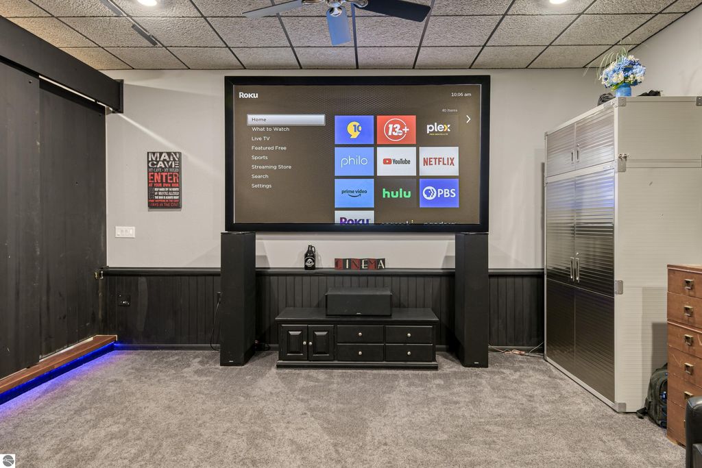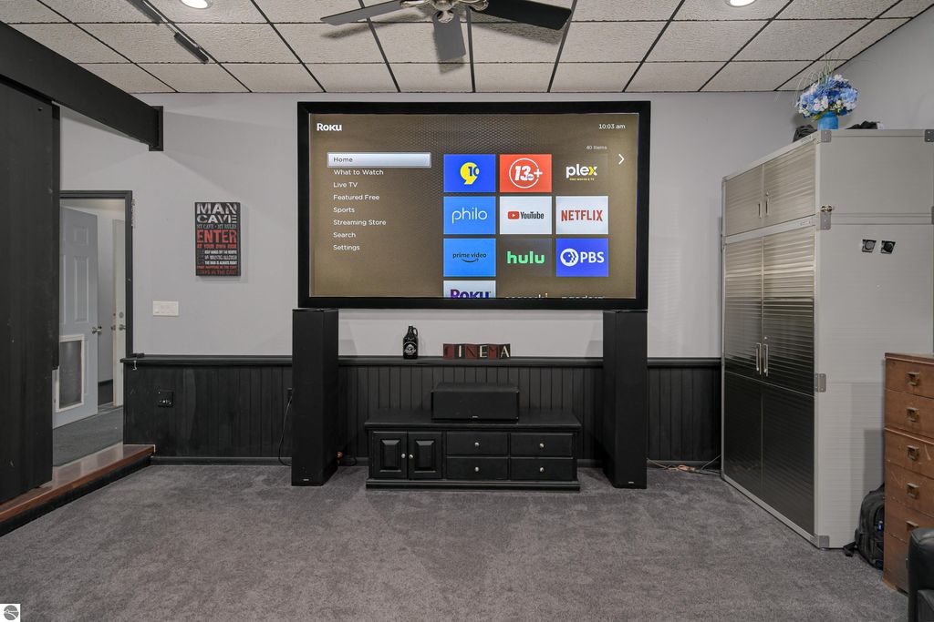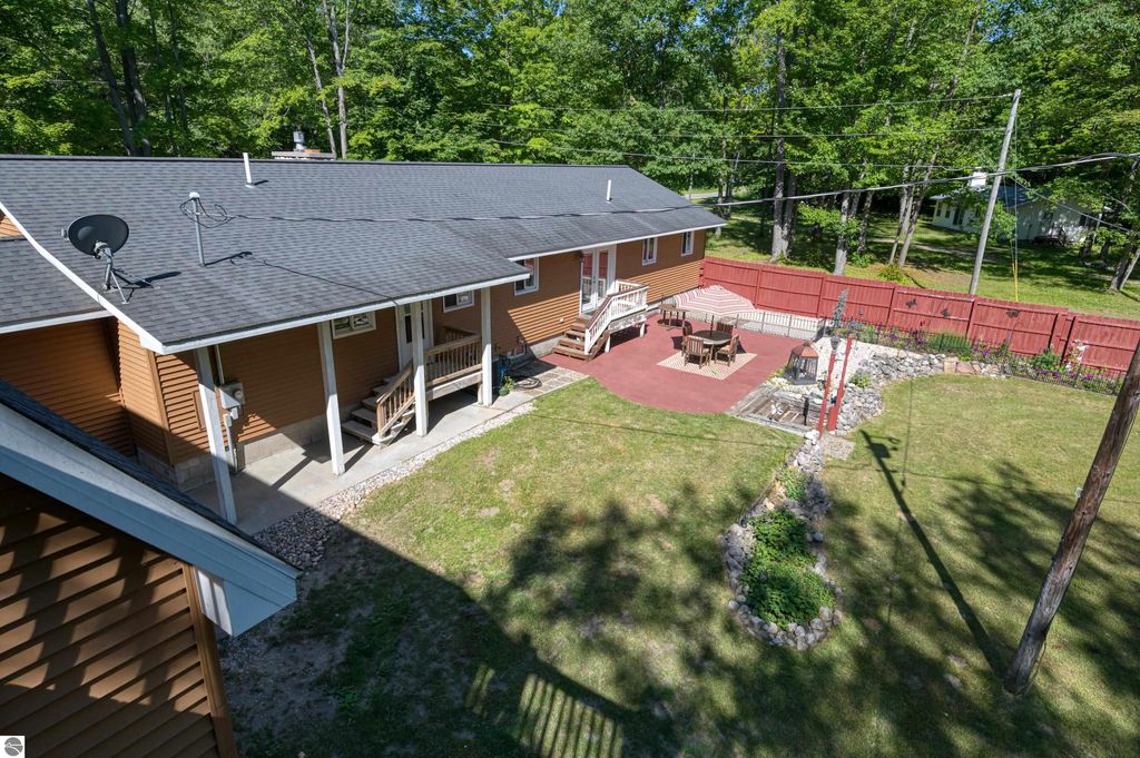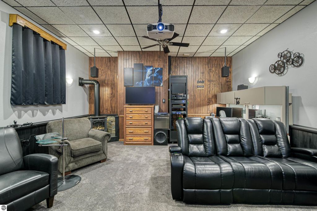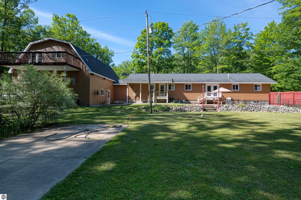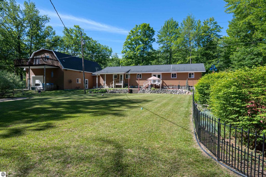 An outstanding property in the heart of Northern Michigans sought after recreational area! Numerous All Sports Lakes, in fact just a minute or two from popular Mansitee Lake. Other lakes in the immediate are include, Big Blue Lake, Big Twin Lake, Starvation Lake, Bear Lake and many more. Miles and miles of trails, North Country Trail, Shore to Shore trail, ATV/Snow trails. As you walk into the residence you will notice to the left a comfortable, high ceiling movie theater. A well-appointed island kitchen with stainless appliances adding a nice dinning area overlooking the beautiful and pleasant fenced landscaped yard. A well-proportioned sun-filled living room showcasing a natural gas fireplace and hard wood floors. In other areas of the home you will encounter lovely bamboo floors. A studio and family room are in the lower level The mechanical room, reverse osmosis water filtration and HVAC and a 10 x 10 work shop area are also situated in the lower level. Parking is easy in the attached insulated 30' x 48' outbuilding with finished 13' ceilings, LED lighting, hanging F/A furnace as well as plumbed for infloor heat and the sidewalks are plumbed for in floor heat and A/C. The overhead doors are large and measure 10' x 10' and a smaller 8'x10' door in the rear. Getting your boats, snowmobiles, side by sides, ATV, Tractors and vehicles in and out is easily done. The floor is 4" cement, 2 1/2" foam insulation and reinforced in areas for a future lift. The second floor is 15' x 48" with an 8' ceiling with a balcony overlooking the yard and garden areas. The trusses were manufactured to allow for insulation in the ceiling. The cement driveway is large enough for you and your guests. There is plenty of room on the drive to park a large RV. If you love everything about Pure Michigans Up North, then this is a very nice place for you.